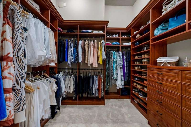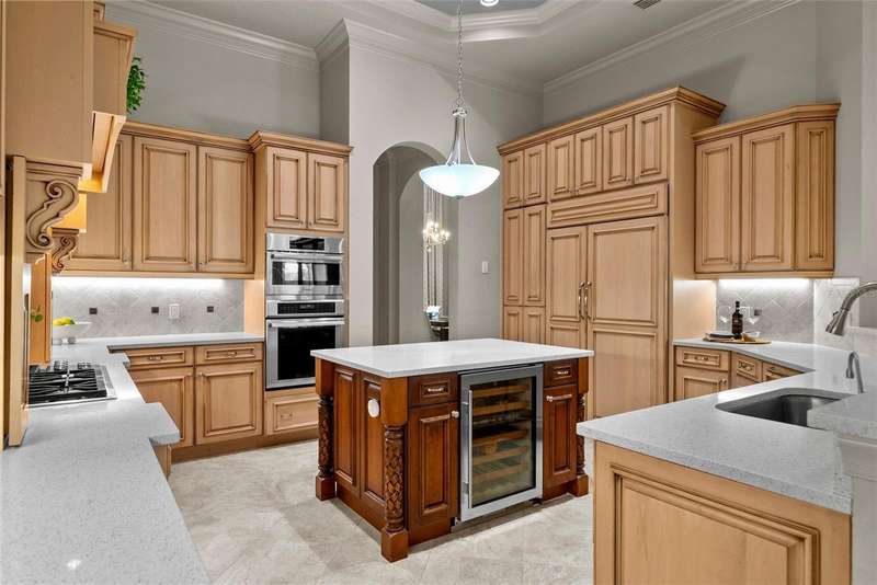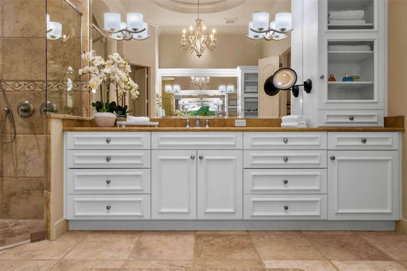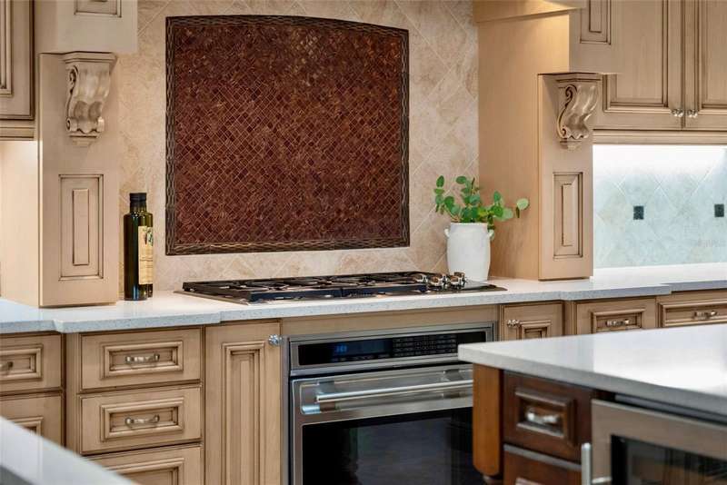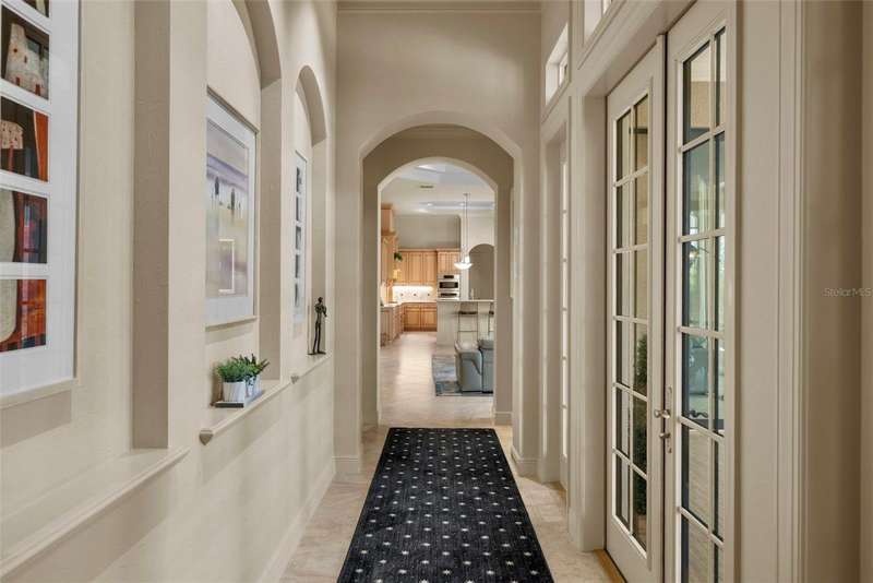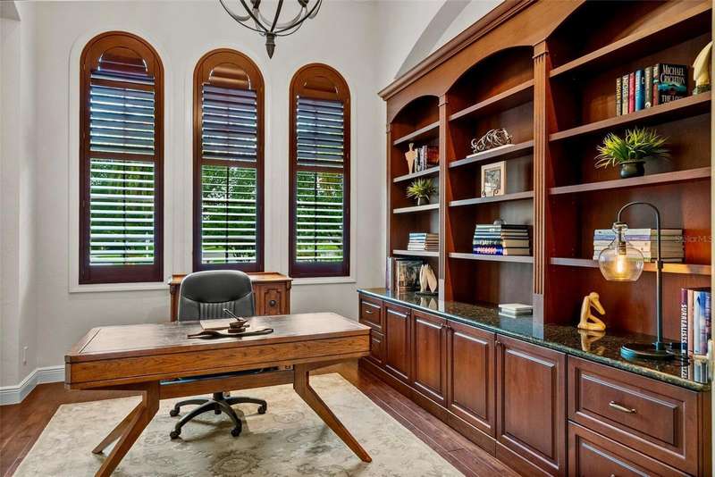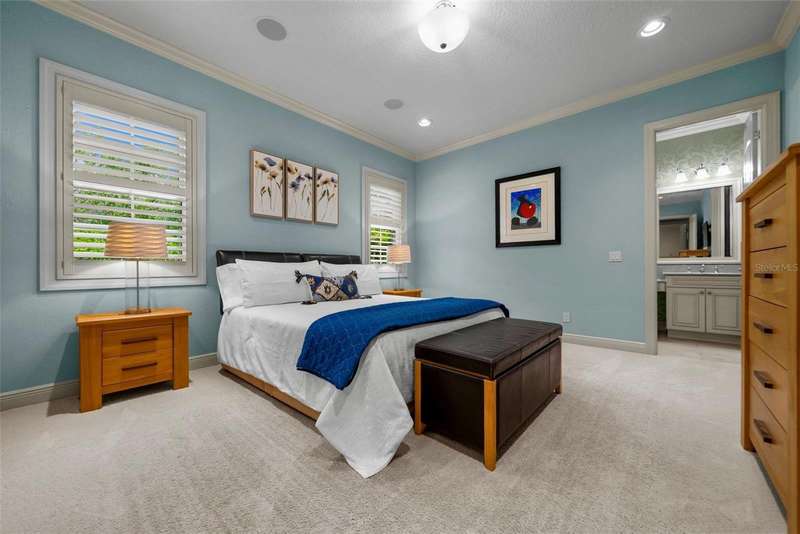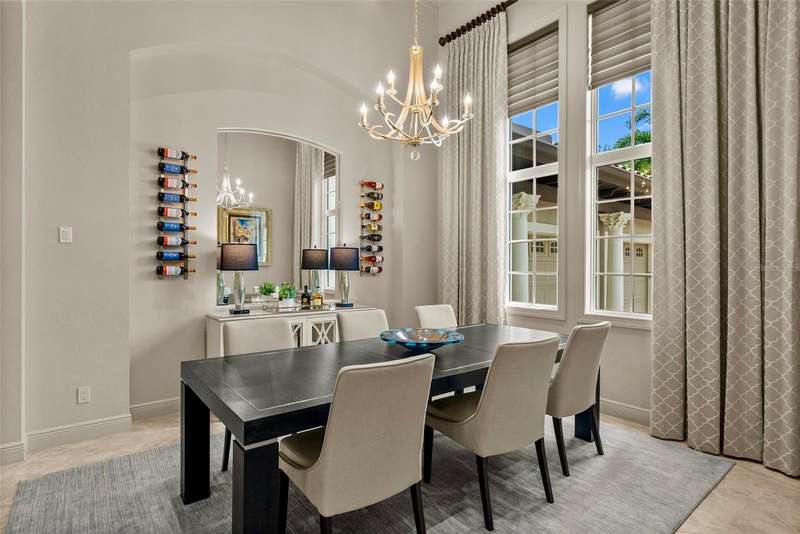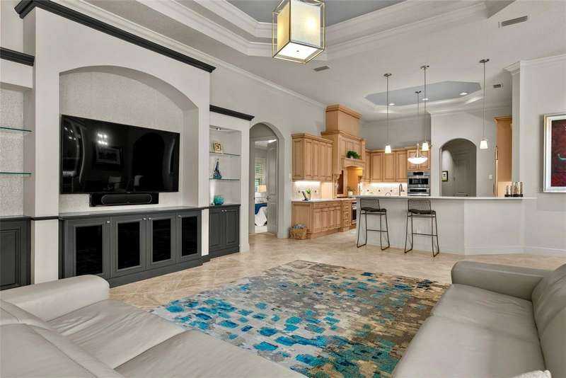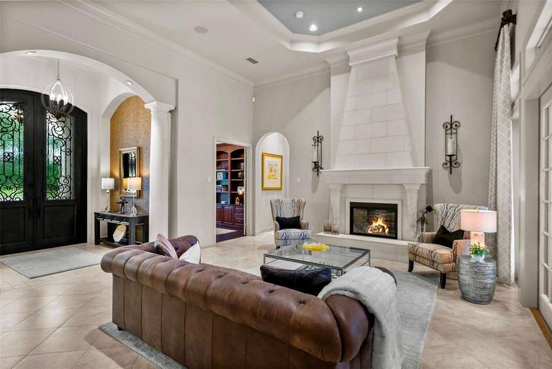 This spectacular Lakewood Ranch Country Club residence built by John Cannon—offering three bedrooms and three-and-a-half baths—is perfectly situated on an estate-sized corner homesite of more than three-quarters of an acre, surrounded by pristine gardens and lush landscaping. Upon arrival, you’re greeted by magnificent iron doors that open into a grand, open-layout living area where tray ceilings, crown moldings, and beautiful French doors frame a dramatic floor-to-ceiling stone fireplace, setting a tone of refined elegance. The gourmet kitchen is both beautiful and functional, boasting striking wood cabinetry, gleaming quartz countertops, and high-end appliances that include Wolf and Thermador ovens, a Sub-Zero refrigerator, and a built-in wine cooler. Whether you’re preparing a casual meal or hosting an elaborate dinner party, this kitchen delivers performance and style in equal measure. Entertainment reaches new heights in the state-of-the-art home theater, where a 128-inch curved masking screen by Stewart Screens, 4K Sony projector, and invisible in-wall Klipsch surround-sound system immerse you in every scene, while plush leather recliners ensure ultimate comfort. When it’s time to unwind, the expansive master suite awaits, complete with custom closets and a spa-inspired bath featuring a frameless glass shower, deep soaking tub, and dual vanities. Two additional guest suites, each with their own private bathroom, offer luxury and privacy for visitors. Step outside to discover a 2,200-square-foot screened lanai laid in gorgeous wood-look tile planks, where a saltwater pool and spa invite refreshing dips and relaxation. An outdoor kitchen provides the perfect backdrop for alfresco dining and social gatherings. Meticulous construction details—including foam insulation, a Generac backup generator, and LED lighting controlled by an integrated Crestron smart home system—ensure comfort, efficiency, and peace of mind. The climate-controlled third garage adds practical convenience, rounding out a home that truly defines country club living at its finest....