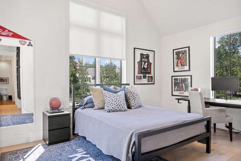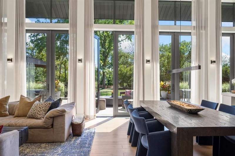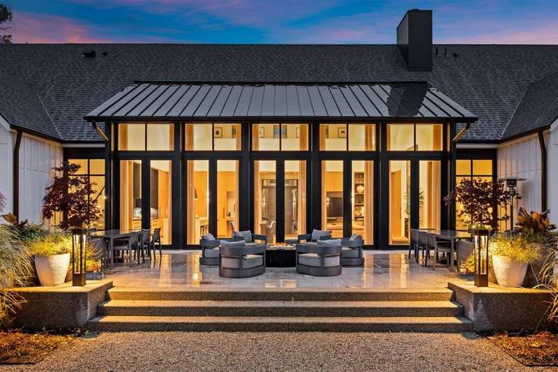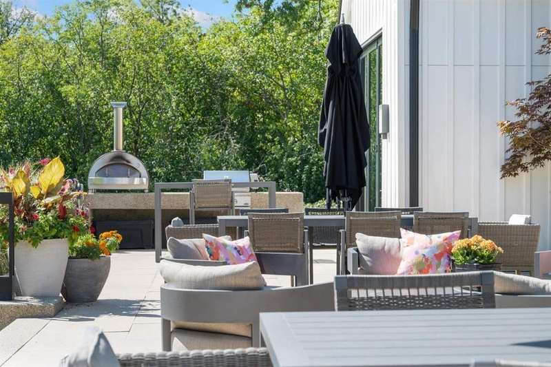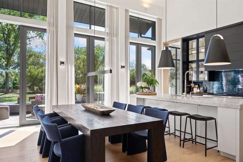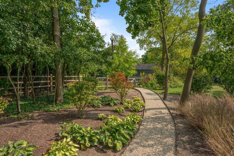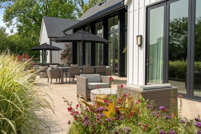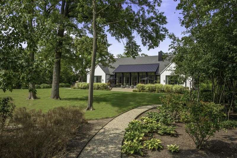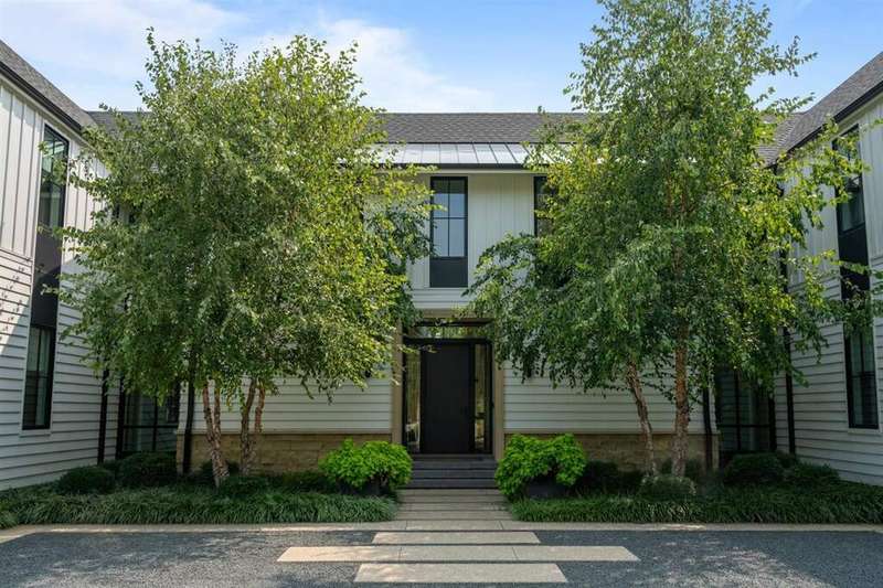 Welcome to 2064 Norfork Road, a sanctuary of modern farmhouse serenity perfectly tucked away on a private lane in the heart of Northfield. Designed by award-winning architect William Massey and surrounded by over an acre of lush, sculpted grounds by Kettelkamp & Kettelkamp Landscape Architecture, this award-winning home embodies the art of calm, refined living with over almost 7,000sqft of luxe living space from head to toe. From the moment you arrive the experience feels effortless-a retreat where architecture, landscape, and light work in perfect harmony. Five floor-to-ceiling windows capture serene garden views and create a seamless connection between the indoors and outdoors. The main level unfolds with an open, organic flow designed for both connection and ease, where the living, dining, and kitchen spaces spill naturally outdoors through walls of glass, making entertaining and everyday living equally seamless. At the center of the home is the show stopping Chef's kitchen anchored by a striking Iceberg Quartzite island, custom handcrafted cabinetry, s/s appliances, and a dream-worthy pantry that delights even the most discerning cook. Two home offices, one intimate and tucked away, the other a grand executive suite with custom built-ins, make this residence as functional as it is beautiful. The main-level primary suite is a serene private sanctuary that opens directly to the terrace and gardens through folding doors. Luxe primary spa bath and two custom closets make this space a retreat within a retreat. Upstairs, the home transforms into a children's and guest haven with two bedrooms, a four-bed bunk room, and large second floor playroom while the lower level continues the theme of comfort and versatility with two additional guest bedrooms, a fully loaded professional level gym, and abundant storage. Step outside to a private oasis of mature trees, sculptural hardscape, and serene garden paths. Gather on the beautiful terraces, relax in the hot tub beneath the stars, play on the the in-ground trampoline, and cook in the outdoor culinary setup that is second to none featuring s/s grill with rotisserie and an Alfa copper-top pizza oven that create the perfect backdrop for weekend entertaining or quiet al fresco nights in. More than a home, 2064 Norfork is a private escape-thoughtfully designed for those who value beauty, balance, and a seamless connection to nature.