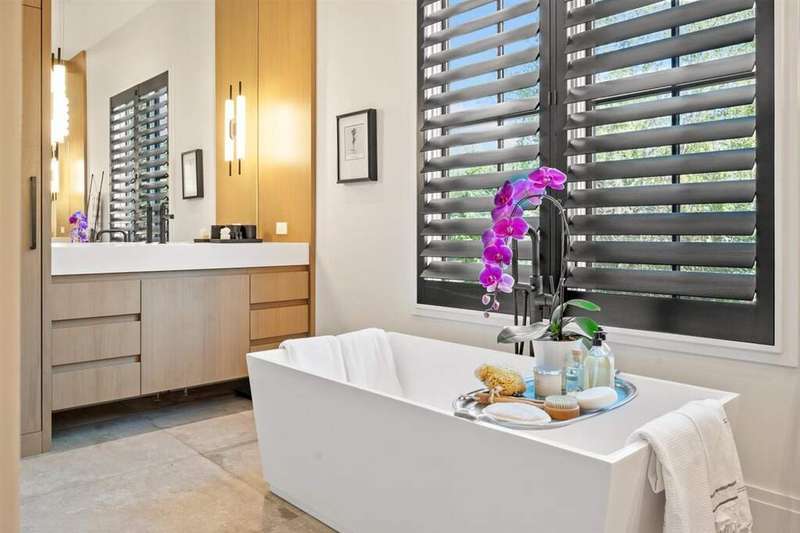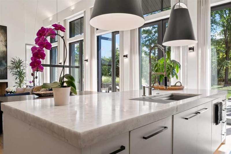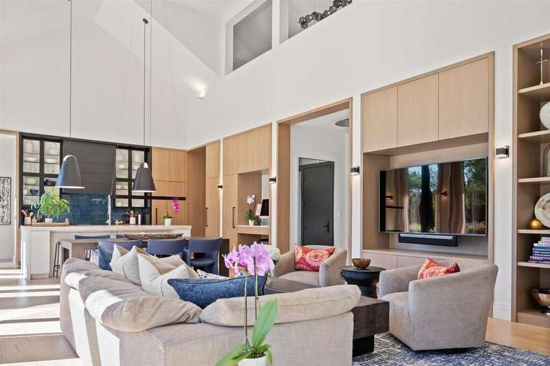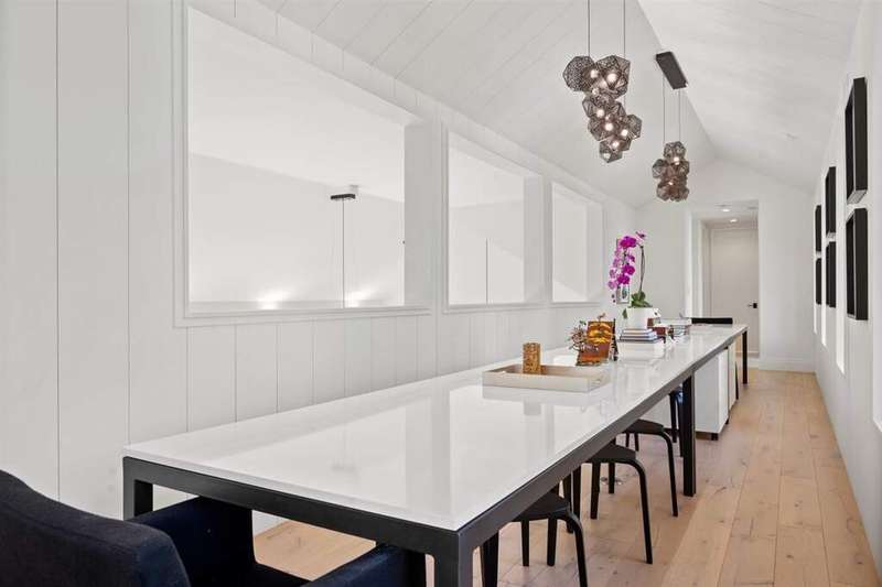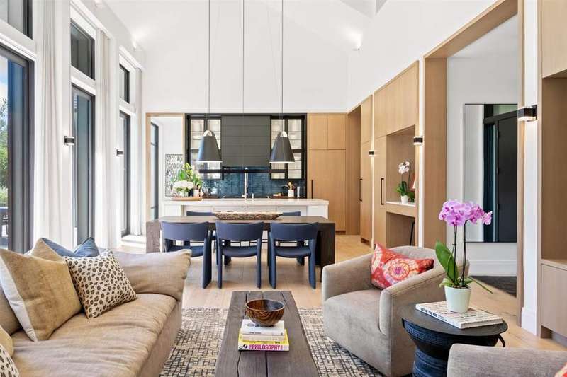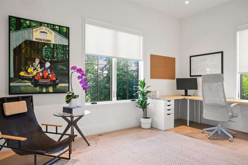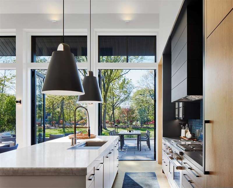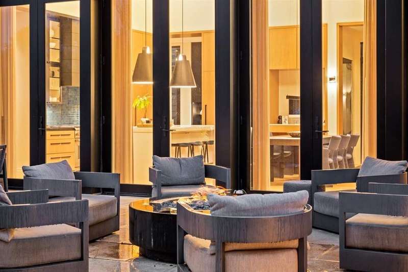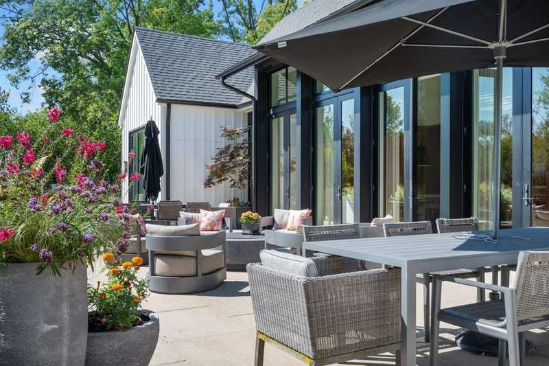 Welcome to 2064 Norfork Road, a sanctuary of modern farmhouse serenity perfectly tucked away on a private lane in the heart of Northfield. Designed by award-winning architect William Massey and surrounded by over an acre of lush, sculpted grounds by Kettelkamp & Kettelkamp Landscape Architecture, this award-winning home embodies the art of calm, refined living with over almost 7,000sqft of luxe living space from head to toe. From the moment you arrive the experience feels effortless-a retreat where architecture, landscape, and light work in perfect harmony. Five floor-to-ceiling windows capture serene garden views and create a seamless connection between the indoors and outdoors. The main level unfolds with an open, organic flow designed for both connection and ease, where the living, dining, and kitchen spaces spill naturally outdoors through walls of glass, making entertaining and everyday living equally seamless. At the center of the home is the show stopping Chef's kitchen anchored by a striking Iceberg Quartzite island, custom handcrafted cabinetry, s/s appliances, and a dream-worthy pantry that delights even the most discerning cook. Two home offices, one intimate and tucked away, the other a grand executive suite with custom built-ins, make this residence as functional as it is beautiful. The main-level primary suite is a serene private sanctuary that opens directly to the terrace and gardens through folding doors. Luxe primary spa bath and two custom closets make this space a retreat within a retreat. Upstairs, the home transforms into a children's and guest haven with two bedrooms, a four-bed bunk room, and large second floor playroom while the lower level continues the theme of comfort and versatility with two additional guest bedrooms, a fully loaded professional level gym, and abundant storage. Step outside to a private oasis of mature trees, sculptural hardscape, and serene garden paths. Gather on the beautiful terraces, relax in the hot tub beneath the stars, play on the the in-ground trampoline, and cook in the outdoor culinary setup that is second to none featuring s/s grill with rotisserie and an Alfa copper-top pizza oven that create the perfect backdrop for weekend entertaining or quiet al fresco nights in. More than a home, 2064 Norfork is a private escape-thoughtfully designed for those who value beauty, balance, and a seamless connection to nature.