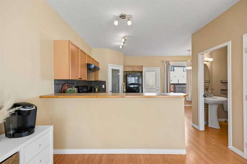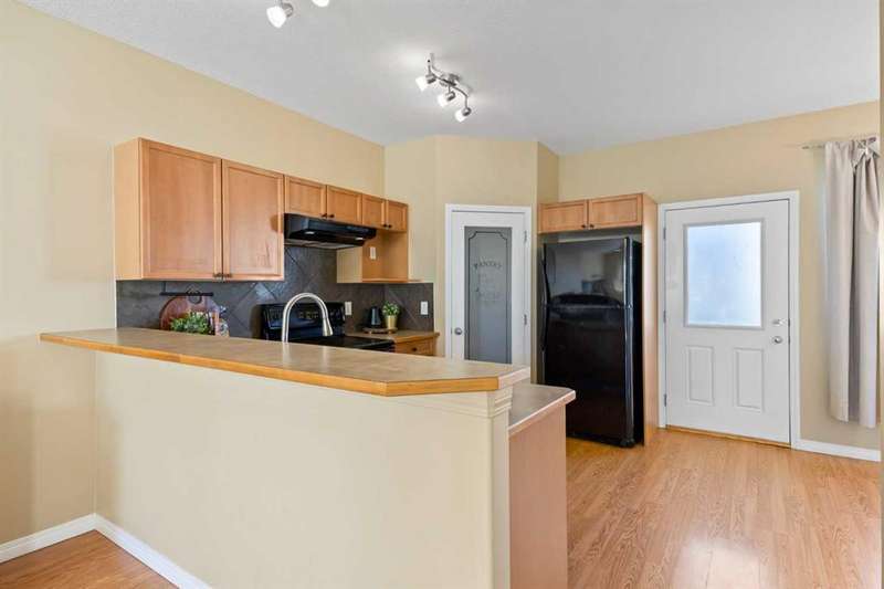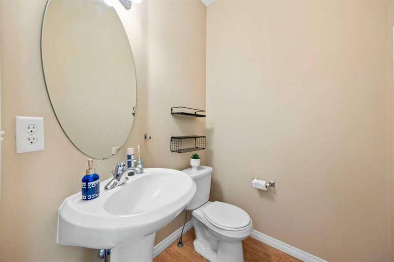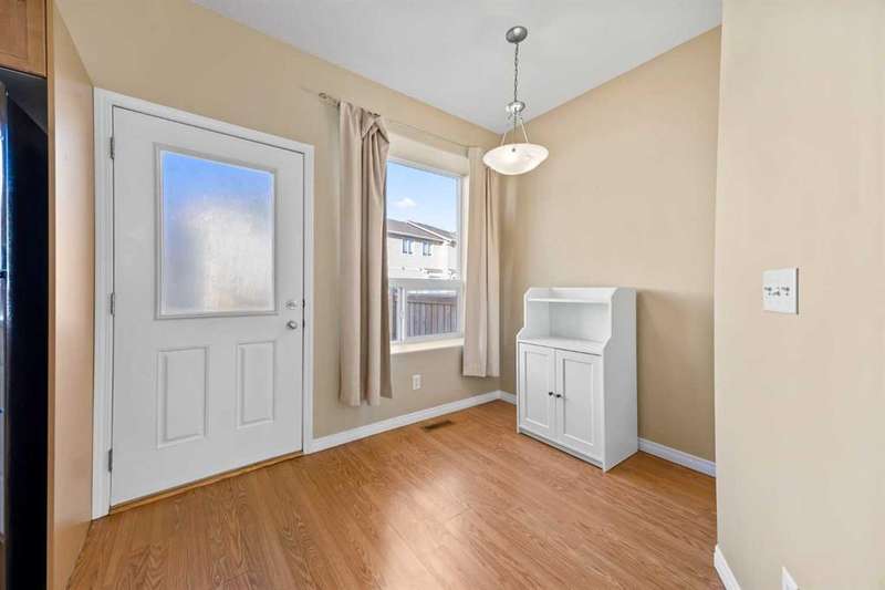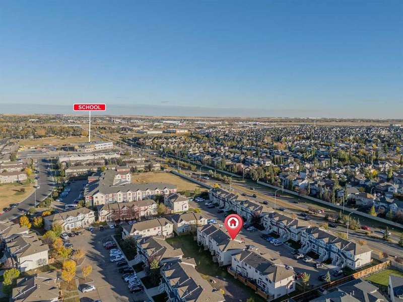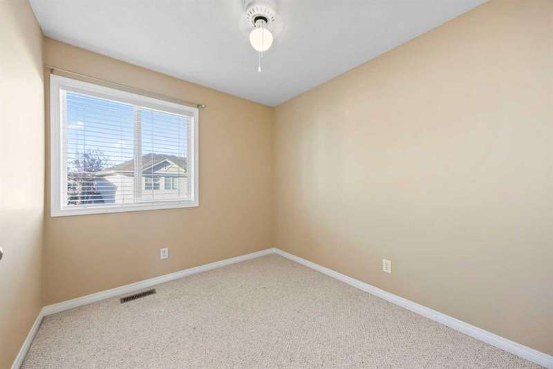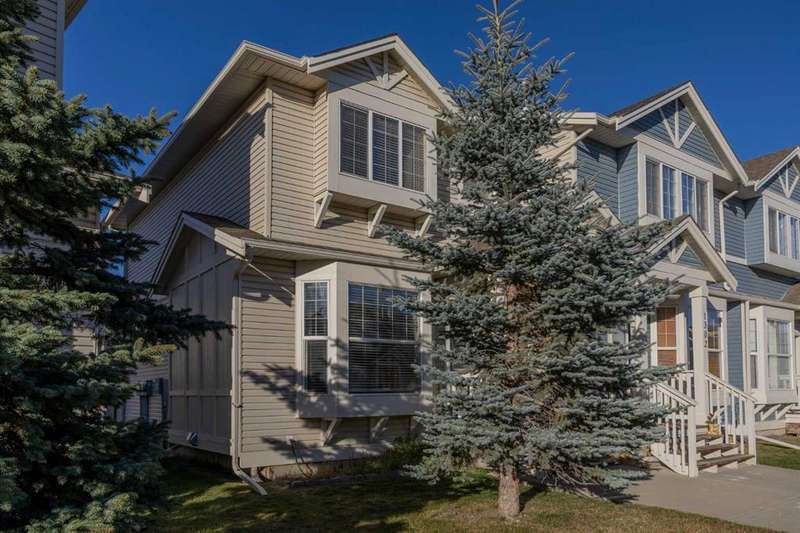 15k Price Reduction!! Welcome to this charming end unit townhouse nestled in the sought-after community of Luxstone in Airdrie. This move-in ready home is perfect for first time buyers, young families, or savvy investors, offering incredible value and thoughtful design throughout. Step onto the welcoming front porch, perfect for morning coffee or relaxing evenings, and into a bright, open concept main floor featuring durable laminate flooring throughout. The spacious living room is bathed in natural light from a large south facing bay window, creating a warm and inviting atmosphere. Flowing seamlessly from the living space is a formal dining area, comfortably fitting a table for four with additional room for a coffee station or storage hutch. At the back of the home, you'll find a functional U-shaped kitchen complete with plenty of counter space, a corner walk-in pantry, and an adjacent breakfast nook, perfect for casual meals or working from home. From here you'll have easy access to the backyard which opens directly onto a peaceful communal green space. Upstairs, the spacious primary bedroom features a bright walk-in closet with a window and direct access via a cheater door to the 4-piece bathroom. Two more well-sized bedrooms and a linen closet complete the upper level. The unfinished basement provides ample opportunity to develop a large rec room, home gym, or office space giving you versatility depending on your lifestyle! Additional highlights include two side-by-side parking stalls right out front and a well-managed complex that’s just steps from a playground and within walking distance to a convenient plaza with a gas station, 7-Eleven, medical clinic, pharmacy, and multiple food options. Luxstone is a family-friendly, well-established community known for its walkability, parks, and proximity to schools (W.H Croxford High School, St Martin de Porres High School, Nose Creek Elementary School) and shopping. Living in Airdrie means enjoying small town charm with big city convenience, just minutes from Calgary and the airport, yet offering a quieter, more relaxed lifestyle.