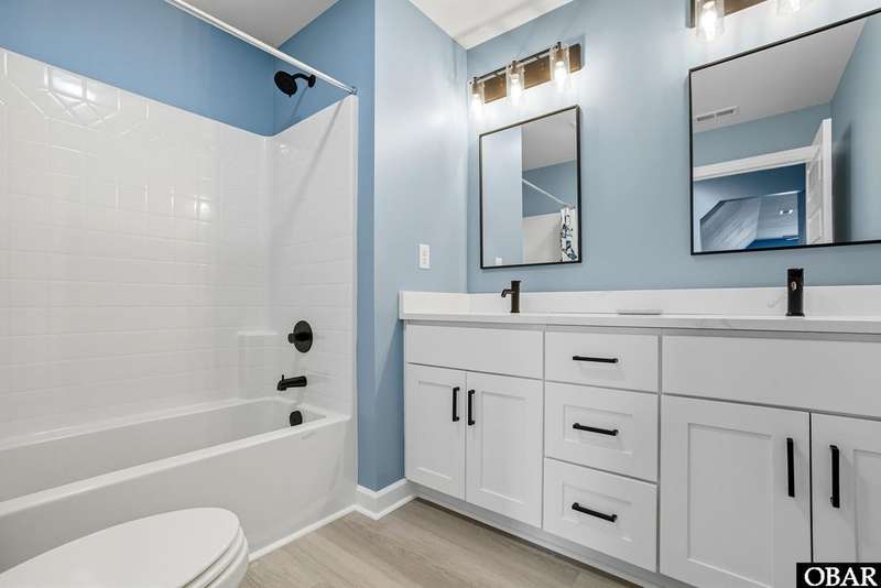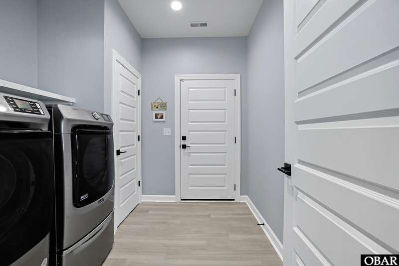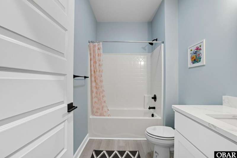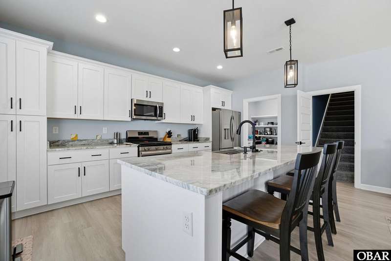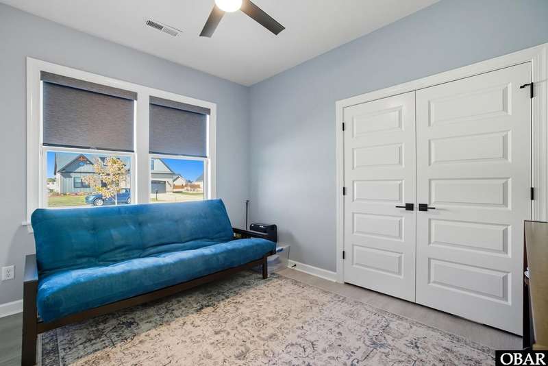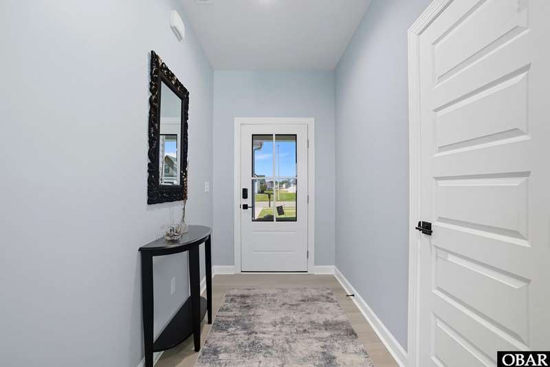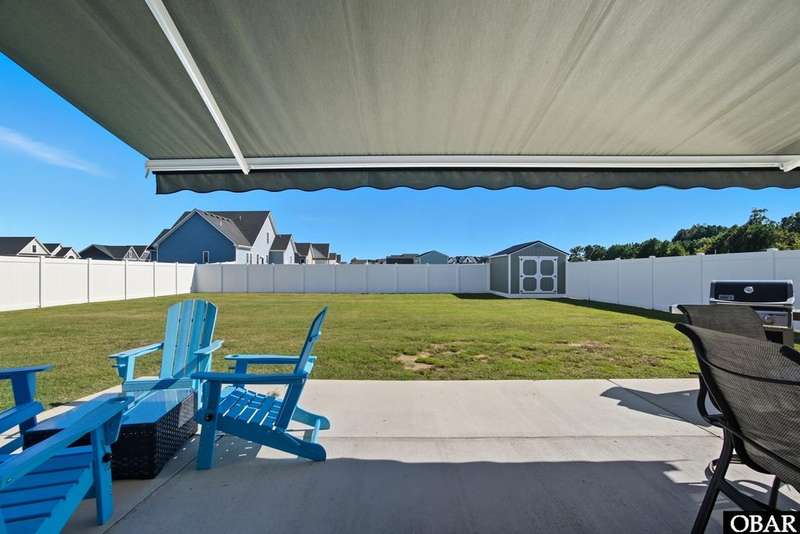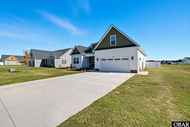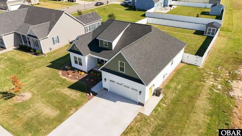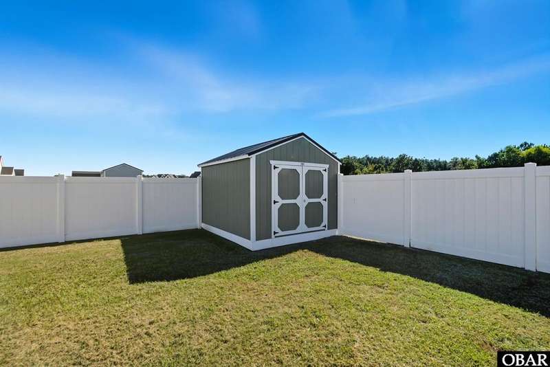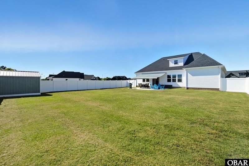 Skip the wait for new construction and move right into this 2024 built home. Every detail has already been taken care of for you from the vinyl fence and storage shed to professional landscaping and custom blinds making your move completely stress free. This Homelink build, Georgetown model, with 2,801 sq ft offers four bedrooms plus a flex space that can easily be reverted to a fifth bedroom. The open layout connects the living, kitchen, and dining areas, creating a bright and welcoming main level. The kitchen features a gas range, granite countertops, and an impressive pantry with wood shelving and extra counter space. The first-floor primary suite includes a luxurious bathroom with a beautifully tiled shower, dual sinks with quartz countertops, and a spacious walk-in closet. A second bedroom and full bath are also located on the main level, along with a laundry room complete with washer and dryer. Upstairs, you'll find a large FROG, two additional bedrooms, a full bath, and a floored walk-in attic for extra storage. Outside, enjoy the retractable SunSetter awning, extended patio, and expansive fenced backyard. The two-car garage includes a generator hook-up, on the exterior, for added convenience. Make this beautifully finished home in Tooley Harbor your next address.