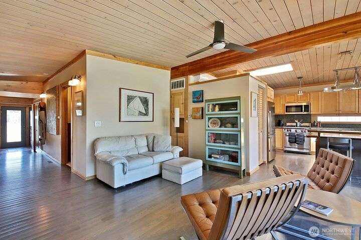 Welcome to Sandy Hook, one of Whidbey’s most desirable waterfront communities & just minutes from the ferry. Located on a rare waterfront channel featuring a well-constructed 60'+/- boat house that includes water & power. This custom home is filled with character & lightly lived in since its purchase. Featuring hardwood floors, rich cabinetry, & thoughtful details throughout. This location provides easy access from the mainland. Enjoy community amenities—marina, boat launch, pool & newly resurfaced tennis/pickleball courts. The community waterfront is easily accessible with sweeping views of the Olympic Mountains, shipping lanes and vibrant sunsets. A great home/neighborhood for primary/secondary or rental. A true Whidbey lifestyle awaits!