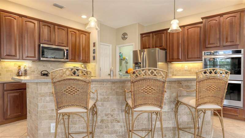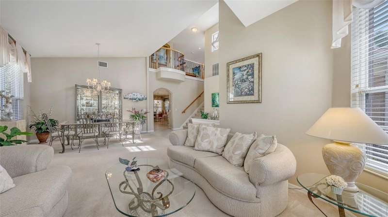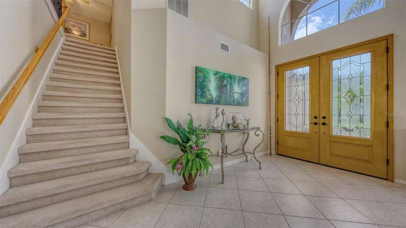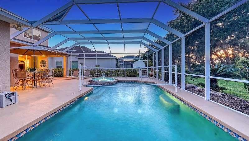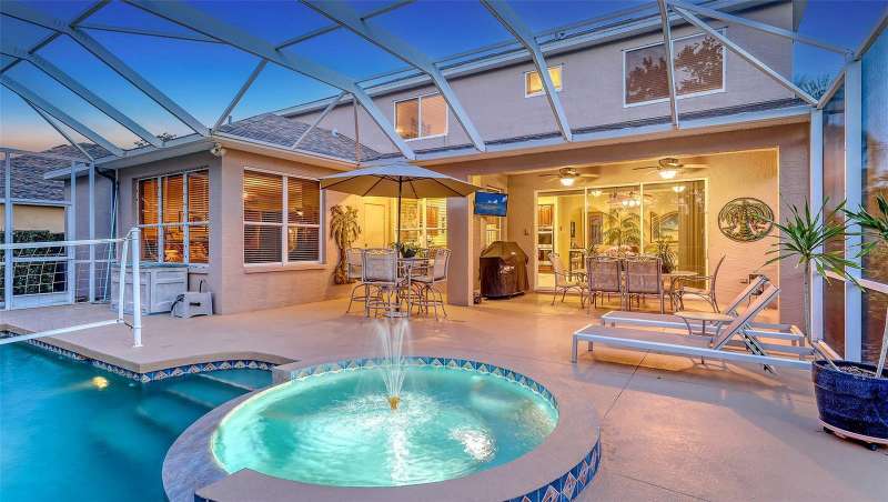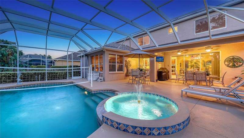 Resort-Style Oasis with Golf Course Views in a Gated Community: Welcome to this stunning, impeccably maintained two-story single-family home that offers luxury living in a serene, resort-style setting. Nestled on a private, oversized homesite with breathtaking views of the Tatum Ridge Golf Course and framed by majestic oak trees, this residence exudes tranquility and elegance at every turn. From the moment you arrive, you’re greeted by a grand entryway with soaring ceilings that set the tone for the spacious and open layout. The formal living and dining areas seamlessly flow into a large family room and gourmet kitchen, making this home ideal for entertaining guests or enjoying quiet family moments. The first-floor primary suite is a true retreat, boasting two generous walk-in closets and a luxurious en-suite bath. Upstairs, you’ll find two additional bedrooms, including a guest suite with a private bath and a third bedroom with a Jack-and-Jill bath connecting to a versatile bonus room with a wet bar and loft area—perfect for a game room, home theater, or additional living space. Key features and upgrades include: 3-car garage, Newer roof (2020), Newer Carrier 16 SEER A/C 2 units (2019), Whole-home water softener and filtration system (2021), Upgraded stainless steel appliances including double ovens, refrigerator, microwave, and dishwasher (2021), Saltwater sports pool and spa (14’ x 28’) with volleyball net, basketball hoop, and newer heater (2021), Screened pool enclosure with titanium screws (2018), Luxon exterior paint by Sherwin-Williams (2022), High-end Benjamin Moore interior paint (2022), Reinforced upstairs flooring with sound insulation, Bose surround sound system in family room, Reverse osmosis water system for kitchen sink and refrigerator. Step outside to your private backyard paradise, complete with a paver walkway leading to a charming pergola, ideal for sipping morning coffee or enjoying an evening glass of wine. The wrought-iron and wood railing staircase, crown molding, and custom touches throughout make this home a rare find. Located in a gated community known for its oversized lots, natural preserves, and scenic lakes, this home combines luxurious living with the peace and privacy of nature. Don’t miss the opportunity to experience this exceptional property for yourself.