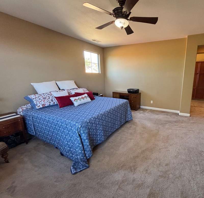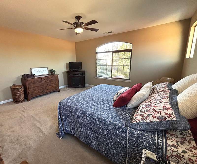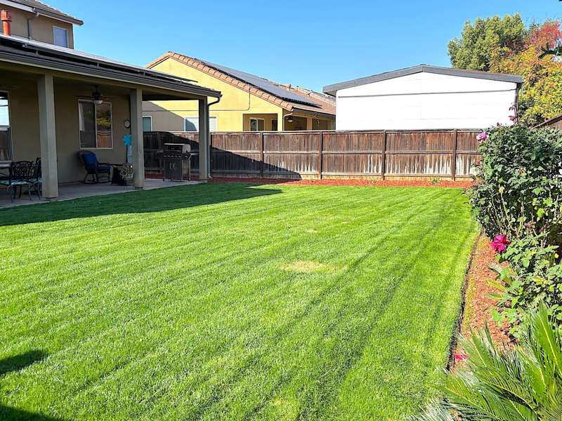 PRICE REDUCED! Check out this stunning and spacious, 3153 sf two-story beauty on a large corner lot. This home is chocked full of great features like an extra large kitchen/dining area w/island, two large living areas, one with formal dining room potential, an isolated downstairs room with bathroom and access to the garage, a huge upstairs room (2 bedrooms combined), a large master bedroom and bath with two individual shower spigots, a separate tub, double vanity, and sizable walk in closet. A three-car garage, tankless water heater, and two central heat and air units will keep you comfortable all year round. Well, doesn't all that use a lot of power? Not on this home. A 37 panel,13.32 kW solar system keeps the power bills low and there is even a generator hookup for emergency power backup. Mature landscaping adorns the front yard and a large backyard w/lawn and a covered patio space make this home ideal for parties. The property is close to schools, quick and easy access to Hwy 99, and just minutes away from shopping, Costco, the Island Water Park, El Paseo shopping center, and various restaurants.