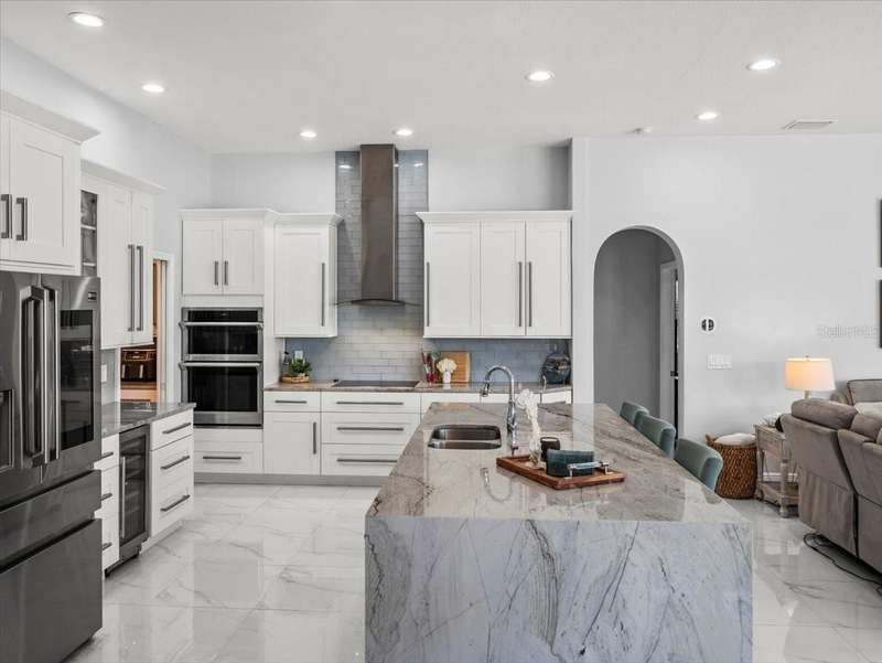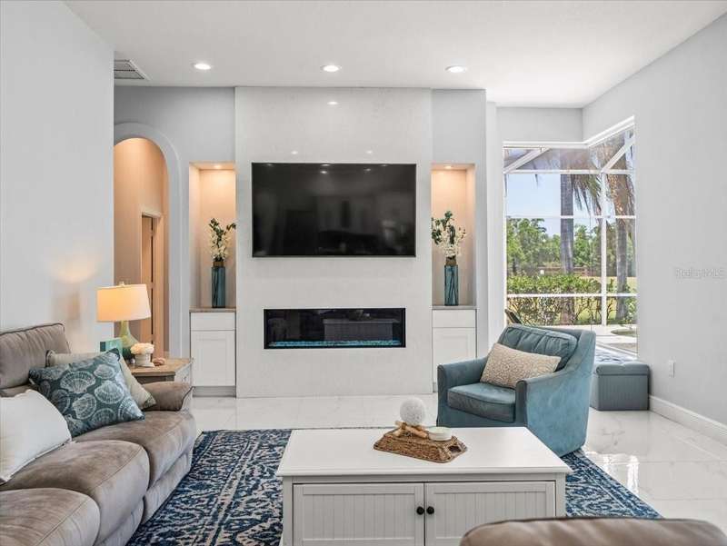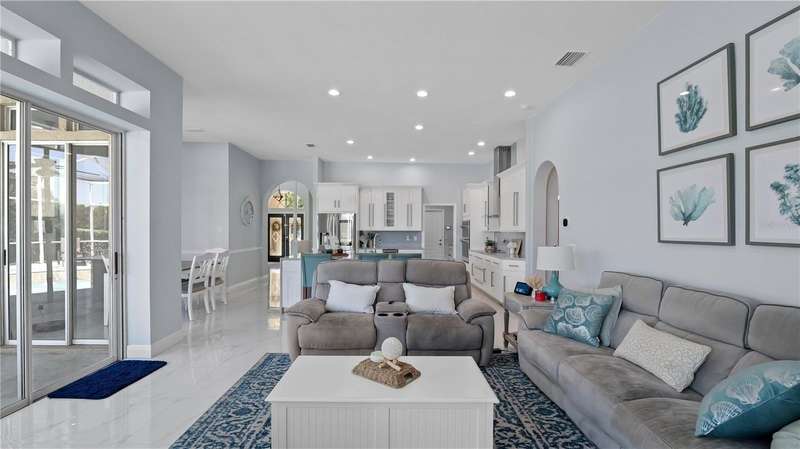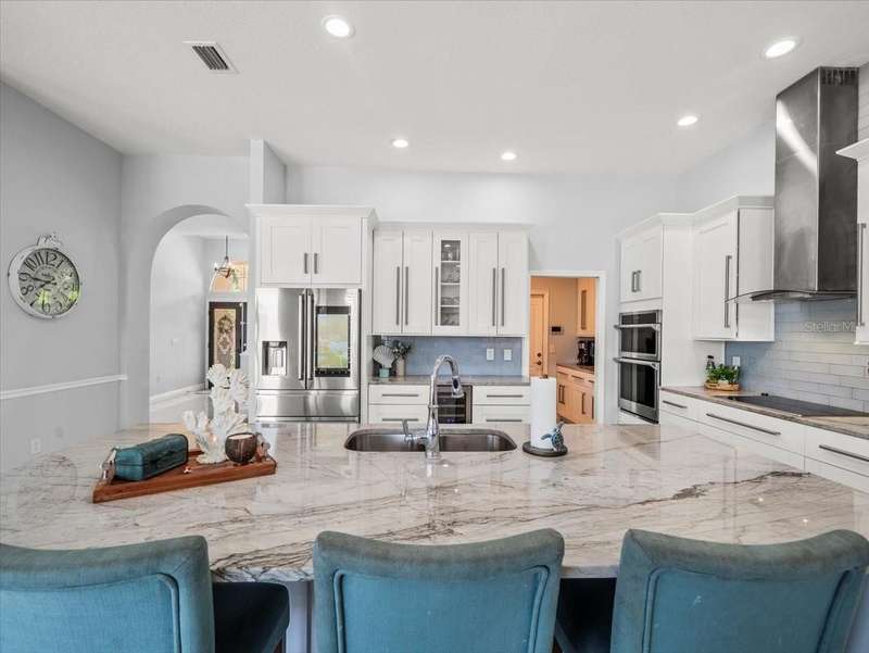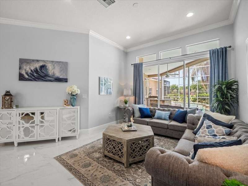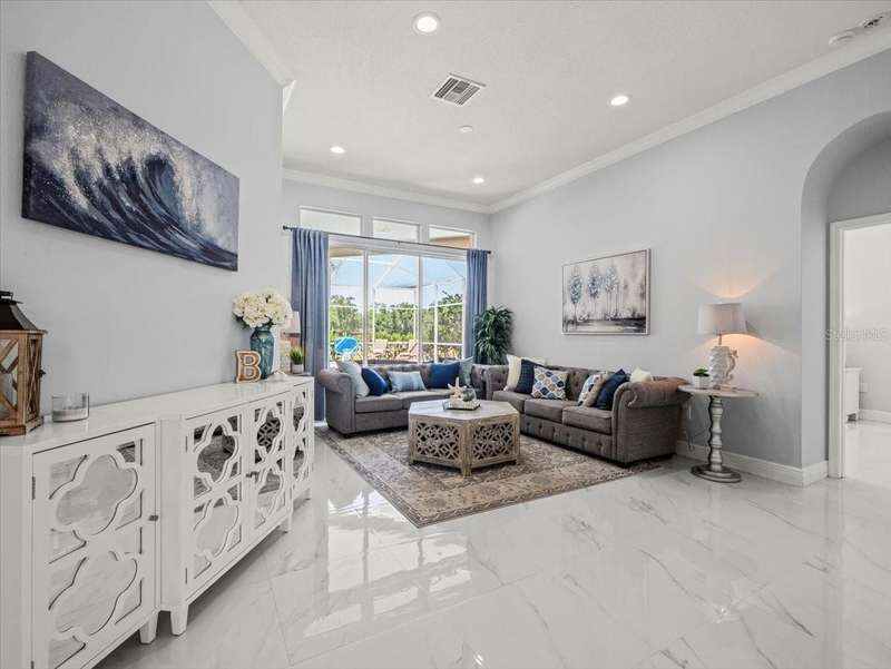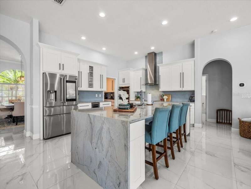 Back on the market due to buyer cold feet, their loss, your gain! Priced 10k below current appraised value means automatic equity! This stunning, completely remodeled, pool home will captivate you! Featuring over 3200 sq. ft. of heated living space, 4 bedrooms, 3 baths, office AND and pre-wired media room/in-law/au-pair suite with eye catching marble tile and crown molding throughout. Beautiful kitchen comes fully equipped for all your entertaining needs: white wood cabinets with self-close doors and drawers, Samsung state of the art appliances: built-in double ovens, induction cooktop, Chef collection smart fridge, dual zone wine fridge and a massive center island with waterfall quartzite countertops and motion faucet, just to name a few. The family room boasts a top of the line 60” GAS LED fireplace and pocket door slider with access to your outdoor oasis! This split floor plan offers the master suite the privacy and room it deserves with a bathroom that is complimented with a large seamless glass enclosure shower accented with glass tile, free standing soaker tub and double sink designer glass vanity. Too many features to list!! This truly is an amazing home nestled in Crescent Oaks gated/guarded Community,convenient to Tampa International Airport, shopping, restaurants, top rated schools, parks and the many activities found in historic downtown Tarpon Springs.