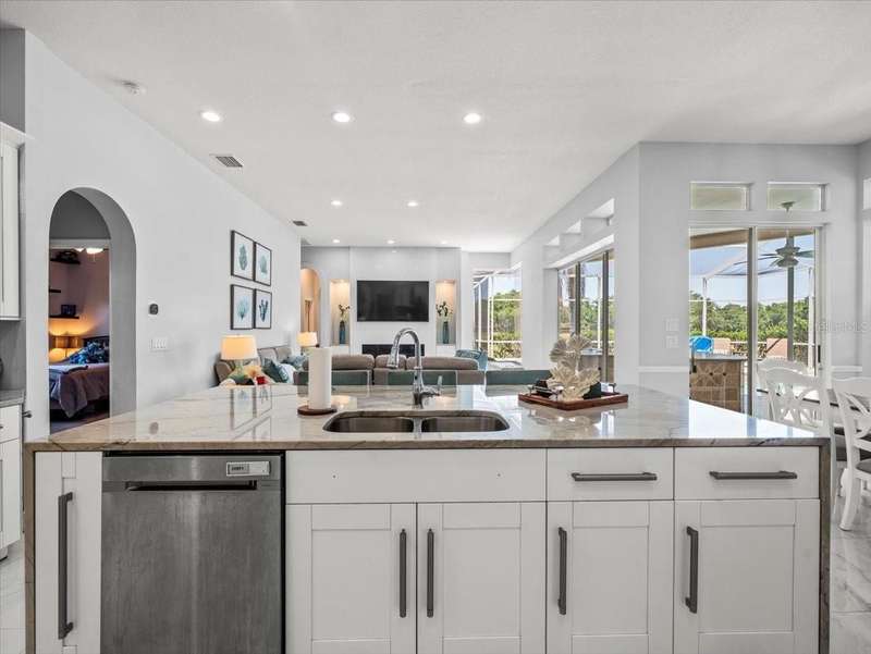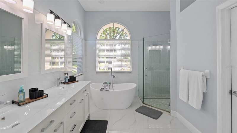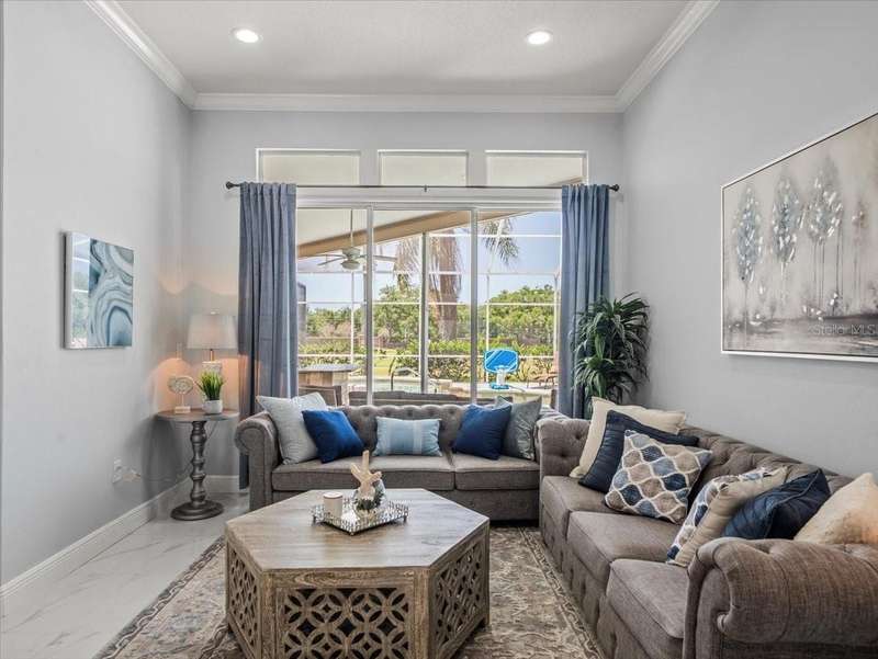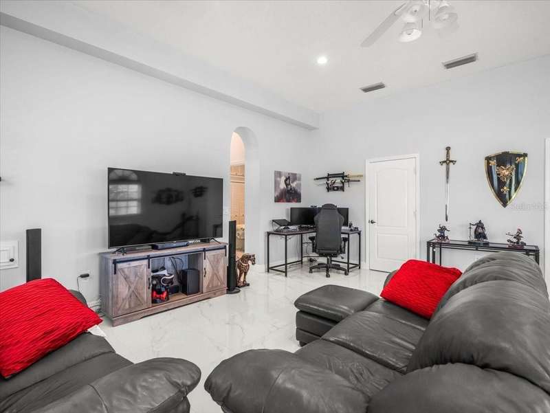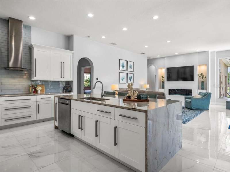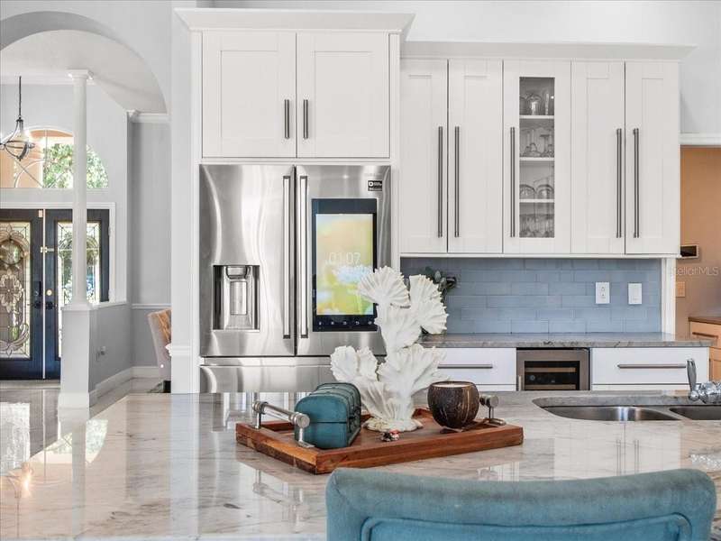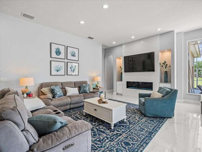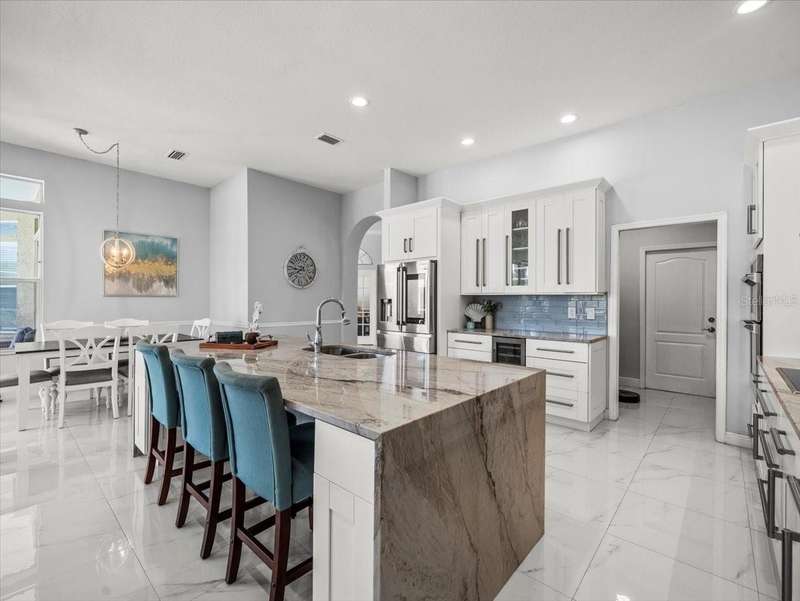 Back on the market due to buyer cold feet, their loss, your gain! Priced 10k below current appraised value means automatic equity! This stunning, completely remodeled, pool home will captivate you! Featuring over 3200 sq. ft. of heated living space, 4 bedrooms, 3 baths, office AND and pre-wired media room/in-law/au-pair suite with eye catching marble tile and crown molding throughout. Beautiful kitchen comes fully equipped for all your entertaining needs: white wood cabinets with self-close doors and drawers, Samsung state of the art appliances: built-in double ovens, induction cooktop, Chef collection smart fridge, dual zone wine fridge and a massive center island with waterfall quartzite countertops and motion faucet, just to name a few. The family room boasts a top of the line 60” GAS LED fireplace and pocket door slider with access to your outdoor oasis! This split floor plan offers the master suite the privacy and room it deserves with a bathroom that is complimented with a large seamless glass enclosure shower accented with glass tile, free standing soaker tub and double sink designer glass vanity. Too many features to list!! This truly is an amazing home nestled in Crescent Oaks gated/guarded Community,convenient to Tampa International Airport, shopping, restaurants, top rated schools, parks and the many activities found in historic downtown Tarpon Springs.