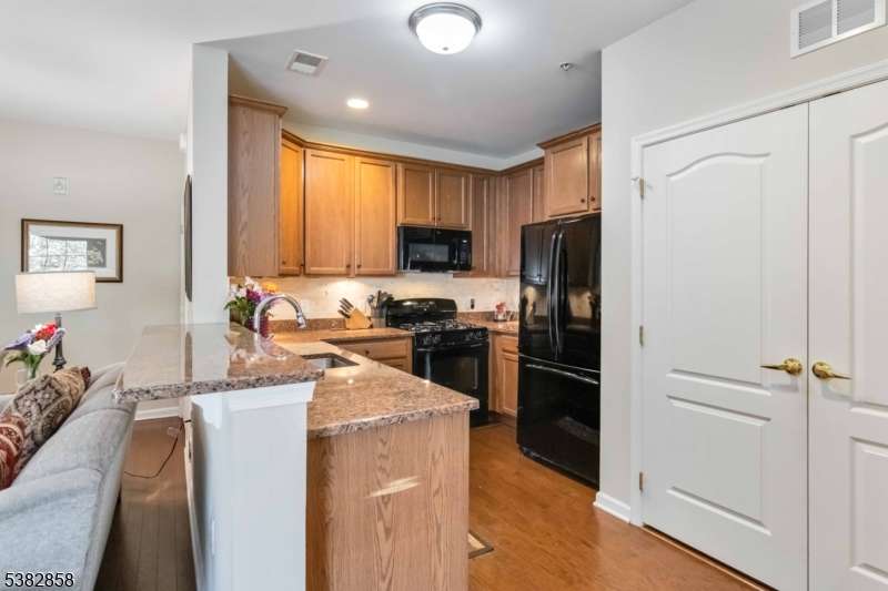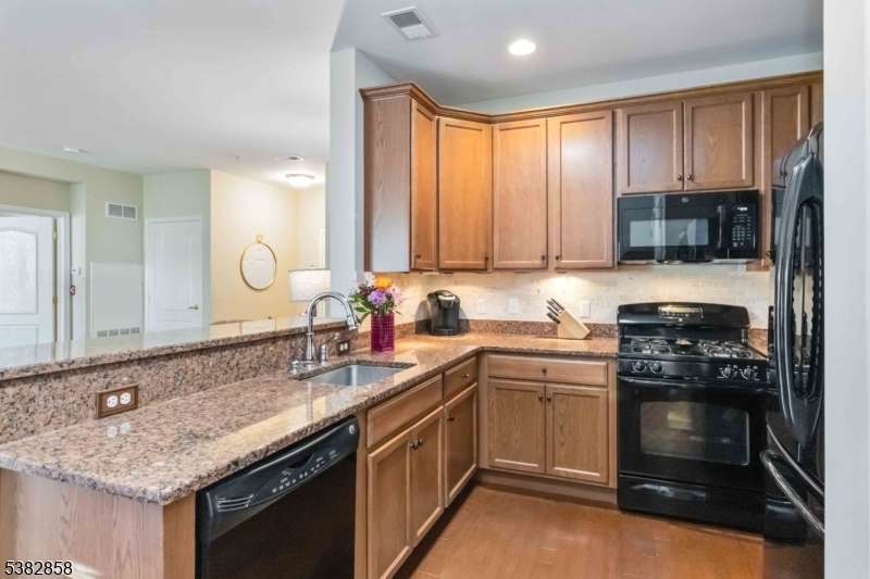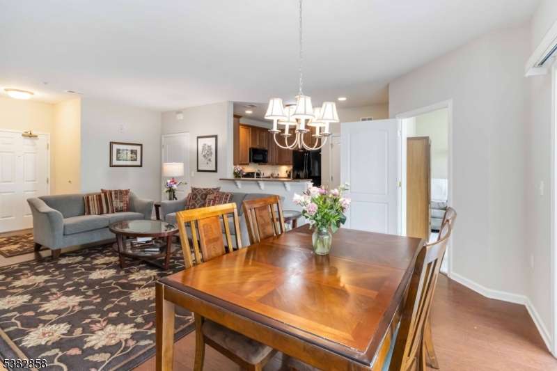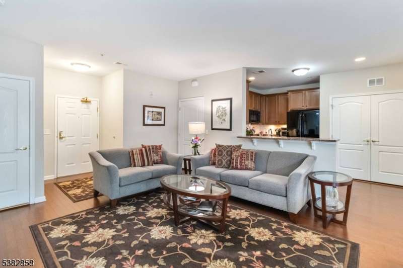 Welcome to The Grande! This spacious first-floor condo offers a rare combination of convenience and style with 1 bedroom plus a den, 1.5 baths, and a private garage. Designed with accessibility in mind, it features wide doorways, no steps, and an easy layout for true one-floor living.Inside, you'll love the hardwood floors throughout the living, dining, and kitchen areas, as well as the high ceilings that make the home feel bright and open. The spacious bedroom provides plenty of comfort, while the den is perfect for a home office or guest space. Step outside to your own private deck ideal for morning coffee or relaxing at the end of the day. The Grande offers outstanding amenities including a clubhouse with a gym, billiards room, office space, and party room, plus an outdoor pool for summer fun and entertaining. Conveniently located just off Route 10, this home makes commuting and everyday errands a breeze.Whether you're downsizing or buying your first home, this condo is a must-see!