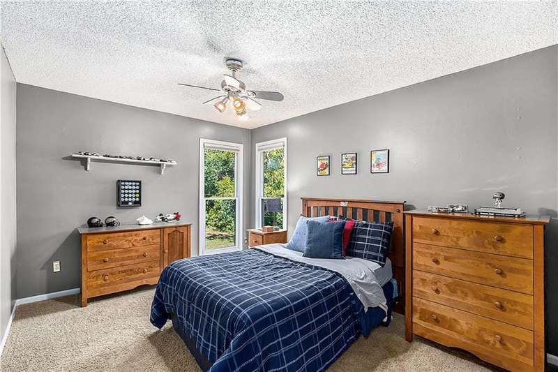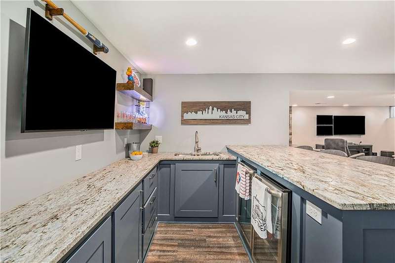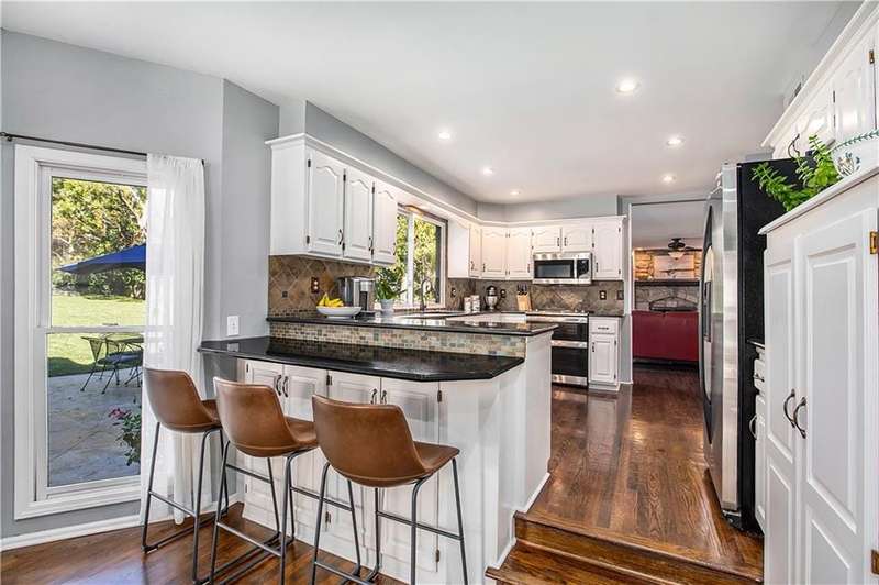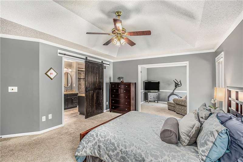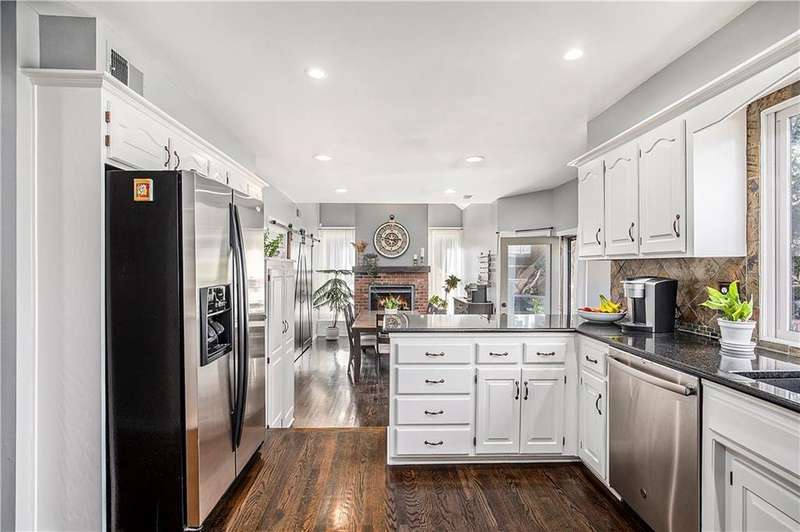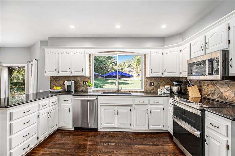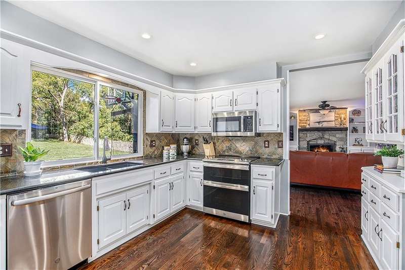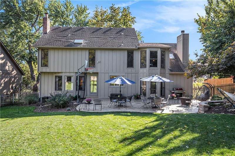 Celebrate the Holidays in Oak Tree MeadowsMove in before the end of the year and enjoy the seasons ahead in this beautifully-updated home on a stunning park-like lot.This 4-bedroom, 2 1/2 -bath home in the desirable Oak Tree Meadows community of Overland Park offers the perfect blend of comfort, charm, and thoughtful design. Pride of ownership shines throughout with consistent updates including an updated roof, fresh exterior paint, and an updated kitchen that opens to the hearth room, dining room, and living roomall overlooking a spectacular backyard.The kitchen features painted cabinetry, granite counters, stainless steel appliances, and an eat-in hearth area accented by a brick fireplace and a clever barn-door drop zone for everyday organization. The living room boasts a stone fireplace framed by built-ins and rich hardwood floors that bring warmth and character to the main level.Step outside to your own private oasisa lush, level .39-acre treed lot with a stamped concrete patio, tranquil water feature, and ample space for entertaining or quiet evenings under the trees.Upstairs, the spacious primary suite includes a sitting area, updated ensuite bath with granite double vanity, walk-in shower, jacuzzi tub, and generous walk-in closet. Secondary bedrooms are equally spacious and share a hall bath with painted vanity and skylight.The finished lower level is designed for fun and functionfeaturing a family room, wet bar, exercise space, and a stylish barn door accent.Nestled in a quiet, established neighborhood with access to Stoll Park, a private neighborhood lake, and just minutes from shopping, dining, and major highways (I-35, 435, and 69)this home perfectly balances comfort, convenience, and community.