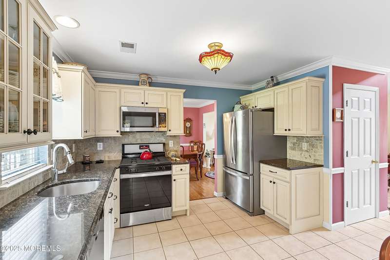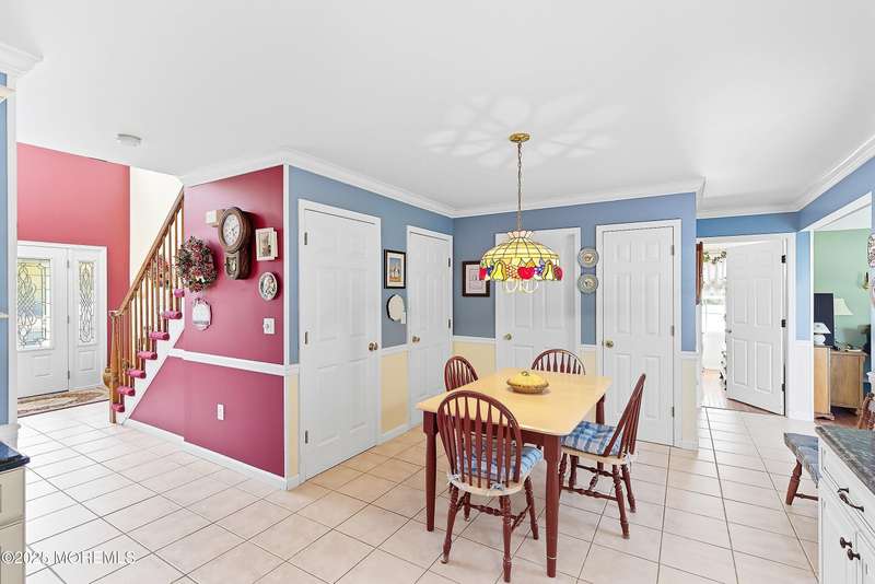 Welcome to this spacious 4 bedroom, 3 full bath colonial on quiet cul-de-sac with full basement, two car garage and private back yard. As you enter the two story foyer with glass panel door, you have a formal living room and dining room.Hardwood floors and tile throughout home. Eat in kitchen offers granite counters, stainless appliances and updated cabinets. Family room is in the back of the house with vaulted ceiling, gas fireplace and has access to trex deck and private yard. First floor full bath and bedroom. Direct access from main level to two car oversized garage.Basement has poured concrete walls, french drain and utilities. Grand staircase leads to upper level with three more bedrooms and two full baths. Primary bedroom has large walk in closet and private bath. Wonderful home!