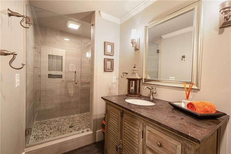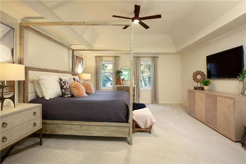 Welcome to this beautifully updated residence in the highly sought-after Wildwood Springs community. Enter through the expansive two-story foyer, where abundant natural light and refined details set the tone for the elegance found throughout this home. Every element has been thoughtfully curated to blend timeless style with modern comfort.The renovated chefs kitchen features quartz countertops, stainless steel appliances, custom cabinetry, and a stylish island that opens to the fireside keeping room, creating a warm and inviting space for everyday living and entertaining.The luxurious primary suite is a serene retreat offering a spa-inspired bath with a soaking tub, frameless glass shower, dual vanities, and custom-designed closets for elevated organization and comfort.The finished terrace level is an entertainers dream complete with a custom bar, home theater, fitness studio, guest bedroom, and full bath. Perfect for movie nights, workouts, or weekend guests.Outdoor living shines with a screened porch, deck, and firepit area surrounded by lush landscaping ideal for year-round relaxation and gatherings under the stars.Situated in one of Roswells most desirable neighborhoods, offering resort-style amenities, top-rated schools, and convenient access to historic downtown Roswell, parks, shops and restaurants this home truly has it all.