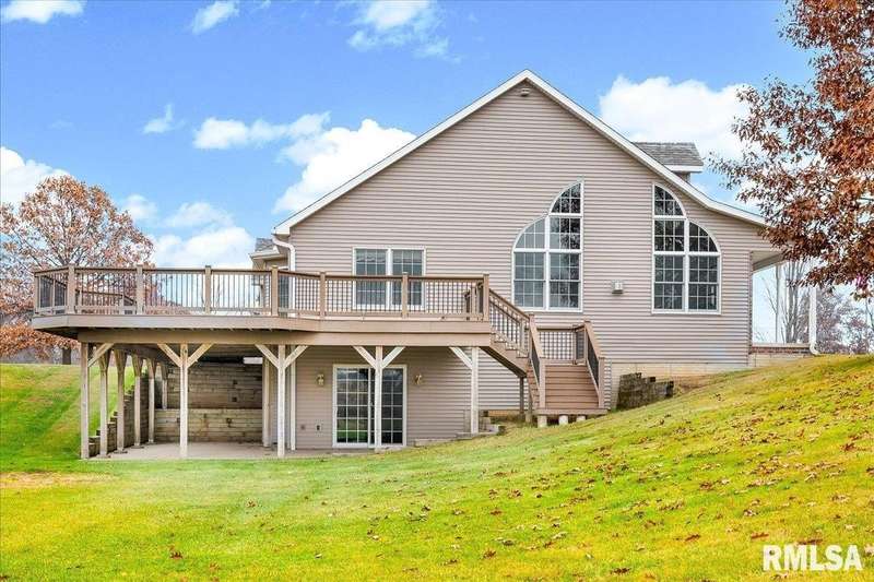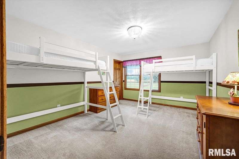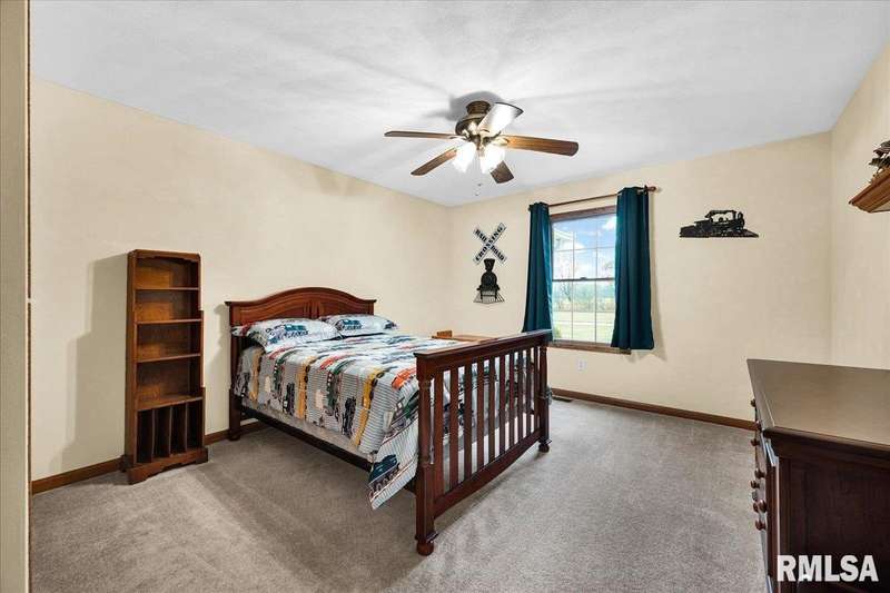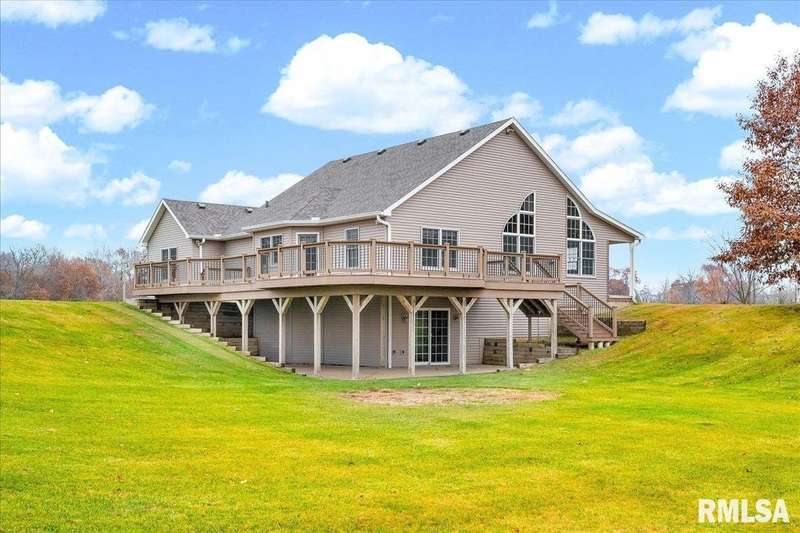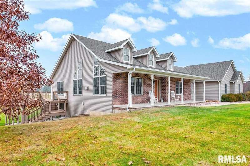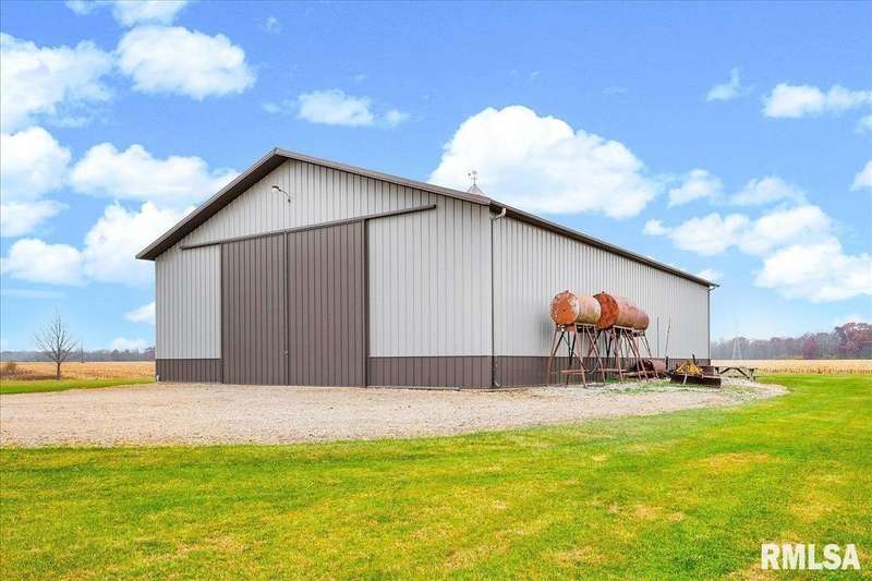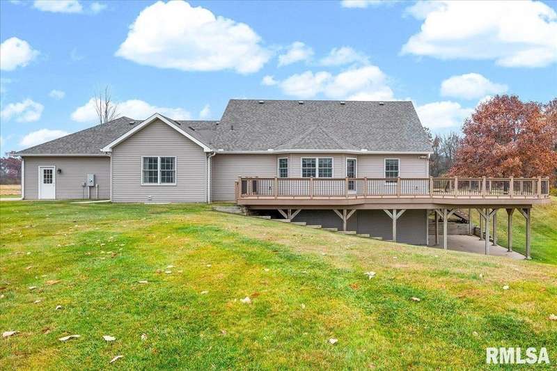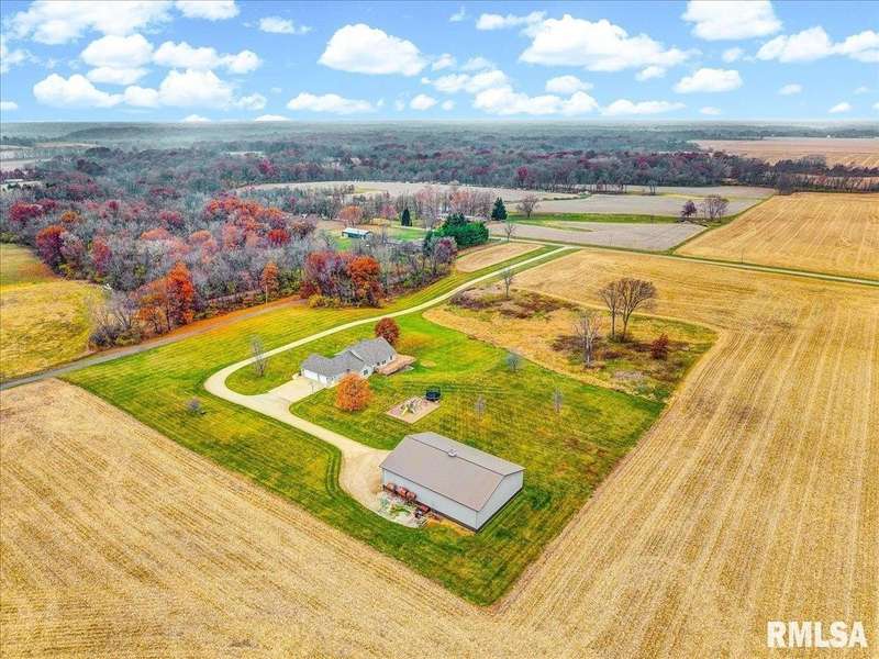 Find your way home to this wonderful one-owner ranch, set on over 12 serene acres. This custom 5 bed, 3 bath property offers 3,563 sqft. Hardwood floors flow through the main living spaces. The spacious family room features a cozy gas fireplace framed by gorgeous windows, offering peaceful wildlife views, and stunning cathedral ceilings. The kitchen is built for entertaining with a peninsula bar and beautiful Amish custom cabinetry. The main floor includes two bedrooms and a large shared bath. The oversized primary suite features a walk-in closet and ensuite, conveniently located right off the laundry/drop zone with a half bath perfect access from the heated three-car garage. Entertaining is easy on the 48'x30' no-maintenance deck. The acreage includes a spectacular 54'x75' Morton Building with 16-foot sidewalls for vertical clearance. It features heavy-duty 6-inch concrete floors and expansive 24-foot sliding doors ideal for all your farming, equipment, or recreational storage needs. The walk-out basement has two additional bedrooms, a living room, and plumbing for a 4th bath, plus a potential pond location right outside. Features include geothermal HVAC, two water heaters, and zoned comfort. This property is ready for hunting, entertaining, and quiet country enjoyment!