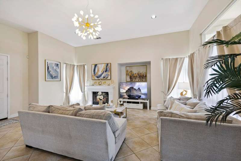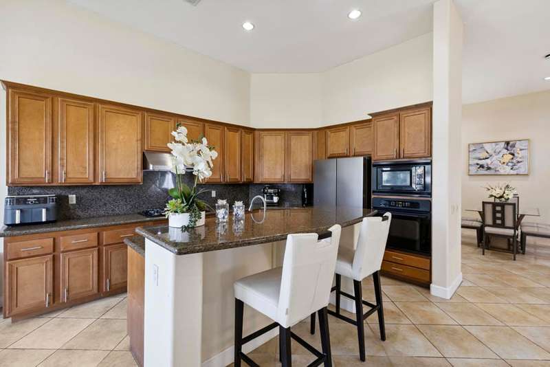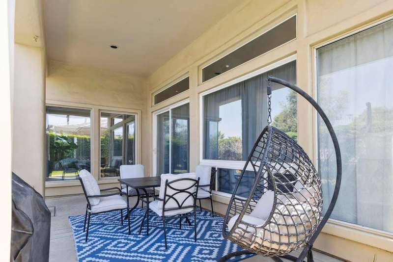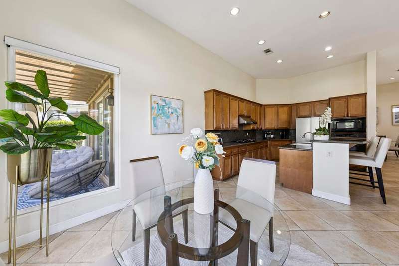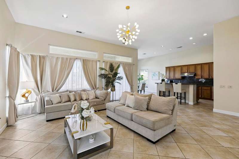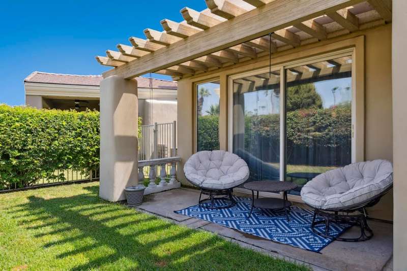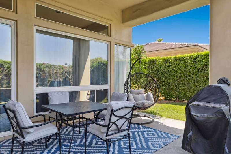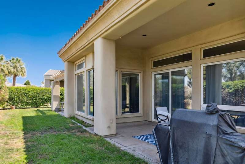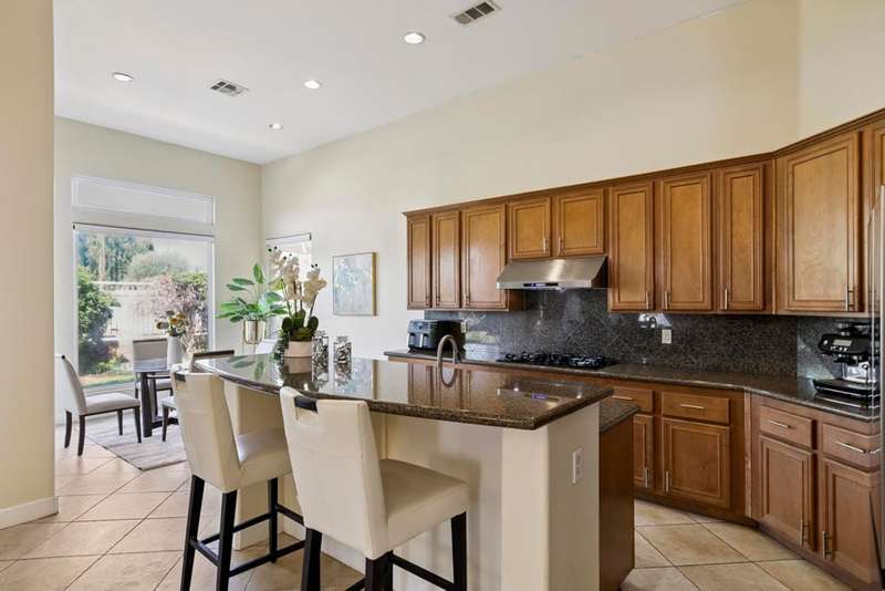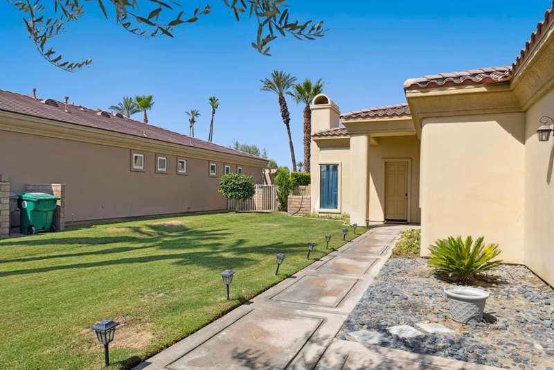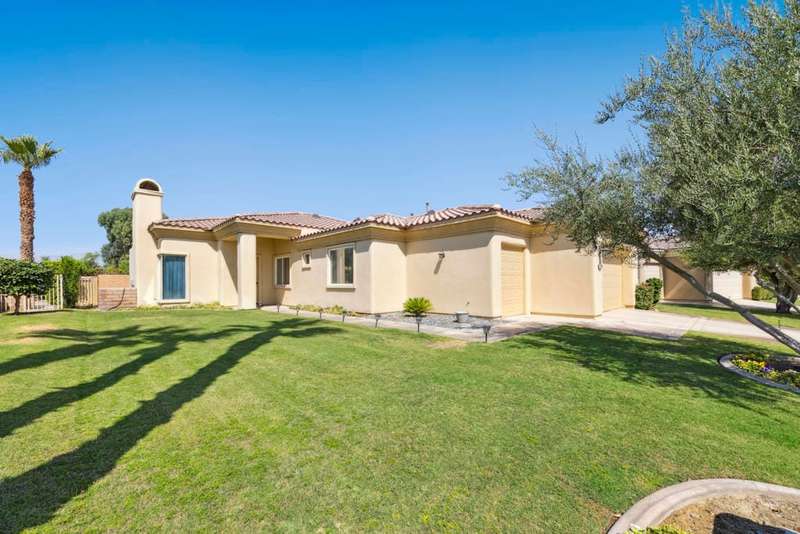 Exceptional and beautiful home located in gated Bellissimo, a nice community of 51 newer homes inside the prestigious guard-gated of Bermuda Dunes Country Club. This stunning home 3BR-3.5BA features an open floor plan designed with high ceilings and plenty of windows to illuminate with natural light. The delightful gourmet kitchen has a nice island, slab granite counters, gas cooktop, newer rangehood, and stainless fridge. Ample great room for entertaining with easy access to indoor & outdoor living. The spacious and bright master suite boast an slider door to rear patio and views. The primary bath has a large tub, a separate shower, dual vanity, travertine counters, and a large nicely organized walk-in closet. The two other bedrooms have their own bathroom. Large laundry room with cabinetry, two car garage with large space to park your truck, plus golf cart garage with separate entrance. This home has been updated with Newer Garage Door, Newer AC unit included HVAC, Newer Fridge, and Newer pipes in the kitchen. HOA for Bellissimo includes community pool & spa, landscaping front & rear yard more private and useful for your pet or doggie! Two private gates, and greenbelt picnic area. This home is connected to sewer, low electric bills with IID, cable TV, internet with Spectrum plus 24-hour guard gated security. This Gem is step to community pool for Bellissimo homeowners only. Do not miss to enjoy the Resort-style living at BELLISSIMO! CASH OFFERS ARE WELCOME!