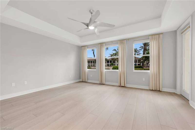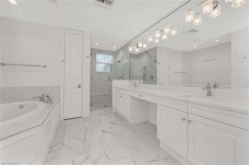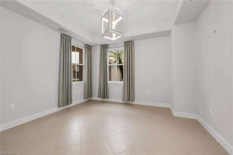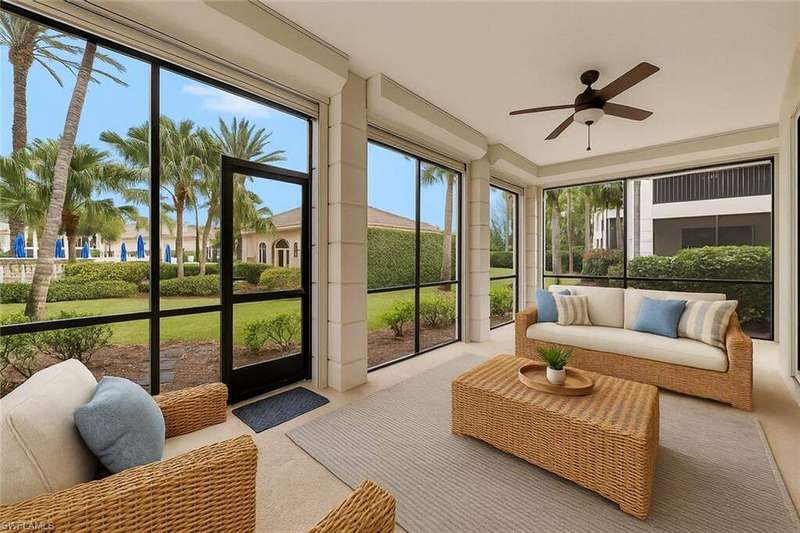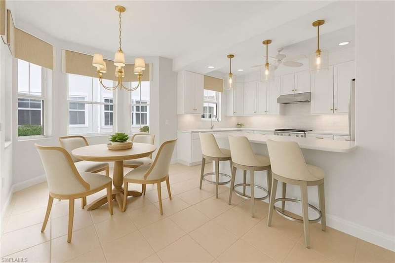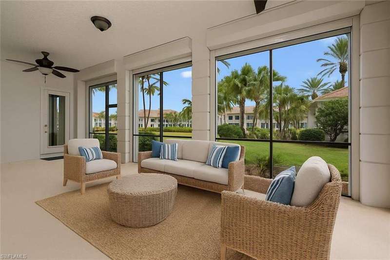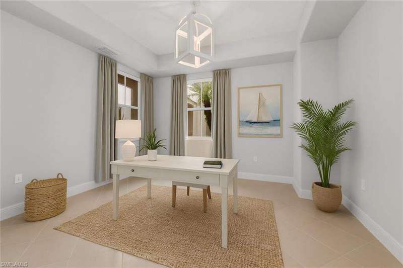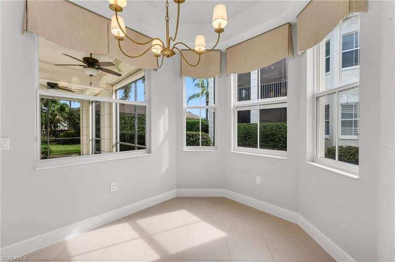 Nestled in the prestigious Vineyards community, this stunning 1st Floor Coach Home in the exclusive Avellino Isles enclave is the epitome of elegance and modern comfort. Featuring three spacious, all-en-suite bedrooms with private baths, a den and a total of 3 1/2 baths, this condo offers the perfect blend of functionality and luxury. Step into the exquisite foyer, where attention to detail becomes immediately evident, with large ceramic tile and luxury vinyl plank flooring that flow seamlessly throughout the home and all walls are freshly painted. The split-bedroom layout provides privacy, while the dedicated office, complete with custom French doors, offers a quiet retreat for work or study. The heart of the home is a beautifully designed kitchen featuring stainless steel appliances, quartz countertops, a breakfast bar, and a separate dining area. Adjacent to the kitchen, the expansive great room impresses with a built-in bar and beverage cooler, perfect for entertaining. A zero-edge slider is the finishing touch to the great room and opens effortlessly to the large screened lanai, where entertaining meets relaxation. The primary suite is a true sanctuary, with volume ceilings, custom cabinetry in the oversized walk-in closet, and a luxurious master bath featuring dual sinks, a separate tub and shower, and private water closet. The screened lanai is equipped with electric storm shutters for peace of mind, while the home's impact-resistant doors and windows provide added security. Additional features include a whole-house surge protector, a Halo allergy system on the AC, room darkening shades in all bedrooms, a 70 gallon Hot Water Heater, Trane smart home control system and a security system. Enjoy the convenience of a two-car attached, side entry garage and the exceptional amenities just steps away, including the Avellino Isles clubhouse, exercise facility, and resort-style pool and spa. The expansive pool deck, equipped with grills and a bar area, is perfect for hosting gatherings-all included in your HOA fees. Centrally located, this property is minutes from Naples' pristine beaches, world-class shopping, fine dining, Mercato, and easy access to I-75. This home is a rare find in a lush, sought-after community where luxury and convenience come together seamlessly. Additionally, Vineyards offers optional golf and social memberships to take advantage of their newly redesigned award winning golf course, resort style pools, clubhouse, restaurant/bar and exceptional exercise and spa facility. This Coach home is a must see!