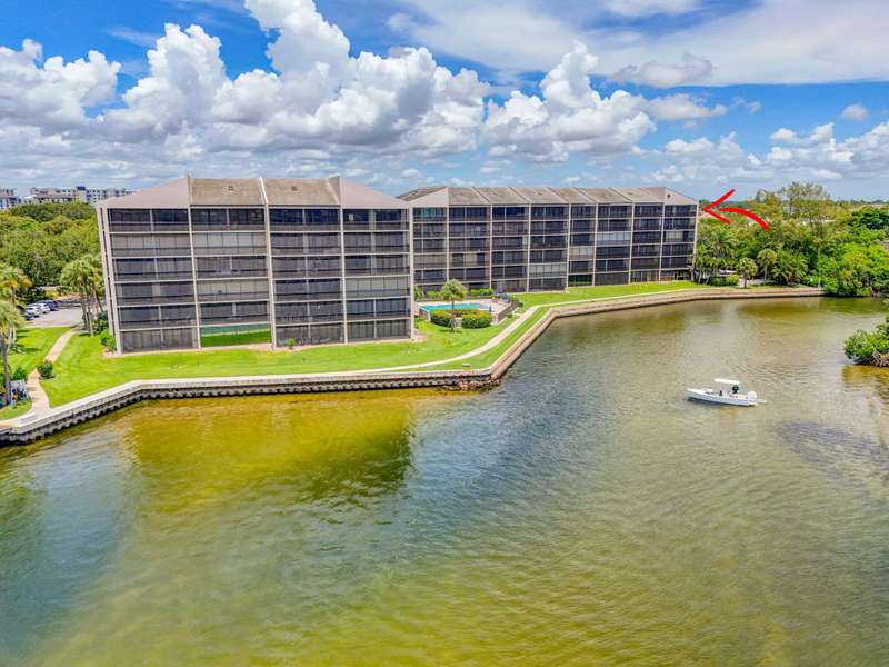 ONE OF A KIND, PENTHOUSE, NE Corner END UNIT with panoramic water views and additional 400 sf loft! Two terraces, large terrace facing east with beautiful water views of Lake and Marina as far as the eye can see! This former builder's model and residence has many upgrades and special features. Natural wood accents, marble floors in foyer, dining and living rooms. Cherry wood floors in bedroom. Sliders to terraces with amazing water views. Master bath has dual vanities, separate tub, and shower. Kitchen with built-ins and breakfast nook. Gorgeous Dining area with NE terrace and Oak bulit-ins. Beautiful guest room with full bath. Upstairs spacious loft a bonus room/office with skylights and lookout terrace! Laundry in unit, carport plus guest parking. Pets welcome DOCKS available