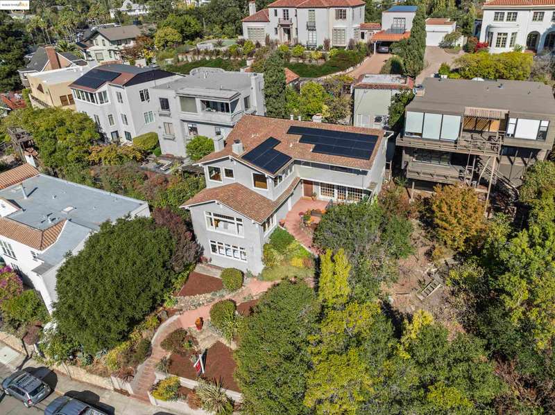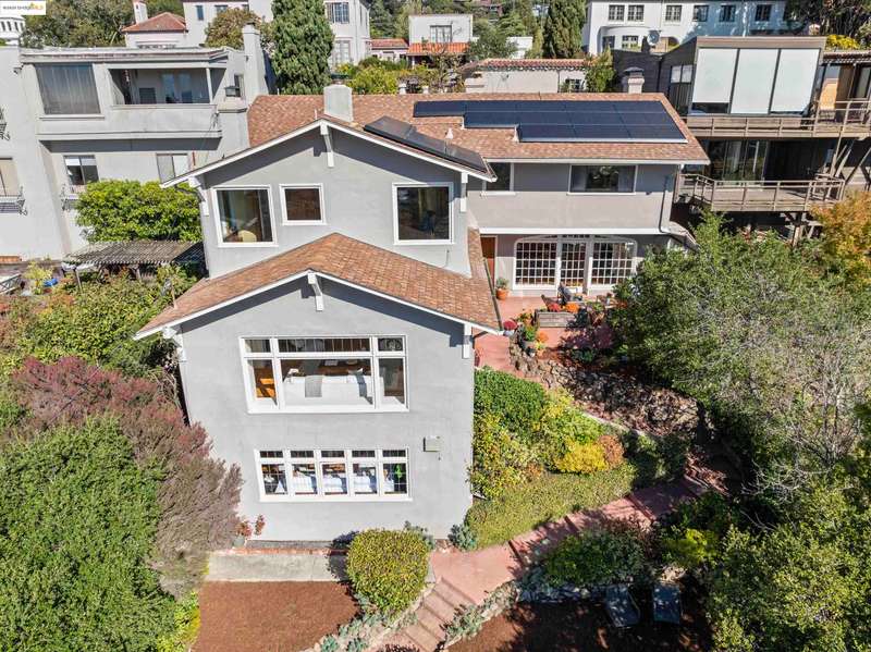 <strong>Golden Views & Vintage Charm in the Berkeley Hills</strong> Perched on a hill adjacent to the historic Claremont Hotel, this 1921 tri-level home is pure Berkeley magic — full of character, charm, and sweeping views that stretch all the way to San Francisco. Step into the grand great room and prepare to be wowed: floor-to-ceiling windows frame postcard-worthy sunsets, a massive fireplace sets the mood, while hardwood floors and original wall sconces tell stories from another era. The updated kitchen is a perfect blend of old and new, pairing a vintage O’Keefe & Merritt stove with modern upgrades that make cooking (and hosting) a joy. Upstairs, the primary suite features its own fireplace and marble-tiled bath, and the two bedrooms beside it include an adjoining bathroom, a small sunroom, and a west-facing sitting room with a fireplace, made for curling up with a book as the city lights come alive. Head down to the third-floor bonus level — a cozy, cabin-like retreat with a private side entrance that’s perfect for a family/rumpus room with an extra bedroom for guests, a studio, or a little creative hideaway.* Outside, the terraced yard is bursting with life — drought-tolerant plants, citrus, and a mature apricot tree, visiting hummingbirds, and plenty of spots to sip your morning coffee or toast the sunset. Sustainability meets comfort with owned solar, a Tesla Powerwall, air conditioning, and a Tesla EV charger in the one-plus car garage. All this, just minutes from the Claremont Hotel, UC Berkeley, and the best local trails, cafés, and markets. This is Berkeley Hills living at its most enchanting — historic soul, modern energy, and endless views. *Buyer to verify use of space. Neither seller nor listing agent has investigated or verified the accuracy of any of these sources of information nor that these spaces are or may be made into legally habitable spaces. Buyer must conduct their own investigation with the city and appropriate professionals and rely solely on that investigation.