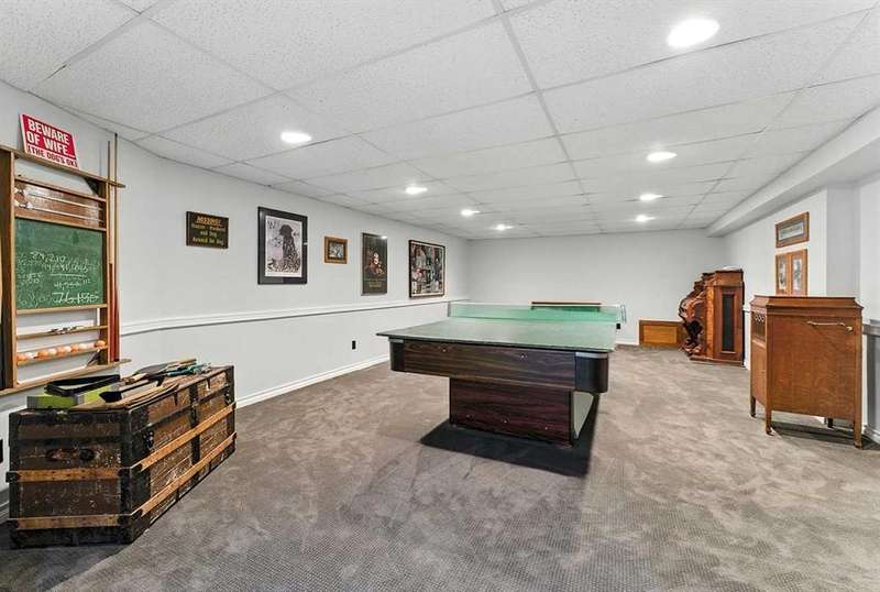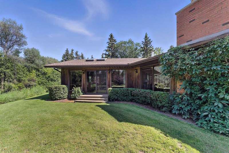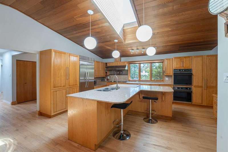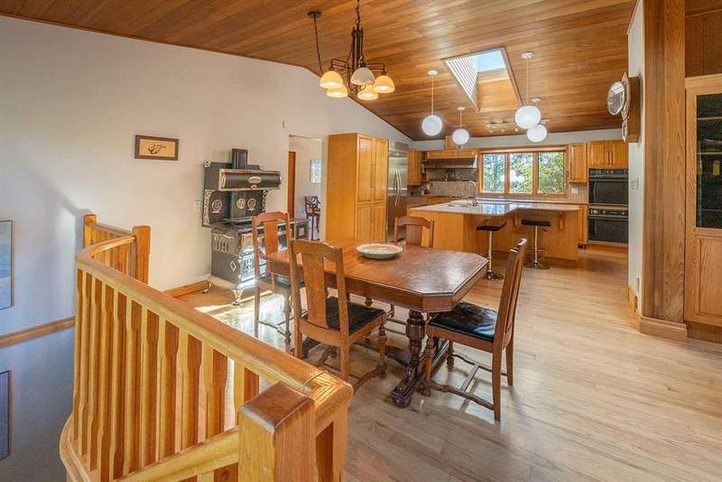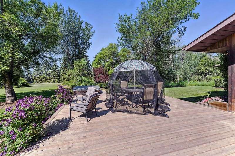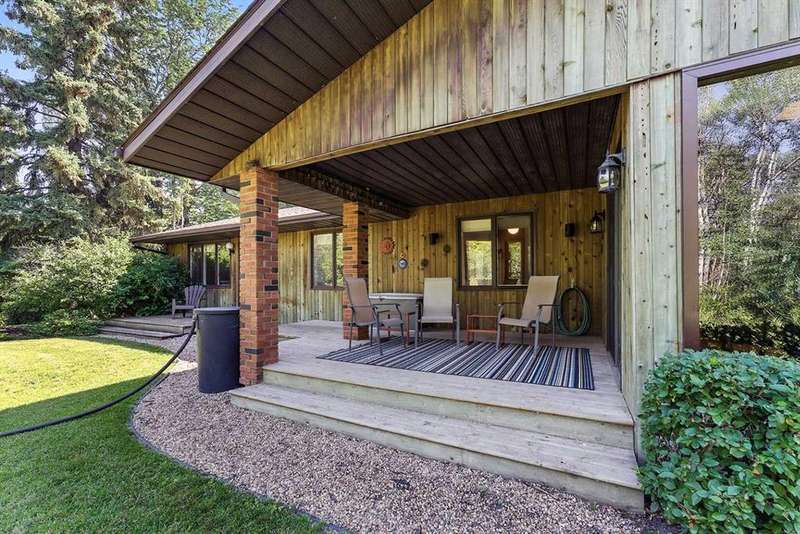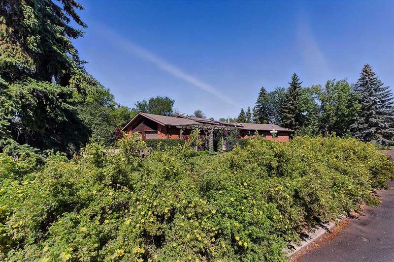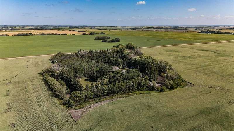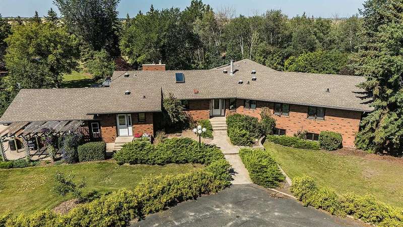 A Prairie Paradise – Executive Rancher with Shop in a Park-Like Setting Set in unmatched privacy among mature trees and lush landscaping, this 2,950 sq ft executive ranch-style bungalow offers a carefully planned layout and a truly peaceful setting. Built in 1978 with 2x6 construction, this home blends timeless quality with thoughtful design, delivering multiple living spaces, abundant natural light, and exceptional attention to detail. Surrounded by a treed park-like yard in the middle of the prairies, it’s a rare combination of seclusion, beauty, and function. From the main entrance, you can move into the expansive great room, a true showpiece with European-style cabinetry, three exterior viewing aspects, and large windows framing manicured grounds in every direction. Two skylights flood the room with natural light, giving it a bright, open feel year-round. The open kitchen and dining area form the heart of the home, with gleaming hardwood floors, a massive island with sit-up bar, commercial fridge, over-the-stove pot filler, and custom cabinetry with numerous pull-outs for effortless storage. Just steps away, the family room invites you to unwind beside a brick-surround wood-burner fireplace with a gas log lighter, or step out onto the rear deck to enjoy the surrounding greenery. A side entrance leads to the mudroom, a handy 2-piece bath, and the attached heated double garage. The main level also features a luxurious primary suite with private deck access, a glass-tiled ensuite with glass block wall, large walk-in closet, two additional spacious bedrooms, a main floor office, and laundry. Natural light flows through 7 solar tubes strategically placed throughout the main level, along with additional skylights in the great room, over the kitchen island, and in the family room. The lower level is just as inviting, accessed by a winding staircase from the main entry or a second staircase from the rear. Here you’ll find a large family room with a brick-surround gas fireplace, a billiards room, sewing/craft room, two more bedrooms, a 3-piece bath, a separate shower room, a cedar steam room, a hunter’s den, a cold room for food storage, and plenty of storage and utility space. The grounds are a private retreat, with underground sprinklers, over 1,000 seasonal blooms, a thriving asparagus patch, mature trees, perennial beds, large gardens, a pickleball/basketball court, baseball backstop, children’s playhouse, and chicken coop. The 27'x31' heated and insulated metal-sided shop with concrete floor is perfect for hobbies, storage, or equipment. Upgrades include a roof replacement in 2013, skylights added in 2013, new doors and trim in 2014, landscaping blocks and front yard redone 5 years ago, and basement carpet replaced 5 years ago. With 4 furnaces for efficient zone heating, hard-surface counters with undermount sinks, and beautiful hardwood throughout the main level, this is a move-in-ready executive home offering unmatched comfort, efficiency, and privacy.