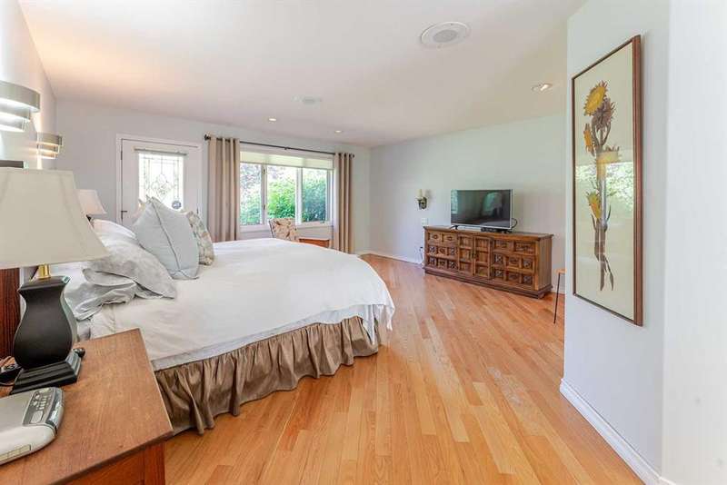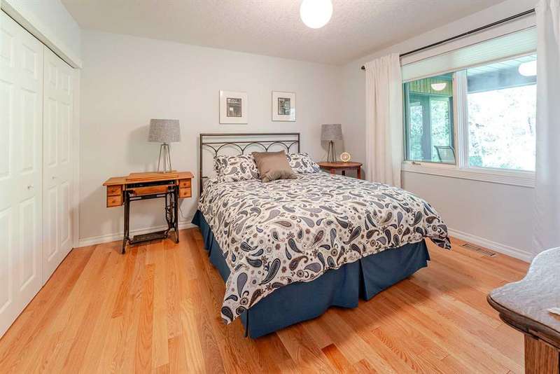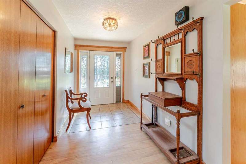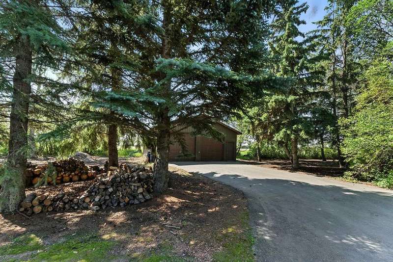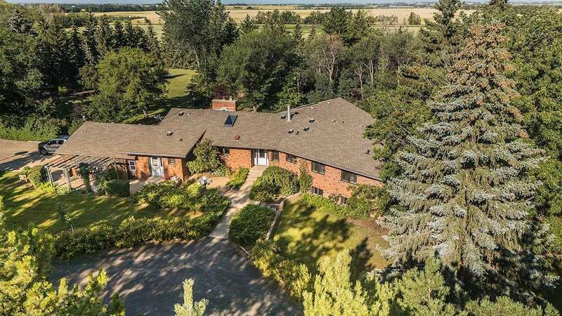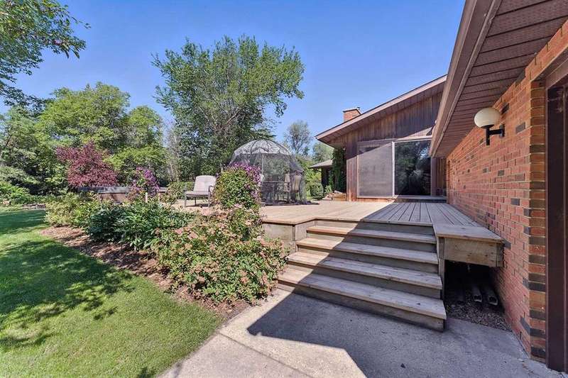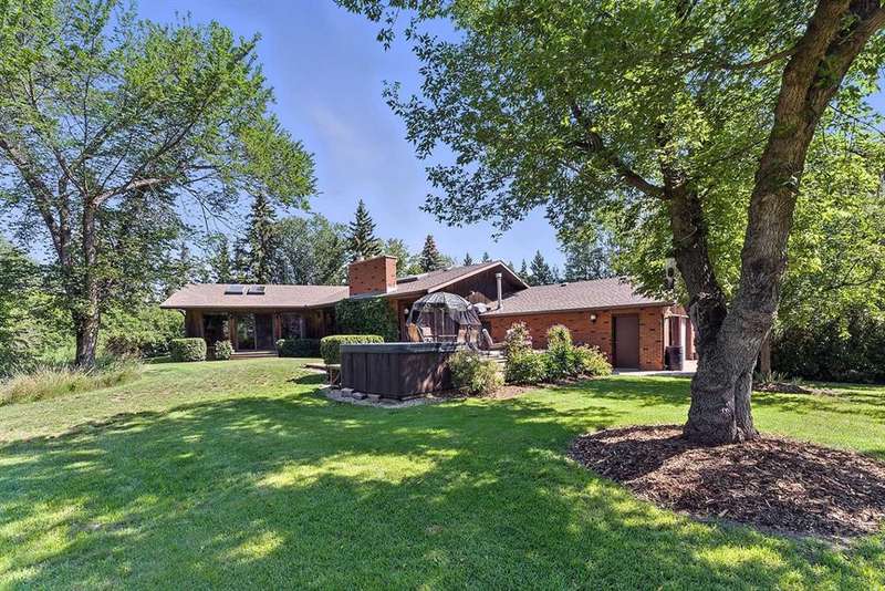 A Prairie Paradise – Executive Rancher with Shop in a Park-Like Setting Set in unmatched privacy among mature trees and lush landscaping, this 2,950 sq ft executive ranch-style bungalow offers a carefully planned layout and a truly peaceful setting. Built in 1978 with 2x6 construction, this home blends timeless quality with thoughtful design, delivering multiple living spaces, abundant natural light, and exceptional attention to detail. Surrounded by a treed park-like yard in the middle of the prairies, it’s a rare combination of seclusion, beauty, and function. From the main entrance, you can move into the expansive great room, a true showpiece with European-style cabinetry, three exterior viewing aspects, and large windows framing manicured grounds in every direction. Two skylights flood the room with natural light, giving it a bright, open feel year-round. The open kitchen and dining area form the heart of the home, with gleaming hardwood floors, a massive island with sit-up bar, commercial fridge, over-the-stove pot filler, and custom cabinetry with numerous pull-outs for effortless storage. Just steps away, the family room invites you to unwind beside a brick-surround wood-burner fireplace with a gas log lighter, or step out onto the rear deck to enjoy the surrounding greenery. A side entrance leads to the mudroom, a handy 2-piece bath, and the attached heated double garage. The main level also features a luxurious primary suite with private deck access, a glass-tiled ensuite with glass block wall, large walk-in closet, two additional spacious bedrooms, a main floor office, and laundry. Natural light flows through 7 solar tubes strategically placed throughout the main level, along with additional skylights in the great room, over the kitchen island, and in the family room. The lower level is just as inviting, accessed by a winding staircase from the main entry or a second staircase from the rear. Here you’ll find a large family room with a brick-surround gas fireplace, a billiards room, sewing/craft room, two more bedrooms, a 3-piece bath, a separate shower room, a cedar steam room, a hunter’s den, a cold room for food storage, and plenty of storage and utility space. The grounds are a private retreat, with underground sprinklers, over 1,000 seasonal blooms, a thriving asparagus patch, mature trees, perennial beds, large gardens, a pickleball/basketball court, baseball backstop, children’s playhouse, and chicken coop. The 27'x31' heated and insulated metal-sided shop with concrete floor is perfect for hobbies, storage, or equipment. Upgrades include a roof replacement in 2013, skylights added in 2013, new doors and trim in 2014, landscaping blocks and front yard redone 5 years ago, and basement carpet replaced 5 years ago. With 4 furnaces for efficient zone heating, hard-surface counters with undermount sinks, and beautiful hardwood throughout the main level, this is a move-in-ready executive home offering unmatched comfort, efficiency, and privacy.