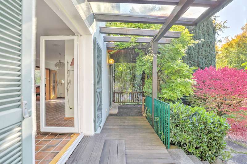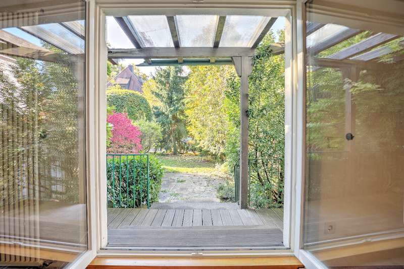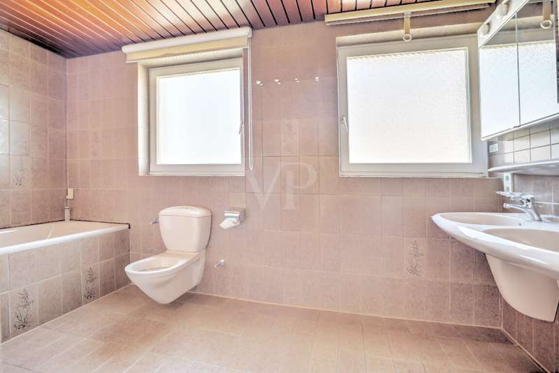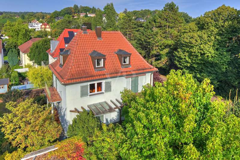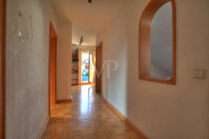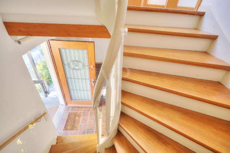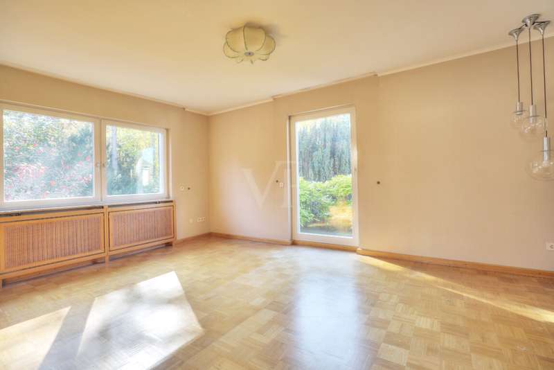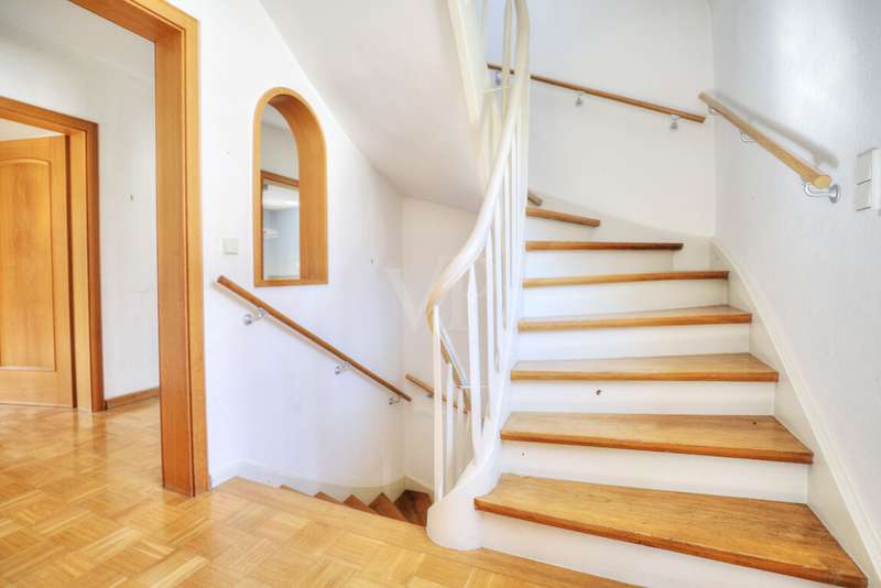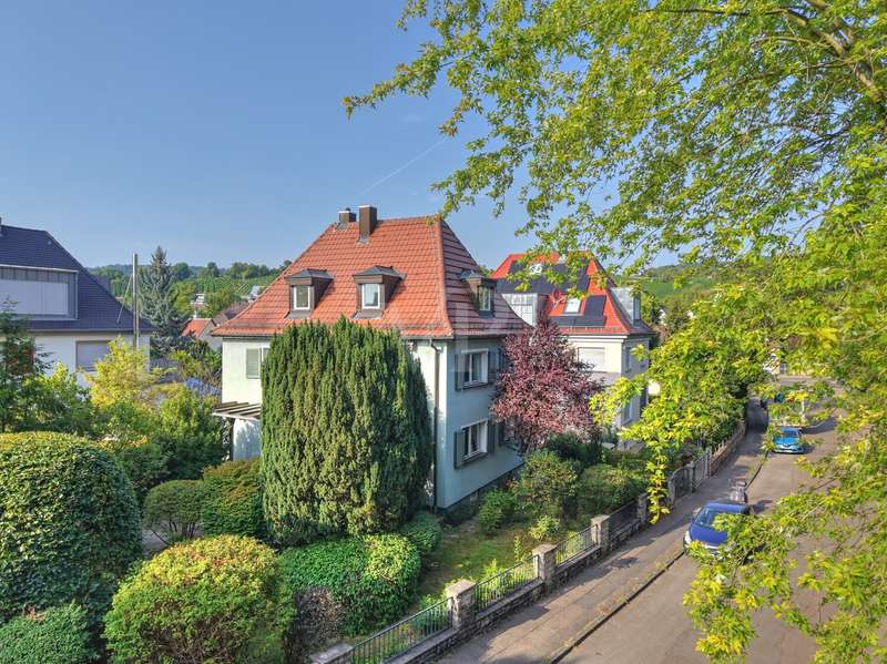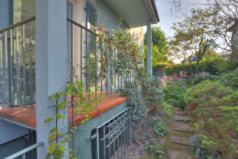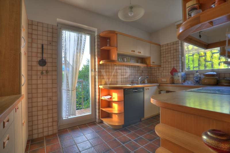 Living at Pfühlpark - with plenty of space for the whole family! This charming town villa from 1937 has been renovated with great attention to detail and combines the timeless character of days gone by with modern living comfort. On a generous plot of 512 m², the house offers around 183 m² of living space - ideal for families who want more room to live, work and feel at home. The flexible room layout, warm atmosphere and numerous lovingly preserved details make this home a special place to call home. The spacious entrance area already conveys an inviting feeling of living. From here, you enter the long, light-flooded living/dining area, which combines both functions in one open space. Large windows provide plenty of natural light and create a connection to the outside area. Two entrances lead from the living area to the veranda-style terrace, from which you can reach the beautiful south/west-facing garden via a staircase. You can also access the same terrace from the dining area via a floor-to-ceiling window - allowing you to seamlessly extend both areas outdoors. From the hallway, as well as directly from the living and dining area, you can reach the separate fitted kitchen. From there, you have access to a small balcony - perfect for growing herbs or enjoying the fresh air in the morning. A classic guest WC completes the space on the first floor. Upstairs there is a daylight bathroom with shower and bathtub, an office with access to a balcony - ideal for enjoying your morning coffee in peace - as well as a children's room and a master bedroom. The spacious hallway not only offers additional space for chests of drawers or cupboards, but also opens out onto another balcony with a wonderful view of the greenery. The top floor can be perfectly integrated into a multi-generational or two-family concept: It has its own kitchen, a bathroom with shower, a separate WC and a large room that can be used flexibly as a bedroom, living room or hobby room. The basement offers two practical storage rooms, a boiler room and laundry room as well as a historic vaulted cellar - ideal for storage or wine lovers. Further features include a double garage and a gas central heating system plus tiled stove, which provide efficient and reliable heat. The property has been continuously maintained and extensively modernized in several stages. Particularly noteworthy is the major core renovation in 1982, during which almost all essential areas were renewed. This included the façade insulation, the complete electrical and plumbing installation, the replacement of doors and windows, new floor coverings, the staircase and the garage. In the years that followed, further value-enhancing measures were carried out, such as the re-roofing (1992), the installation of gas heating and the repainting of the façade (2004), as well as the renovation of the garage and entrance gates, the exterior railings and the fence system (2008/2009). This house combines the charm of past decades with modernized technology, plenty of space and flexible usage options - ideal for families, multi-generational households or anyone who appreciates spacious living with history.