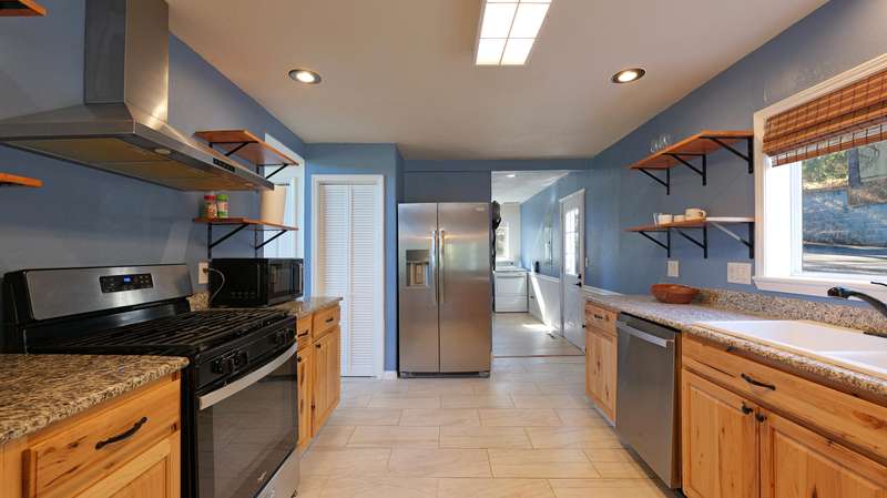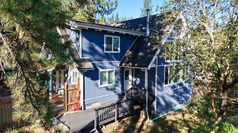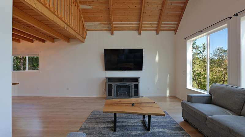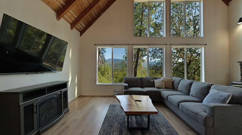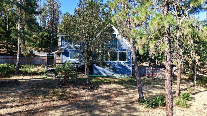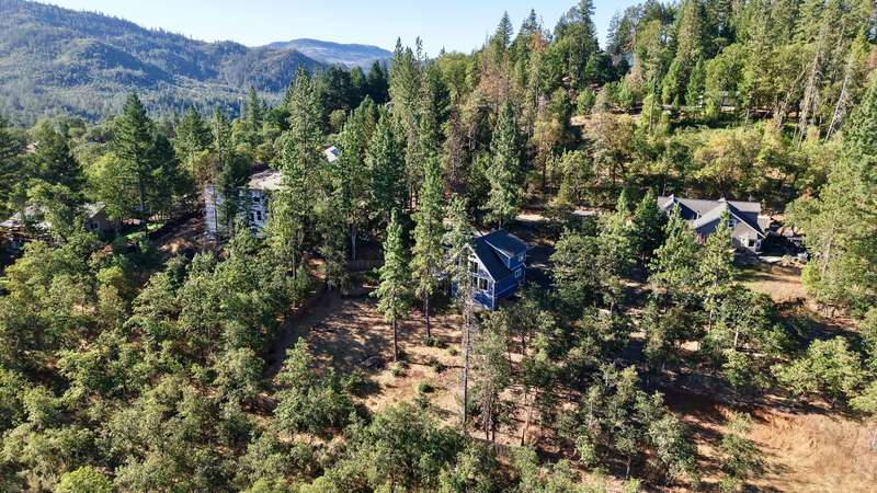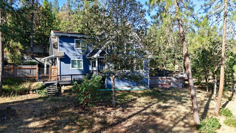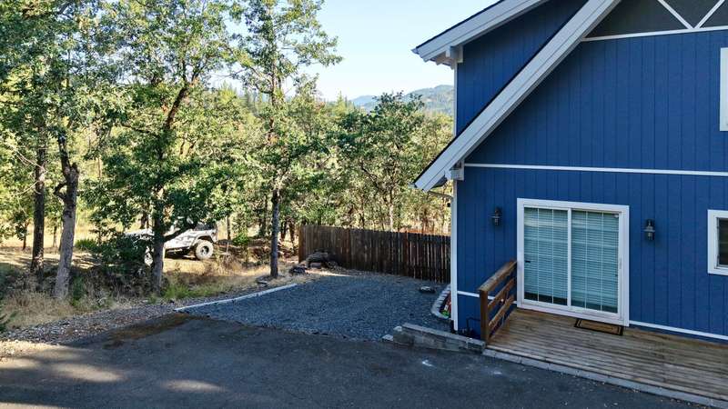 End-of-the-Road Privacy. Sweeping views of the surrounding mountains and forest await you in this stunning home, tucked away in one of Shady Cove's premier neighborhoods. Set on a spacious half-acre, this nearly 1,800-sq. ft. home offers the peace and privacy of a rural setting. Inside, the warm and rustic kitchen features wood cabinetry, updated appliances, a pantry, and charming details throughout. Vaulted ceilings and expansive windows frame dramatic natural vistas, while an open loft staircase leads to a bonus area and a private primary suite with attached bath and additional bedroom. Downstairs, you'll find a convenient laundry room, a second full bath, and a versatile oversized bedroom—perfect as a guest room, home office, family room, or craft room. The outdoor space invites you to relax or entertain with a cozy firepit area and a large, fully fenced yard ready for your personal touch. Come experience the perfect blend of seclusion, style, and convenience!