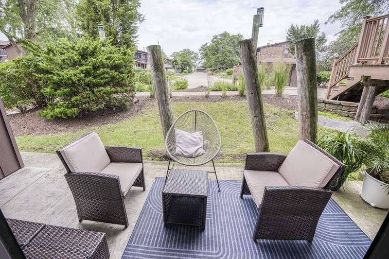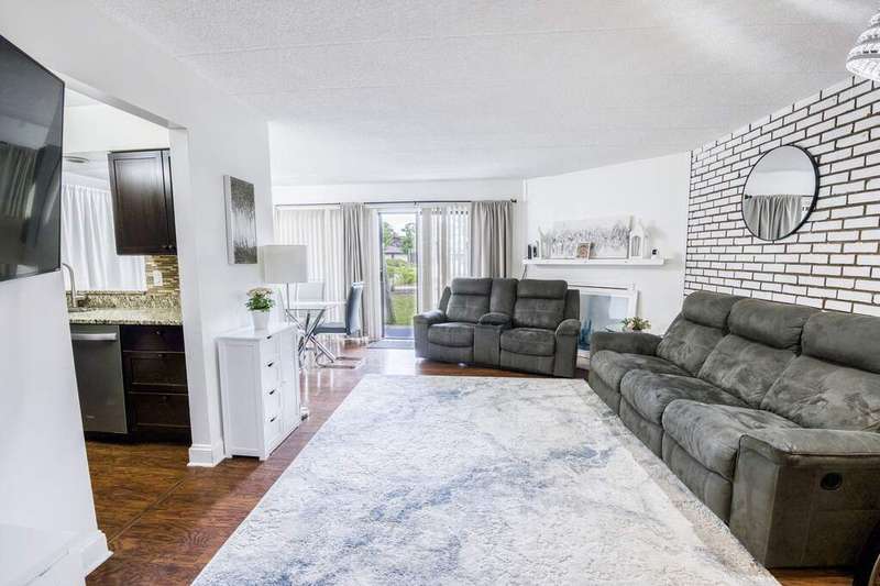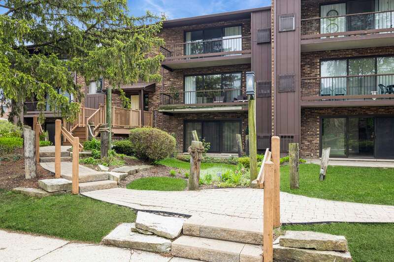 Welcome to this spacious first-floor condo, featuring the largest 2-bedroom layout in the community! The living room boasts a cozy corner fireplace, and the separate dining area is perfect for family meals or entertaining. The updated kitchen comes with a breakfast bar and pantry, making it both functional and stylish. The large master suite offers a walk-in closet and an updated bath, and a brand-new water heater was installed in November 2024. Step outside to your private patio-ideal for relaxing, grilling, or enjoying your morning coffee. Additional conveniences include in-unit laundry, a detached one-car garage with extra storage, extra resident parking, and access to the clubhouse and pool. Located near top-rated schools, shopping, dining, commuter bus service to the train, and easy highway access, this home combines comfort, convenience, and community. Don't miss your chance to make it yours! No rentals allowed.