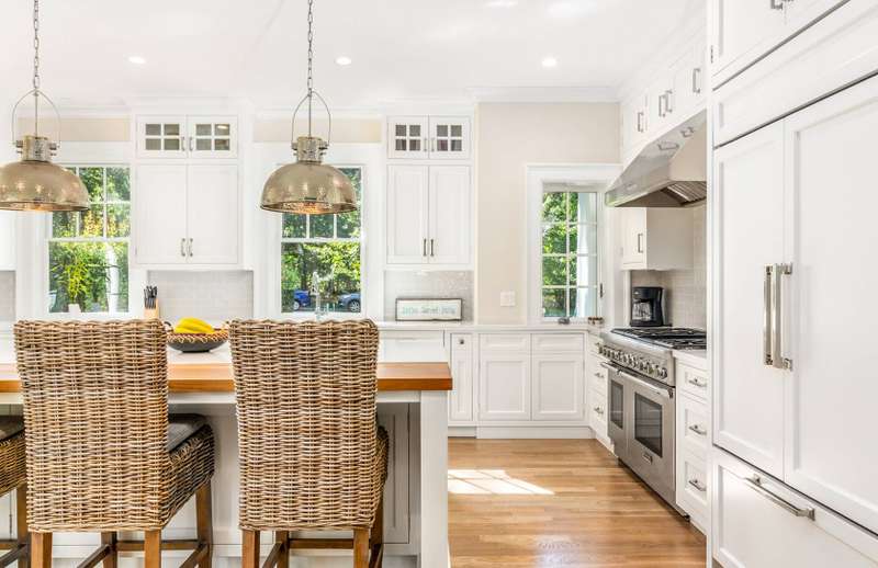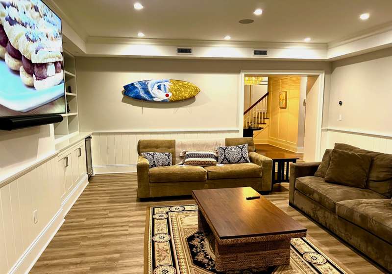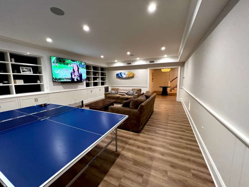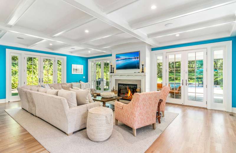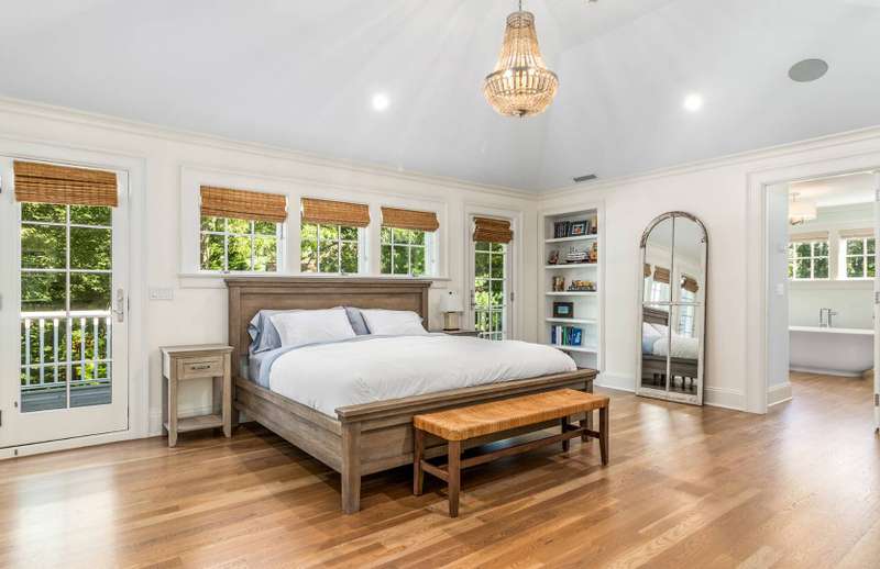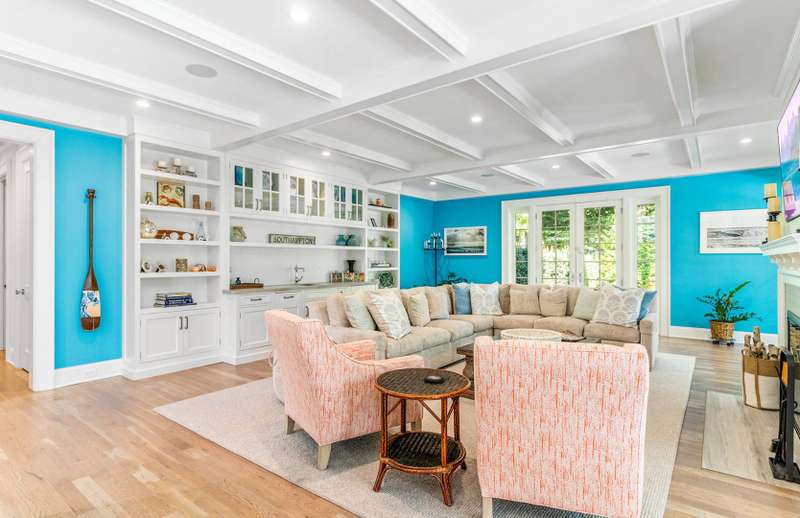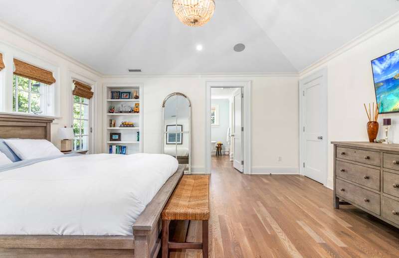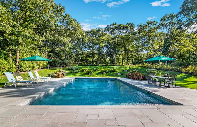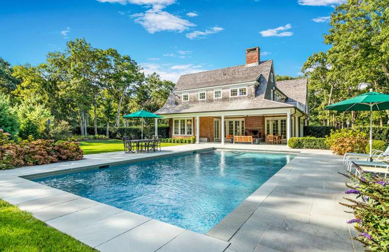 RP# 180383. This 6000 s/f above ground beautiful 2018 construction is located on one landscaped acre on a quiet cul-de-sac and conveniently located minutes from Southampton Village, Beaches, Southampton Recreation Center and the Peconic Bay. The first floor has a large eat-in kitchen with sub-zero/thermador appliances and a beautiful center island with French doors that lead to an outdoor partially covered patio with a wood burning fireplace. There is a bright and sunny family room with a gas fireplace, a wet bar and two sets of french doors that open to the 20 x 40 heated gunite pool with an electric cover, there is a powder room, formal dining room, and an ensuite guest bedroom as well as a mudroom located off the two-car attached garage and basketball in the driveway. The second floor offers a beautiful master suite with a large balcony and three additional ensuite guest bedrooms, in addition to a large play/game room with bunk beds. Each floor offers separate washers/dryers for your convenience. The newly finished lower level offers a large media/game room, a full gym, a generous bedroom and a full bathroom. Equipped with sonos and control 4 systems for music and lighting inside and out this beautifully decorated and comfortable home offers the perfect rental opportunity. Listing ID: 737859