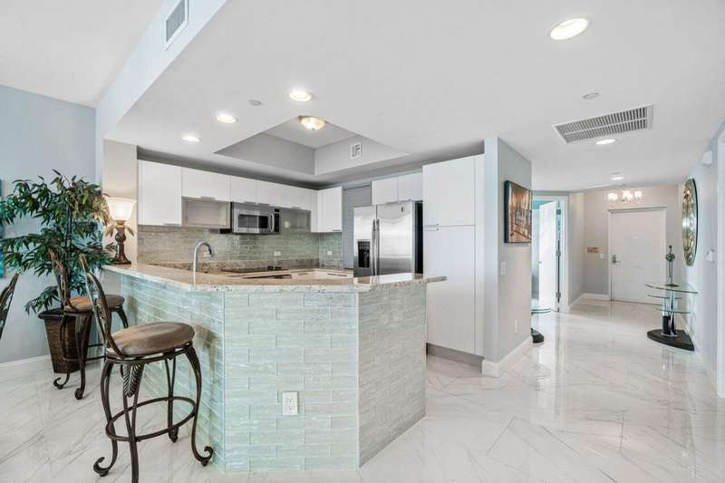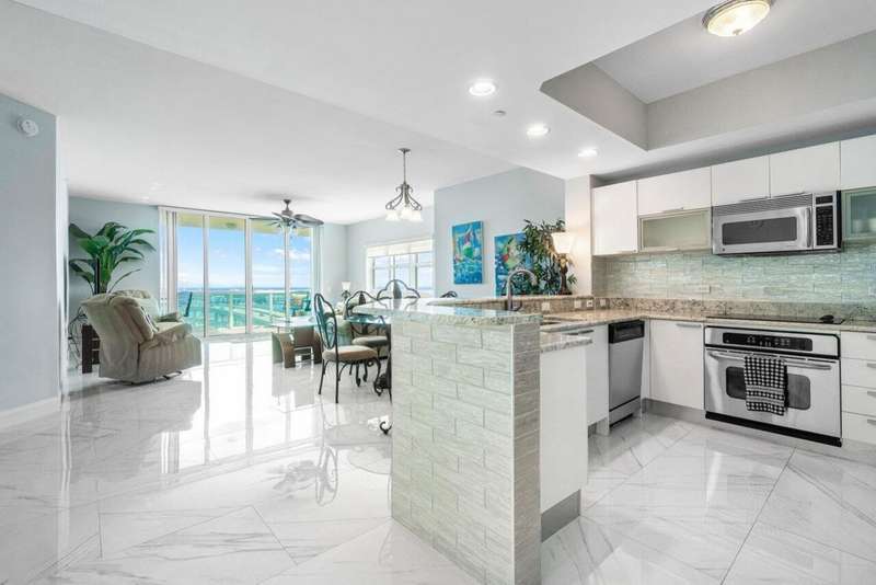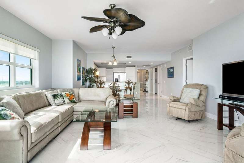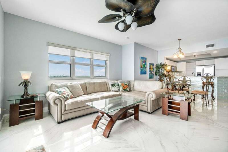 Amazing panoramic views from 12th floor corner unit, direct east facing Intracoastal to ocean views. Furnished turnkey 3BR 3BA condo, tiled floors. Unobstructed views south to Peanut Island, Palm Beach & West Palm Skyline PLUS East to Singer Island & Atlantic Oceans horizon. Enjoy the remodeled open kitchen, great natural light with extra end unit windows. Spacious owners suite w/his & her walk-in closets. Primary bath w/double vanity, jetted bath & water closet. Assigned garage parking & climate-controlled storage unit. 24/7 manned gate, valet. New covered rooftop oasis w/pool, spa, BBQ areas, tennis, pickleball. Clubhouse, fitness center & billiard room. Waterfront walking path w/gazebo. Adjacent marina w/dry docks available, minutes to ocean, no fixed bridges! Pet friendly.