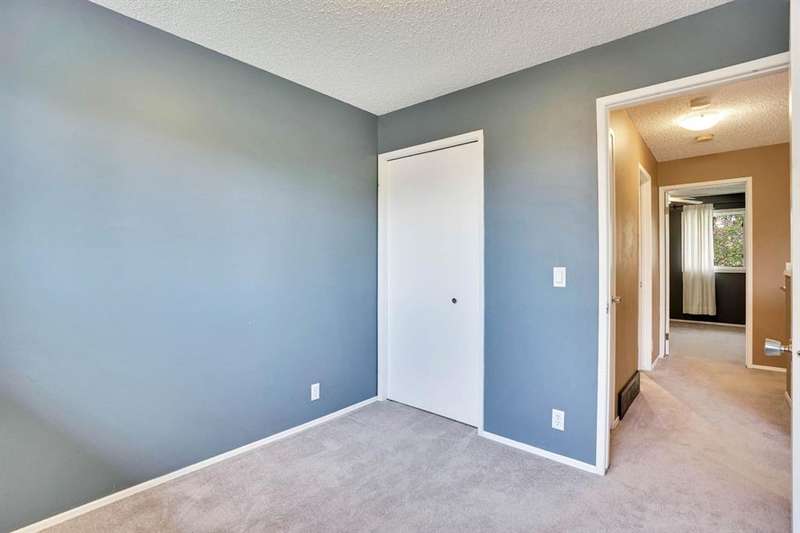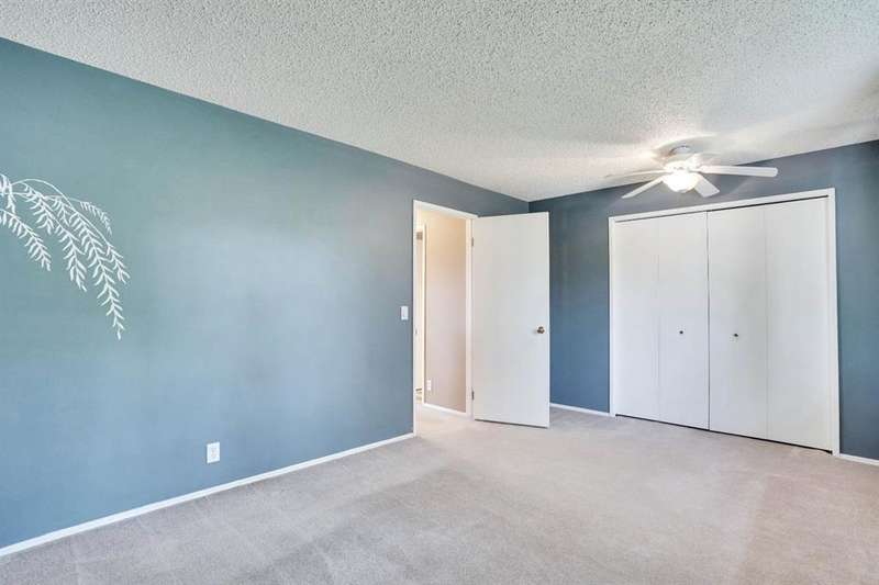 Location, location, location! Affordable living in Calgary, this end-unit townhome in Spicewood offers a bright, spacious living room with a large picture window, a generous kitchen with plenty of cupboards, counter space and pantry, plus a dining area with patio doors leading to a private backyard. A convenient main floor powder room completes the level. Upstairs you’ll find a 4-piece bathroom, a large primary bedroom, a second bedroom, and a versatile loft that can easily be converted into a third bedroom or used as a home office. The finished basement includes a family room, laundry area, and storage space. Well-maintained mechanicals include a furnace and hot water tank, both in excellent working condition. Windows were upgraded to double-glazed units in 2022, improving energy efficiency. This home is ideally located across the street from Beddington Heights Community Association and Beddington Theatre Arts Centre, just minutes from Huntington Hills Skating Club, within walking distance to CBE schools, close to major supermarkets, bus stops, and with easy access to Deerfoot Trail and Centre Street. Park & Ride, playgrounds, childcare centres, and more are all nearby. Updated, well maintained, and move in ready, this home shows pride of ownership. Perfect for families seeking convenience, community, and comfort. Book your showing today!