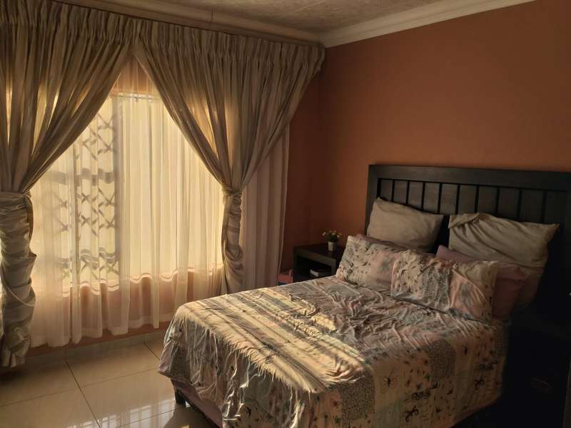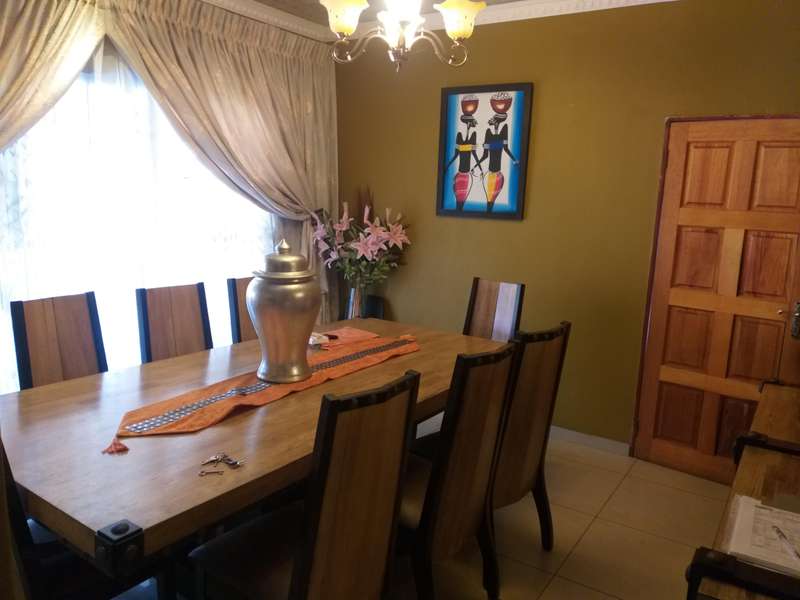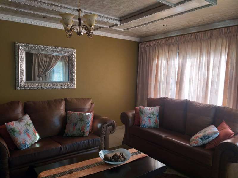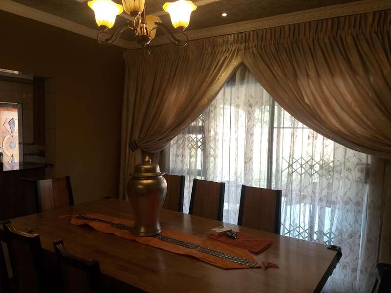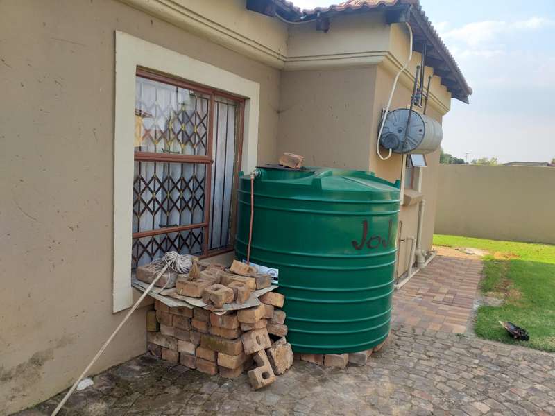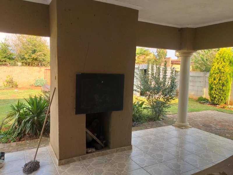 CLEAN GOOD LIVING...AND WATER IS NOT A PROBLEM!! This beautiful 4-bedroom, 2-bathroom house is situated in Eloff, close to Delmas. The kitchen is every woman's dream, with ample cupboards, a breakfast nook, and a separate scullery. The kitchen is modern with Caesarstone countertops. 3 spacious bedrooms with BIC and a double-size main bedroom with a walk-in closet and an en suite bathroom. The 4th bedroom can be used as a study. Sliding doors lead from the dining room to the outside entertainment area and built-in braai. The lounge is cozy with a fireplace for the cold winter days. Double electronic garage door with gate motor. The house is fitted with a 24-hour alarm system. Outside is a big YoYo tank with a pressure pump, so water to this house is not a problem. a nice, big, established, well-kept garden, and at the back an outside building to house all the garden tools, or it can be used as servants' rooms with a bathroom. Don't delay; the price is spot on!! Call me today to come view this beautiful property...it has so much to offer!!