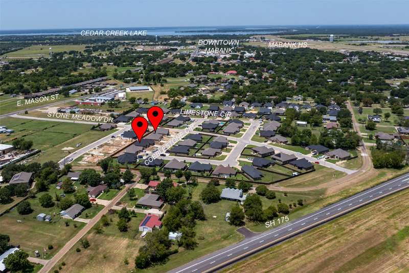 Quality Construction From Start To Finish! Gorgeous new construction home in the heart of Mabank! This 4-2-2 provides a very spacious & versatile floor plan with a flex room that could serve as an office or fourth bedroom. Very open concept in living, kitchen, & dining areas. Beautiful finish outs featuring tray ceilings, recessed lighting, crown molding, rounded corners, granite countertops, tile back splash, & laminate wood floors. Great split bedroom arrangement with nice master suite that offers counter height vanity with dual sinks, large fully tiled shower, soaking tub, & generous walk-in closet. Wonderful storage space through out the home. Great covered patio with ceiling fan. Exterior features include fully sprinkled & sodded yard, flood lights, gutters, & wood privacy fenced backyard. Stone Meadow subdivision is a prime location with close proximity to schools, shopping, dining, Cedar Creek Lake, & Hwy 175 for easy commute to DFW & Tyler!