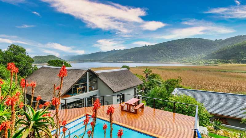 Joint Mandate Step into a modernised, impeccably maintained gem in the Wilderness Lake area. Picture unobstructed views of Island Lake, with spectacular sunsets and sunrises, vibrant lush vegetation, and green mountains. Surrounded by abundant birdlife, this property offers a true sanctuary for peace, tranquility, and relaxation for true “Nature Enthusiasts.” Meticulously cared for by its German owners, this north-facing home is set on a quaint tar road directly alongside Island Lake, nestled within the protected Wilderness National Park. Features: • Business Potential: Ideal for a tourism-related venture, this property offers the opportunity to acquire a small but profitable business with an existing CC, potentially reducing the purchase price. • With minimal monthly costs, no maintenance requirements, and the option to negotiate a separate transaction for all guest house furnishings, you can seamlessly move in and start operating. • Amenities: o Main Living Area: An inviting foyer with an impressive glass staircase leads to an exceptionally large open-plan lounge and kitchen area that extends onto a spacious covered deck with a braai area, overlooking the lake. o Stand-Alone Fireplace: Adds warmth and charm to the main living area. o Main Bedroom: Features Lake views and a full en-suite bathroom with exquisite tiles and finishes. o Deck: Runs the length of the front of the home, offering additional outdoor space. o Loft Area: A sunny, versatile space ideal for an office or quiet retreat, with views of the beautifully maintained garden. o Pool and Sun Deck: An absolute highlight, featuring a gorgeous, secluded pool and expansive sun deck. o Double Garage: Includes an interleading door to an additional open space. o Guest Accommodation: Three well-designed separate units provide ample space for guests while maintaining your privacy. o Backup Power System: Ensures uninterrupted living. o Fast Internet Connection: For all modern conveniences. Additional Information: • The beautiful Blue Flag Wilderness beach and village are just 6 minutes away, offering a range of well-known restaurants, cafes, and festive markets. Essential amenities, including shopping, healthcare, and pharmacies, are conveniently located in the village. • George, 20 minutes away, is the commercial hub, providing additional facilities such as hospitals, shopping malls, and businesses. The airport is a 30-minute drive. • Wilderness is an internationally recognized small-town tourist destination, offering many outdoor activities including canoeing, paragliding, and hiking trails—all right on your doorstep. Explore in 3D: Experience the charm and natural beauty of this property virtually. The location and views are a dream come true for any nature enthusiast. For more information or to schedule a viewing, contact us today!