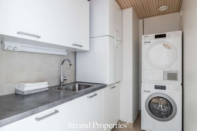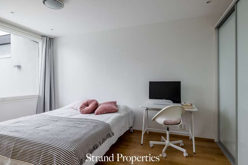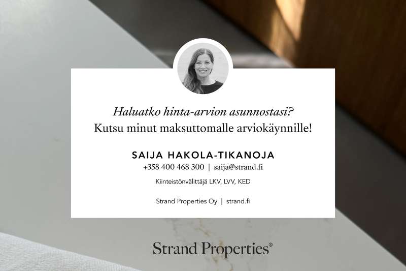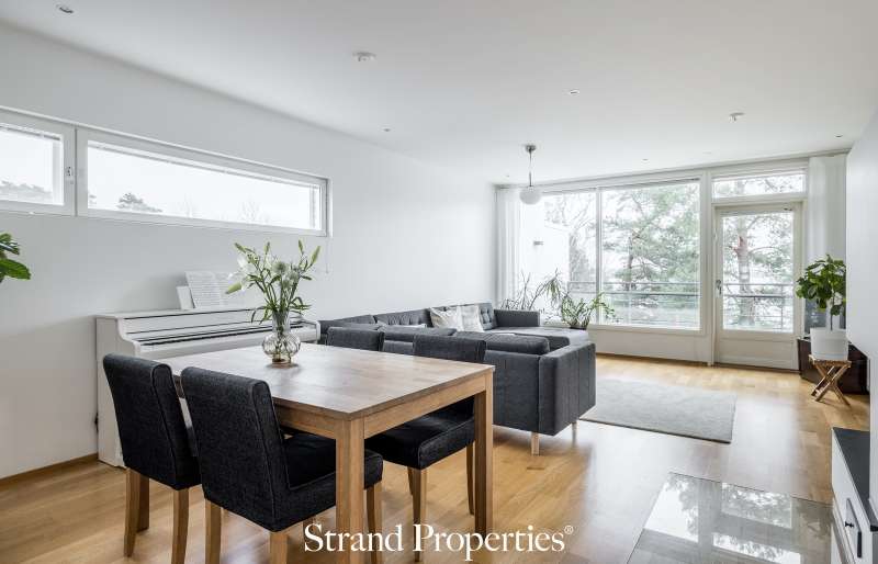 Merellinen ja valoisa koti arvostetussa Munkkiniemessä. Upea ja valoisa huoneisto, joka sijaitsee rauhallisella ja merellisellä alueella arvostetussa Munkkiniemessä. Huoneisto hurmaa kolmesta suunnasta tulvivalla luonnonvalolla, selkeällä pohjaratkaisulla sekä skandinaavisella tyylillään. Tilava eteisaula toivottaa lämpimästi tervetulleeksi ja johdattaa kodin avariin tiloihin. Olohuoneen jatkeena on hulppea, 23 m²:n terassiparveke, josta avautuvat puistomaiset ja merelliset maisemat aina Otaniemeen asti. Täydellinen paikka nauttia auringosta ja ulkoilmasta luonnon keskellä. Yhtiössä on juuri valmistunut parvekkeiden laaja kunnostus. Terassi on myös mahdollista lasittaa omalla kustannuksella. Keittiössä Italialaista designia edustaa Scavolinin puhtaan valkoiset keittiökaapistot, laadukkaat Mielen kodinkoneet ja tehokkaasti toteutetut säilytystilaratkaisut. Lisäksi oma saunaosasto, hyvin varusteltu kodinhoitotila ja tilava vaatehuone.