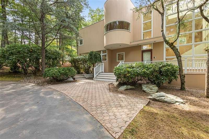 OFFER DEADLINE SUNDAY 9/7/25 @ 4PM. Architecturally significant, and masterfully designed, welcome to this incredibly private contemporary estate in desirable Kirkbrae. Set back from the cul-de-sac, mature landscaping surrounds this sleek wood and glass structure. Enter the front door to find a truly versatile layout, soaring ceilings, and endless windows. To the right is an impressive 18-foot-tall tower of glass, which sets the tone for this unique residence. The large living room connects with an open-concept dining room and curved kitchen. A trio of French doors opens onto the impressive, and totally private, pool deck, which provides the perfect flow for entertaining. A convenient half bath and mudroom finish off this first level. A luxurious primary suite occupies a private wing on the second level and features a private sitting room, multiple walk-in closets and a generous marble bath. A separate wing of 4 generously sized rooms can serve multiple purposes. Currently utilized as two bedrooms, a home office, and a sizable home gym - the home could alternatively be used as a 5-bedroom dwelling. Two additional full bathrooms and a convenient laundry room round off the second floor. A heated 3 car garage and a cabana room with another full bath are added bonuses. Walk to golf and dinner at Kirkbrae Country Club or jump on the highway and be in Downtown Providence in 15 minutes, this location offers the best of both worlds.