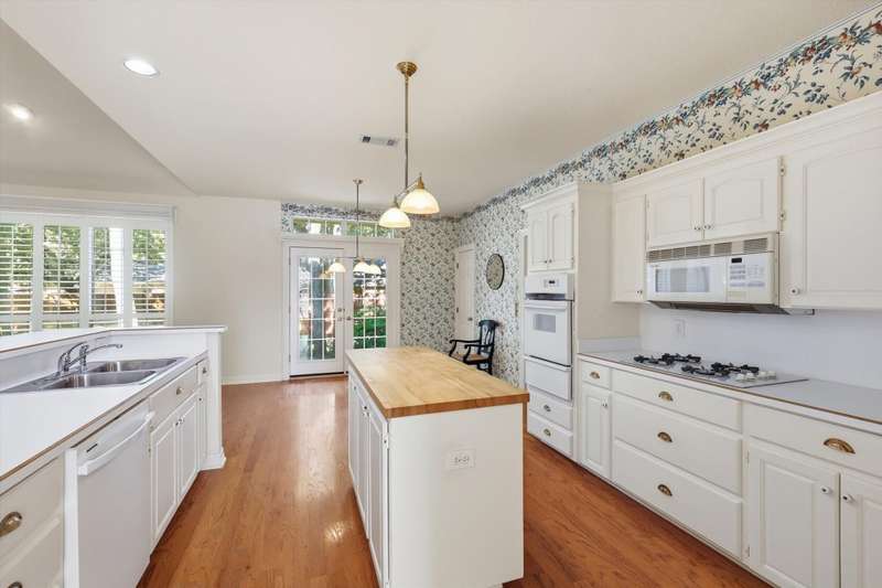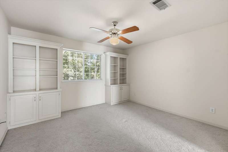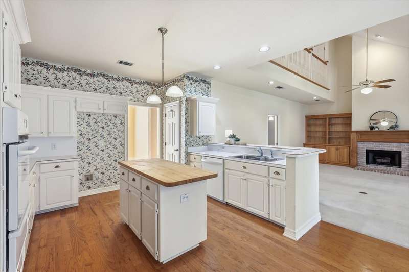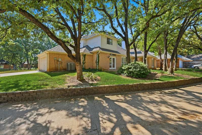 Charming Grapevine Two-Story in Coveted GCISD. Nestled in the leafy Creekwood West neighborhood, this 3-bedroom, 2.5-bath home combines classic character with modern comfort in a premier location. The thoughtful design features two living areas and two dining spaces, ideal for entertaining or relaxed family living. The welcoming living room centers around a fireplace accented by a striking antique 1903 mantle. The large family room offers a second fireplace with built-in shelves and cabinets on both sides. A wall of plantation shuttered windows brings in the daylight and views of mature trees in the backyard. The kitchen and breakfast area open to the family room. The breakfast area features double French doors and a shelved closet for extra storage or a second pantry. The kitchen offers a butcher block top island, abundant storage, and views of the open backyard. The backyard connects to the alley, creating a sense of spacious living. The primary suite is conveniently located downstairs, with two additional bedrooms and a full bath upstairs for added privacy. Wood floors, plantation shutters, and abundant light enhance the inviting atmosphere.Located within the highly rated Grapevine-Colleyville ISD, this home is within walking distance of the elementary, middle, and high schools. The neighborhoods mature trees, sidewalks, alleyways, and thoughtful planning reflect a commitment to preserving natural beauty. Enjoy proximity to Historic Downtown Grapevine, Southlake Town Square, Glade Parks shopping center with an upcoming new HEB grocery store, opening 2026, and Colleyvilles shopping and dining, all just minutes away. DFW Airport is close by with easy access via Highways 114 and 121. Experience timeless character, comfort, and convenience in one of Grapevines desirable communities. It's ready for new buyers to make it their own.
