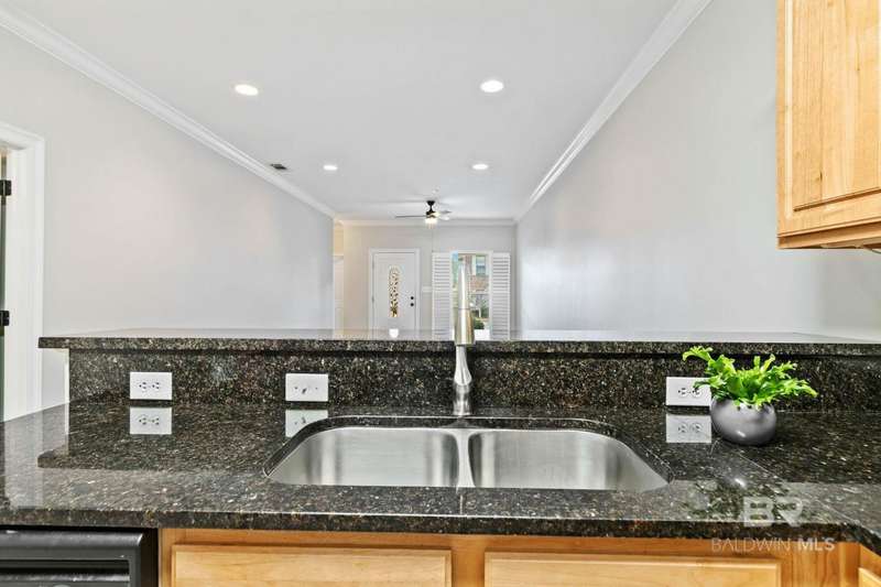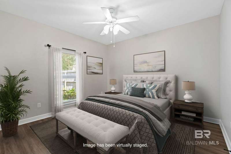 Close to all Downtown Fairhope activities and shopping! This immaculate 3 bedroom, 2 bath brick condo with a garage offers convenient ground-level living and an open floor plan. Not only that, but it offers a maintenance-free lifestyle!Beautiful new wood vinyl plank flooring flows through the main living areas and primary bedroom, complemented by ceramic tile in all wet areas. The kitchen and bathrooms feature granite countertops, and the roof was replaced just 3 years ago. Enjoy a covered front porch plus a private covered back porch with a fenced courtyard overlooking stunning oak trees. Upgrades include a 2-year-old LG 4-door stainless refrigerator, washer, new dryer, upgraded toilets, and plantation shutters in the front rooms. Ceiling fans in all bedrooms add extra comfort.The Oaks of Fairhope is a charming small community with a pool, located close to shopping and downtown Fairhope. All garages are alley-fed for convenience, and the HOA maintains the exterior for easy living. Very clean, fresh, and move-in ready! Buyer to verify all information during due diligence.