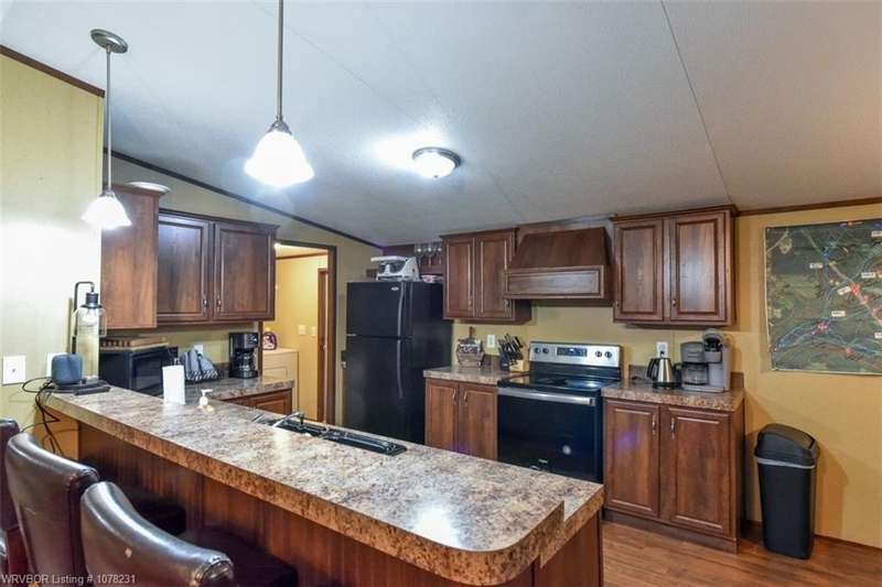 Breathtaking 266-Acre Property in Ozark, Arkansas. This stunning 266-acre property in Ozark, Arkansas, offers endless possibilities and extraordinary features that cater to outdoor enthusiasts, investors, and those seeking tranquility. Property Highlights: Main Residence is a fully furnished 1,344 sq. ft. manufactured home featuring full-length covered front and back porches, perfect for enjoying the picturesque views. Additional Accommodations: include a fully furnished 1-bedroom cabin and a fully furnished 5th wheel travel trailer. Recreational Amenities: Approximately 9/10 mile of White Oak Creek meandering through the property. Scenic rock ledges, diverse topography, and breathtaking vistas. Numerous deer, turkeys, bears, and occasional hogs, making it a hunter's paradise. Several stands, blinds, and feeders for hunting. Infrastructure: Gated driveway for privacy. Approximately 1,800 meters of pipeline. A storage/utility building and a covered area for parking multiple vehicles. Location Perks: Just 6 miles north of Interstate 40. 45 miles to Fort Smith, 72 miles (all highway) to Fayetteville, and 120 miles to Little Rock. Close proximity to a national forest for hunting, hiking, and UTV adventures. Investment Opportunity: The property generates over $30,000 annually in short-term rental income, with significant potential to increase revenue. Whether you're seeking a serene retreat, a lucrative rental investment, or a hunting haven, this property offers unmatched versatility and natural beauty. Let your imagination run wild with the possibilities! Contact us today to schedule your private tour and experience this remarkable property firsthand.