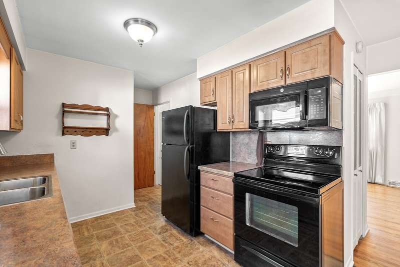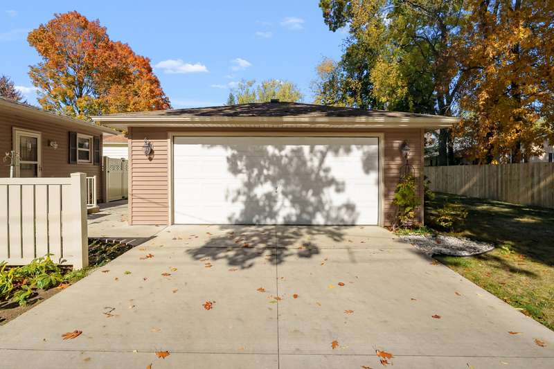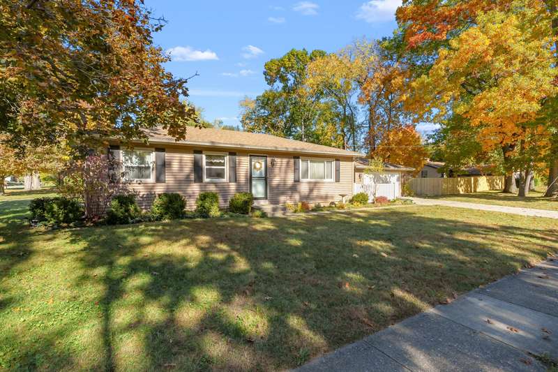 This beautifully maintained home offers 1,246 square feet of comfortable, finished living space and is perfectly situated on a desirable corner lot in a well established neighborhood in the heart of Portage. Step inside to find beautiful hardwood floors in the inviting living room, an updated kitchen, and three spacious bedrooms complemented by 1.5 baths. The partially finished basement provides versatile space ideal for a recreation room, home office, or hobby area. Outside, enjoy the low maintenance appeal of newer vinyl siding and relax on the charming back patio perfect for quiet evenings or intimate gatherings. The large side and front yards offer ample room for outdoor fun, while the detached two car garage provides added convenience and storage. Pride of ownership shines throughout this move in ready home, ideally located near parks, schools, and shopping. Don't miss your chance to own a delightful Portage home that blends modern updates, everyday comfort, and timeless charm!