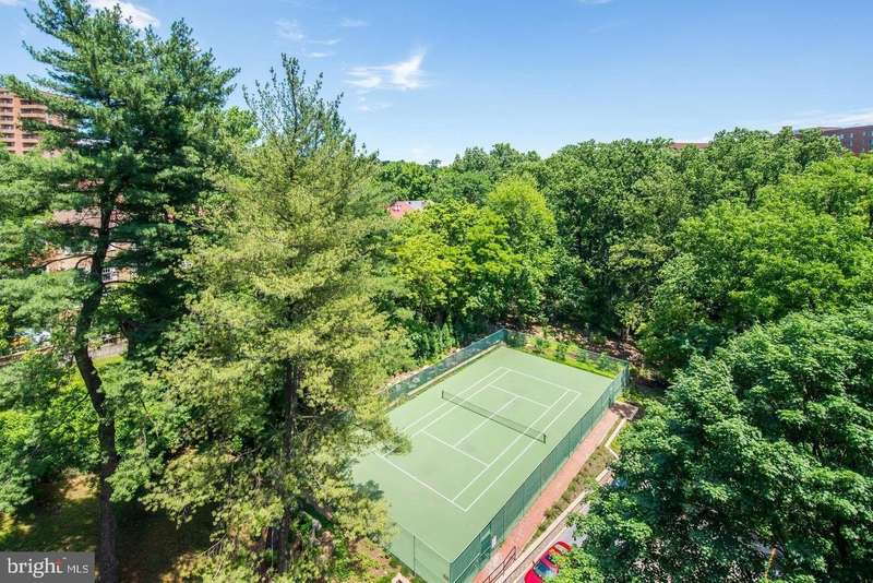 Welcome to the Towers Condominium located in the beautiful Wesley Heights community. Your new home is a bright, spacious 1-bedroom, 1-bath condo in a full service building with BALCONY and the BEST INDOOR PARKING SPACE VERY CLOSE TO THE ELEVATOR (509)!! This 11th-floor unit is west facing offering open views to the swimming pool and gardens, abundant natural light and beautiful sunsets ! It features a generous & open living and dining spaces, parquet floors underneath carpets, a well renovated kitchen with granite countertops, and ample maple cabinetry, perfect for cooking and entertaining. The bedroom is spacious and includes a large wall closet. The condo fee includes all utilities except for cable/ internet. Common laundry is available on each floor. Enjoy the building's top-tier amenities, including 24/7 front desk and doorman service, a beautiful outdoor swimming pool, Gym, Tennis courts, an on-site grocery store, beauty shop, Dry cleaners and library. Conveniently located near restaurants, shops, with public bus service right outside the front door. This home provides both comfort and convenience in a prime location: Two blocks to Wagshals, Chef Geoff's and Starbucks.