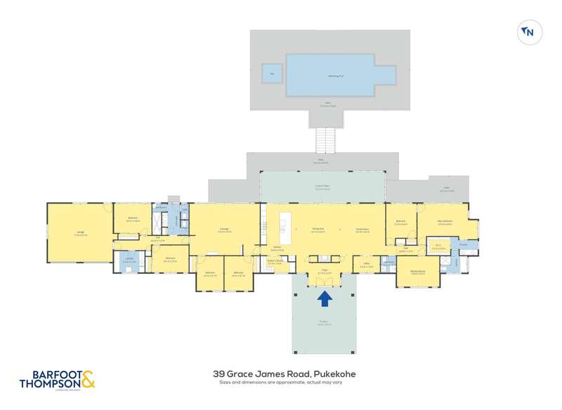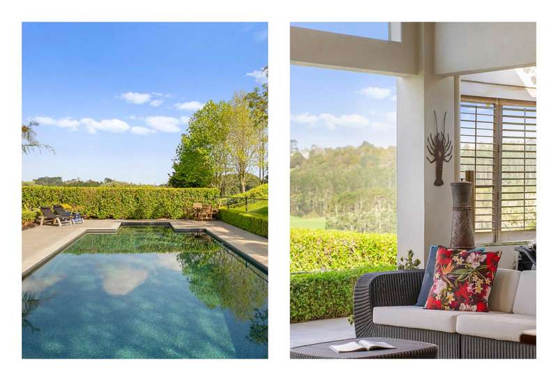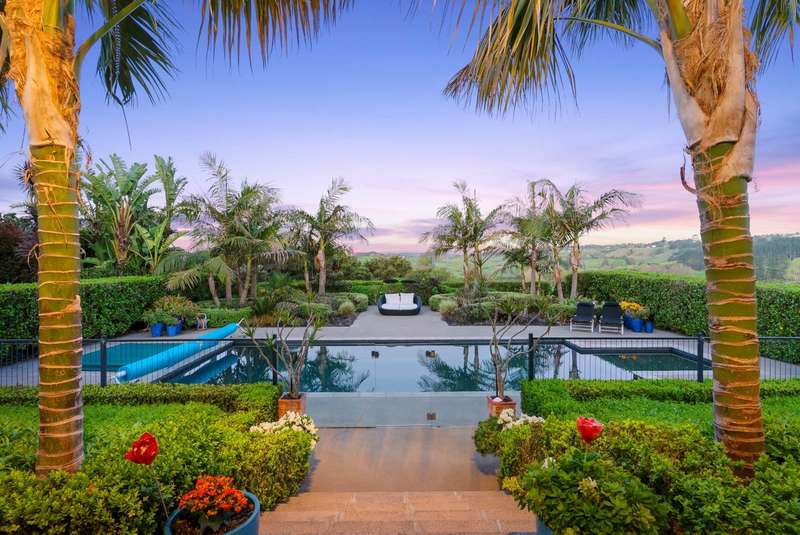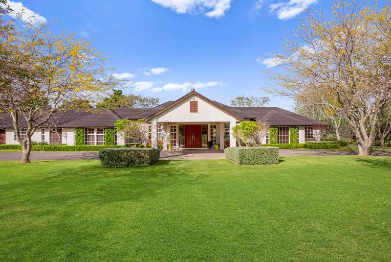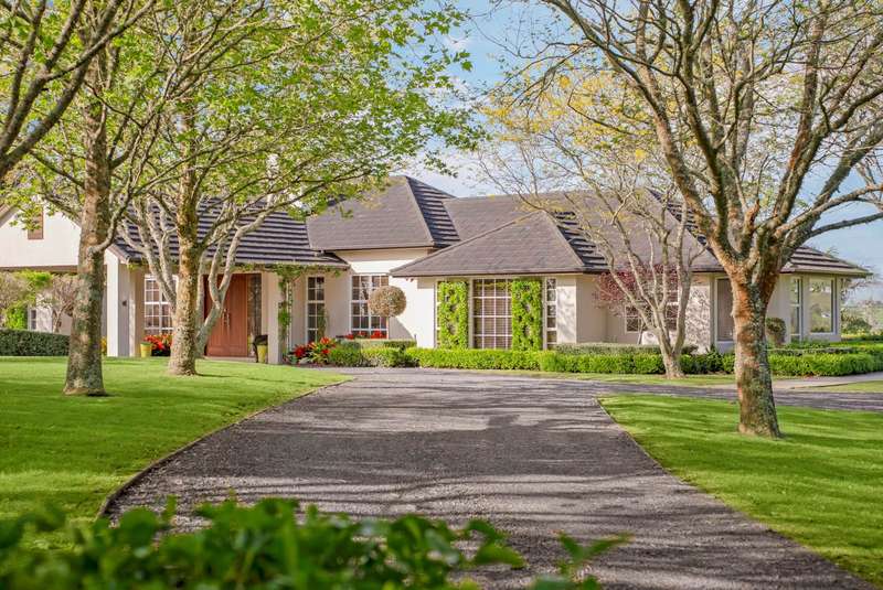 SPECTACULAR GARDENS - EXCEPTIONAL DESIGN - POOL Surrounded by other high calibre properties and zoned Future Urban, this elevated single level 385 square metre (approx) residence resides on gently contoured 2.06 hectares (5.16 acres) and boasts a north easterly aspect with serene views across rolling countryside. Quality built by highly regarded Van Der Putten Construction in 2007 using solid brick with painted plaster and metal tile roof this home has ducted air conditioning, plus a DVS ventilation system and underfloor heating in the some living areas. Exceptional architectural appeal highlights large vehicle portico parking with impressive timber sarked ceiling, complementing feature double door entry and a soaring cathedral ceiling through the foyer and expansive open plan living area. A beautiful tree-lined sealed driveway leads through spectacular landscaped gardens with styled hedging, tropical palms and lush swathes of lawn which wrap around this property as it steps down to the fully fenced chlorine pool with solar roller cover, in-ground spa and expansive garden-side leisure surrounds. There’s also a children’s playground here. The entry foyer opens on two sides into breathtaking family living with an abundance of windows and a pleasing light colour palette, gleaming timber floors and an open wood fireplace with stone surround. The kitchen is superb with generous cabinetry, stone benchtop, Meile and Bosch appliances, gas hob and breakfast bar. There’s also an impressive butler’s pantry with stainless steel benchtop. Wide sliding doors in the centrally placed dining area flow out to picturesque sarked cedar-roofed entertaining, with outdoor speakers and an open patio with vine covered pergola on one side and a covered area with a skylight on the other. In the eastern wing an office sits alongside a bathroom, there’s a bedroom - one of six – which opens to the patio and the opulent master suite with large walk-in robe, tiled bathroom with bath, shower and dual basin vanity and access to the patio overlooking the magnificent gardens and pool. There’s also a sumptuous media room with overhead projector and screen offering hours of entertainment. The western wing houses another large lounge room, four bedrooms – one opening outdoors – a laundry with storage and a spacious bathroom with large shower, dual vanity and two toilets. This bathroom is cleverly accessible from outdoors. There’s also entry off hallways end here into the double lock-up garage. Outside, forming part of these magnificent gardens, an orchard offers lemons, grapefruit, pears and apples. There’s a garden shed, three fenced paddocks and another shed perfect for ample storage of tools, equipment, and toys. Excellent positioned in convenient proximity to schools, shops and town conveniences, this property will perfectly suit the purchaser for whom second best is just not an option. NOTE - PART OF THIS PROPERTY IS DESIGNATED FOR THE PROPOSED PUKEKOHE NORTH EAST ARTERIAL ROAD. MORE DETAILED INFORMATION IS AVAILABLE. • 385m2 (approx) high set single level home on elevated 2.06 ha. • Future Urban zone. Scenic north/east gentle contour • Entry through beautiful sealed tree-lined driveway • Spectacular lush gardens. Styled hedges, tropical palms • Portico + timber clad ceiling. Timber double door entry • Ducted air conditioning + some underfloor heating • DVS ventilation system. Exceptional architectural appeal • Cathedral ceiling entry & living area. Gleaming timber floors • Superb open plan family living. Open fire + stone surround • Dining & lounge spilling outdoors to exemplary recreation • Modern kitchen/breakfast bar, quality appliances, butler’s pantry • Wide sliding doors to sarked cedar-roofed entertaining • Delightful open patio with vine covered pergola to one side • + Spacious covered patio with skylight & outdoor speakers • East wing: Office, bathroom, 1 bedroom open to the patio • + Opulent master suite/walk-in robe ensuite + patio access • Media room with overhead projector & screen & speakers • Western wing: Another large lounge room, four bedrooms • Laundry. Bathroom with two toilets & access from outdoors • Double lock up garage entry. Marine carpet. Outside parking • Outdoors: Fenced chlorine water pool + solar roller cover • Expansive pool-side/garden-side leisure surrounds • Children’s playground. 3 fenced paddocks. Garden shed • Separate shed ideal storage for tools, equipment & toys • Orchard providing lemons, grapefruit, pears & apples. Town water • In zone for Valley School & Pukekohe Intermediate & High School • 3.5km to Pukekohe Township and community amenities • 12.2km to Drury motorway on ramp. 7.2km to Bombay motorway on ramp