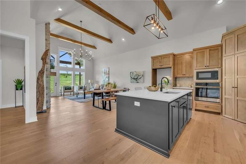 The Mira by SAB Homes coming soon on Heritage Ranch Lot 78. This reverse 1.5 story plan has two bedrooms on the main floor. The owner suite is located at the rear of the home that over looks the backyard. The primary bathroom has separate vanity spaces, a free standing tub and a shower and his and hers closets. The secondary bedroom on the main could double as on office. A full bathroom off the second bedroom/office. Main level laundry. The lower level features a rec room with a full bar. The third bedroom located downstairs with a full bathroom in the basement off of the rec room. There is an additional space for a potential fourth bedroom with full egress. All in the coveted Heritage Ranch, A Lambie-Rieke Community, with Amenities Galore such as state-of-the-art pool, clubhouse, trails, pickleball. play area, half-court basketball, ponds and so much more coming soon! This community provides a wonderful lifestyle and right next to the 1,238 Acre Heritage Park with Dog Park, Sports Parks, Golf, Lake, Trails and so much more! Contact Onsite Agents for Estimated Completion of homes on site, and design selections. Sales office OPEN 7 days/week. Sq Ft & Taxes are estimated. Home is under construction. Estimated Completion NOV 2025. LOT 78. Welcome Home to Heritage Ranch - one of the last NEW Home Communities in Johnson County!