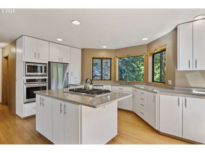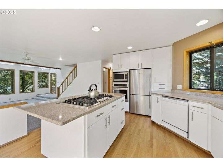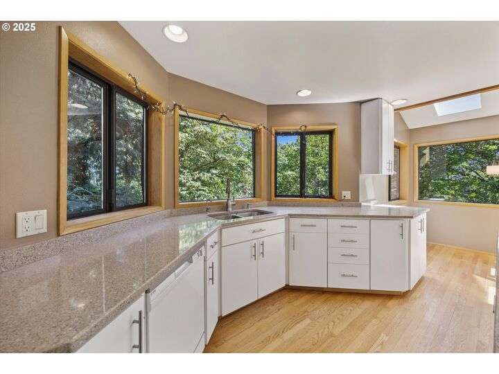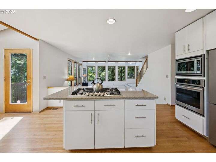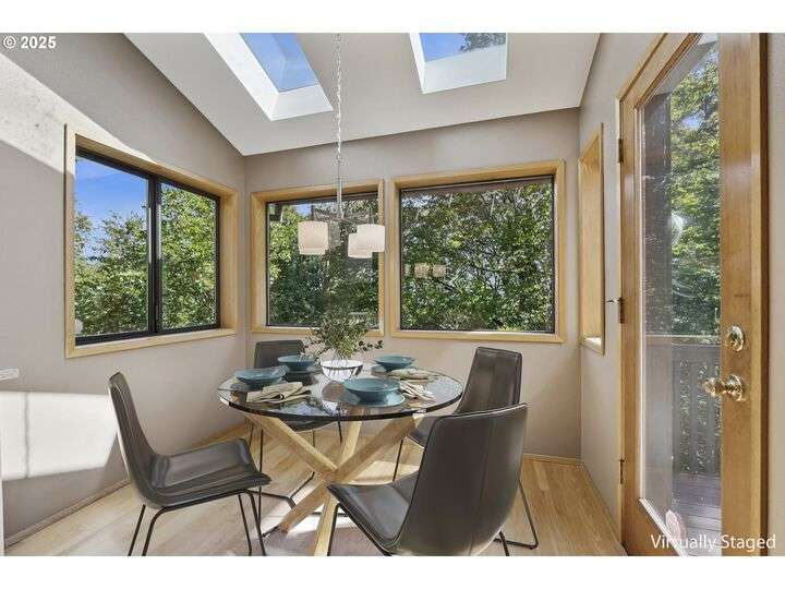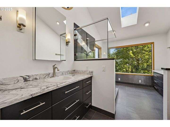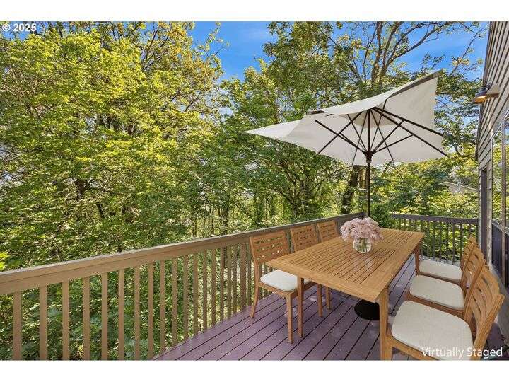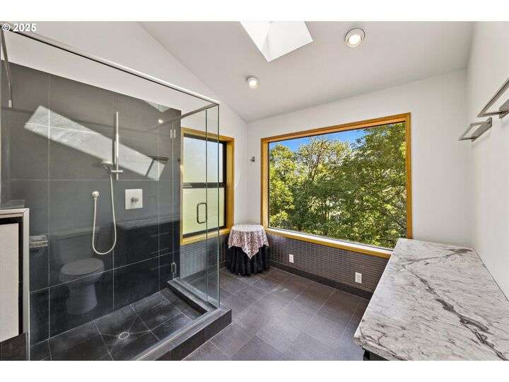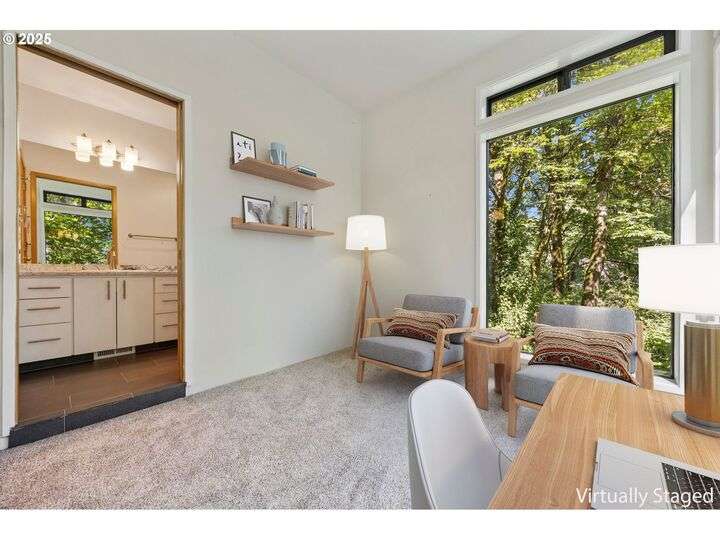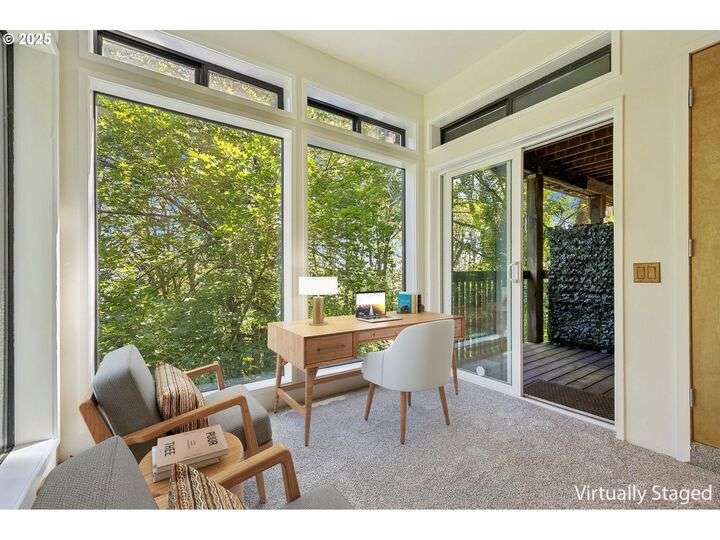 Nestled on the edge of Portland’s iconic Forest Park, this 3,209-square-foot contemporary home offers the perfect blend of nature and modern living. Designed with clean lines and a minimalist aesthetic, the home invites natural light into every corner through expansive windows that frame the surrounding treetops and fill the space with a calming glow.With 3 spacious bedrooms and 2.5 bathrooms, the home comfortably accommodates both daily living and entertaining. A dedicated private office area provides a serene and productive workspace—ideal for remote professionals or creatives. Beyond the essentials, the house offers multiple flex spaces that adapt to your lifestyle—whether you're seeking a personal art studio, a tranquil meditation room, a home gym, or a cozy nursery.The open-concept living and dining areas flow seamlessly into a sleek kitchen, all oriented to take full advantage of the wooded views just outside. Step out onto the private deck and you’re immediately immersed in a canopy of trees—perfect for morning coffee, al fresco dining, or quiet reflection.Thoughtfully designed and surrounded by nature, this contemporary retreat offers both convenience and seclusion, just minutes from Forest Park’s miles of trails and the amenities of Northwest Portland. As an added bonus, a full house generator will ensure that you keep things moving along regardless of the weather. It’s more than a house—it’s a lifestyle in harmony with the forest. [Home Energy Score = 1. HES Report at https://rpt.greenbuildingregistry.com/hes/OR10239712]