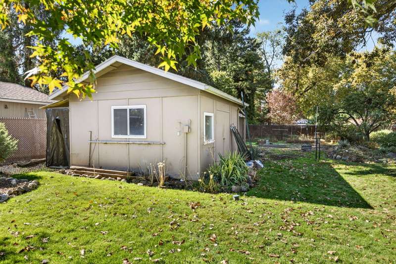 Open House: Sat 10/25 11am-1 & Sun 10/26 1-3. Welcome to this charming single-level home located in the sought-after Pioneer subdivision-perfectly situated between Medford & Jacksonville. Enjoy the best of both worlds: close proximity to town w/the serenity of a peaceful, rural setting. This classic 1958 gem offers 1,890 sqft of living space w/3 beds, 2 baths, lg bonus rm & workshop area for projects. Set on a beautifully landscaped 0.39-acre, you'll find garden beds, ponds & a lush, mature park-like atmosphere. The covered patio is the perfect place to enjoy your morning coffee or evening gatherings. Recent updates- new carpet & luxury vinyl plank floors, water heater, stainless appl's & many windows replaced w/double-pane vinyl. Ample room for your RV & toys w/space to build a shop in the back. This home offers the perfect blend of comfort, space & opportunity. Some updates have already been completed—now you can seize the opportunity to add the finishing touches & make it your own!