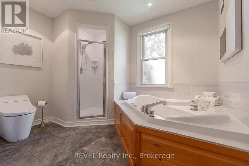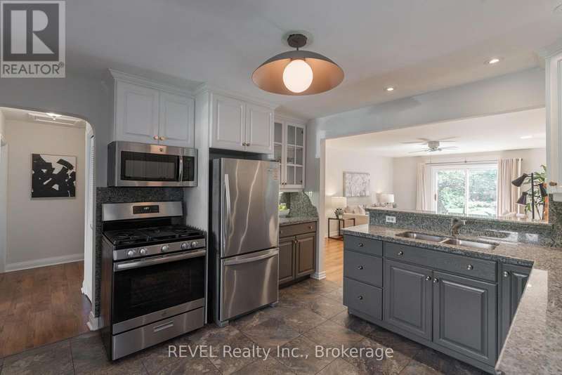 This is your opportunity to get into Old Town Niagara on the Lake! Amazing bungalow with warm flooring throughout the main floor, large room sizes, and a massive lot with cultured gardens for you to enjoy! Two bedrooms on the main floor nicely separated for privacy with the main bath across from the primary bedroom. Separate step in shower and jacuzzi tub. So much natural light! This home is incredibly warm and inviting. Lovely updated kitchen with new built in dishwasher and professionally refinished cabinetry (2023.) The living room is large with an amazing brick hearth and natural gas fireplace as well as large sliding glass doors to the new composite deck (2025.) Side entry recently updated with composite deck as well (2025.) Furnace and AC replaced in 2022. The lower level has tons of space for you and/or the kids as a family room and the added lower level with basement walkout is massive and has so much potential to be an exercise room, family room, games room, or even a small business area! This home has previously been licensed by the town as an Air BNB and other small businesses, so you know that is it an option if that is what you are looking for. There could be fantastic potential to live upstairs and use the 2nd lower level for your home based business (due diligence to be done by purchaser to ensure the zoning permits desired usage.) The grounds have been professionally groomed and cultured and they are very private. The garage is quite large with plenty of space for a workshop and storage. This bungalow is super cute and only a few blocks from the entertainment area, restaurants, golf, Shaw Theatres, and so much more. You most definitely will not be disappointed. (id:7434)