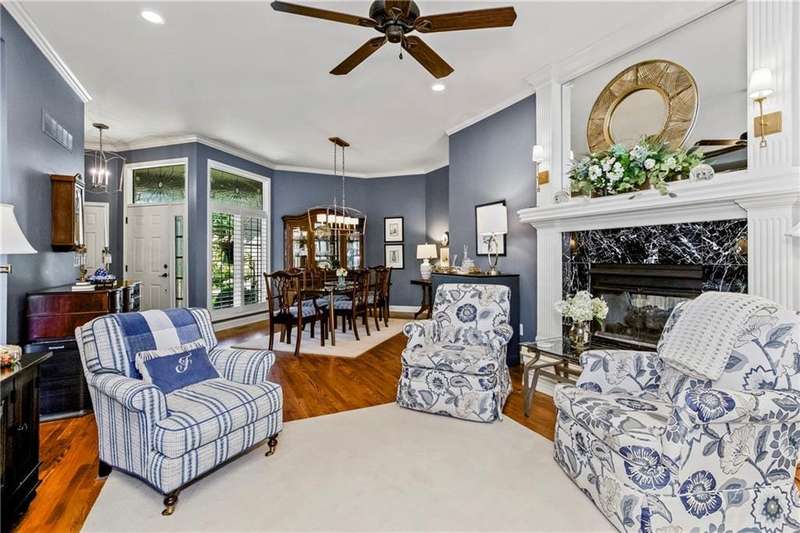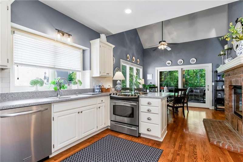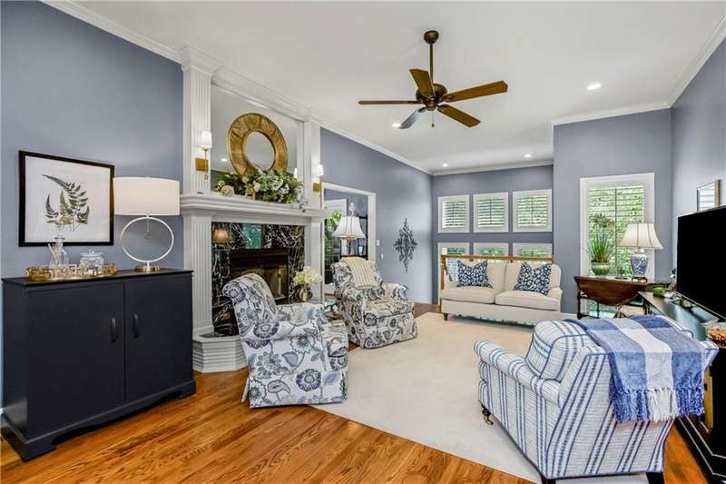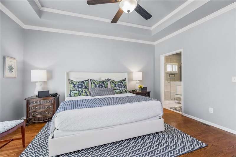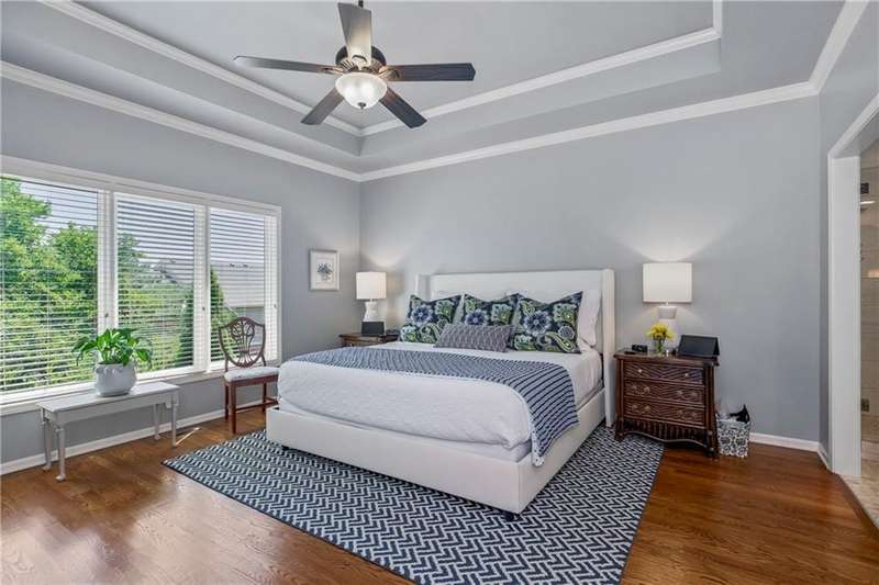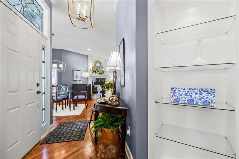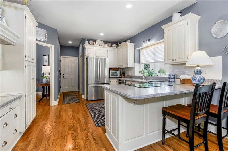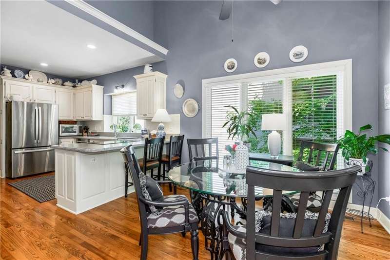 Stunning Villa in Bedford Court of Nottingham that will knock your socks off. Professional landscaping welcomes you to this immaculate home.The interior has so many upgrades and is truly a jewel. Leaded glass in Entry and Dining area.Hardwood floors throughout the main level. Spacious Dining and Living areas with ample seating & ventless fireplace.New Plantation Shutters are abundant on Main Level. Primary bedroom is sleek and light, gorgeous bath featuresmarble tile floor, marble countertop and large shower. 2nd bedroom and bath have recently been updated and SOCHIC. Kitchen/Hearth Room has lots of built-ins as well as granite countertops and stainless steel appliances, bountifulnatural light. Now for the WOW. Step out onto the gorgeous Screened deck with vaulted ceiling & 2 skylights. Quite generous in size. A private retreat with the lush landscaping that provides privacy. Rebuilt stairs with wood treads lead you to a spaciousfamily room, wet bar, bedroom & bath. Newer slider that goes to the patio. Unfinished area is brimming with shelving,built-in cabinets + 2 movable counter height work tables. Additional unfinished area for exercise, work bench, officeor more storage. The garage features are: Epoxy Floor, elevated storage & Tesla charger. Private street on Cul-de-sac.Note all that HOA covers plus Features/Upgrade Sheet-See Documents. Pool and Clubhouse for your enjoyment and close to a park. Easy access to highways and shopping.