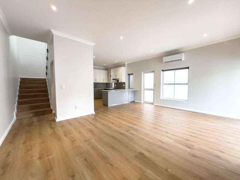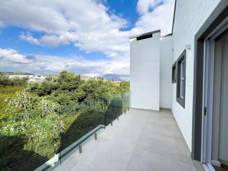 Step into style and comfort with this beautifully designed double-story home, nestled in a sought-after estate. The ground floor features a spacious open-plan lounge and dining area with excellent natural light, a sleek modern kitchen, guest bathroom, and direct-access double garage. Large sliding doors open onto a landscaped garden with a built-in braai?Çöperfect for outdoor living and entertaining. Upstairs, the luxurious main bedroom offers a private patio with breathtaking views of the Stellenbosch mountains, and a stunning en-suite bathroom with a large soaking tub and walk-in shower. Two additional well-sized bedrooms and a full bathroom complete the upper level. This home blends modern elegance with functional family living?Çödon?ÇÖt miss your chance to own a slice of paradise!