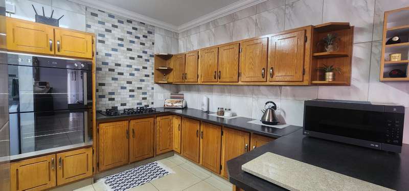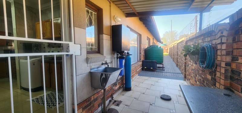 Lock up and go! Secure and convenient, perfect knowing that if you go, your home is safe and secure. Low maintenance home, consisting of 4 bedrooms, 2 full bathrooms and 3 living areas. Gas and electric stove in kitchen Spacious and super light and bright home. Two garages, 3 carports and a braai area. Extra room for Jacuzzi or storage. Water filters. Move into this ready, perfect home now. Call me and don't miss out Jojo tank