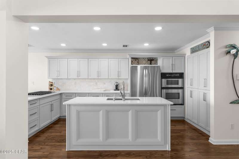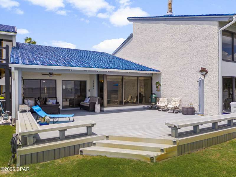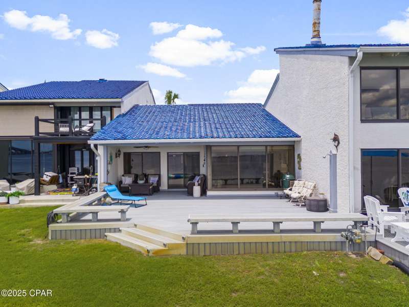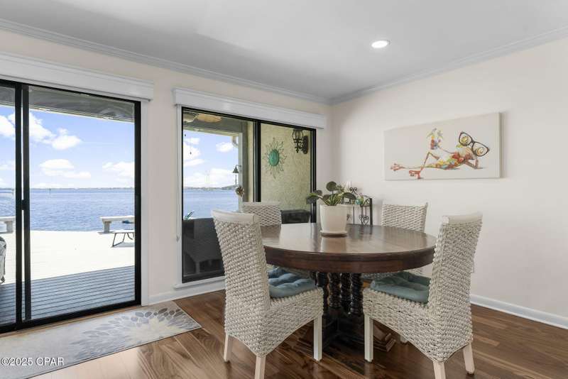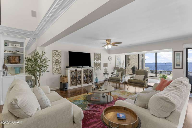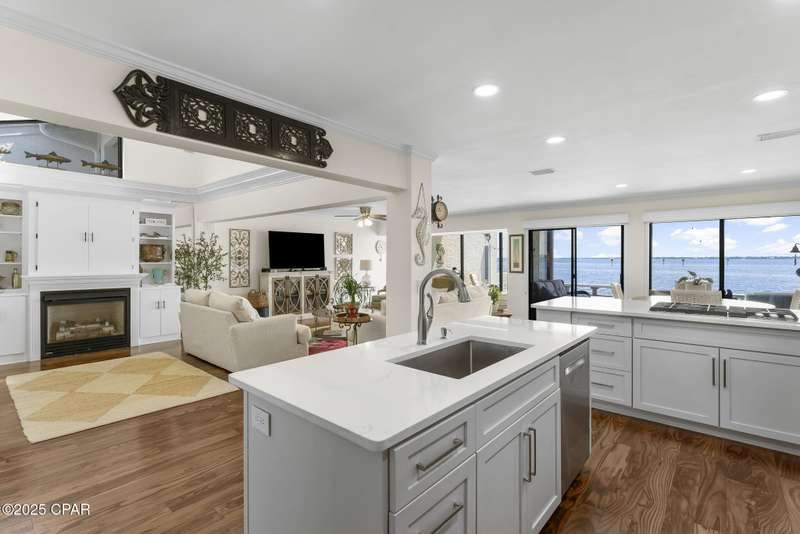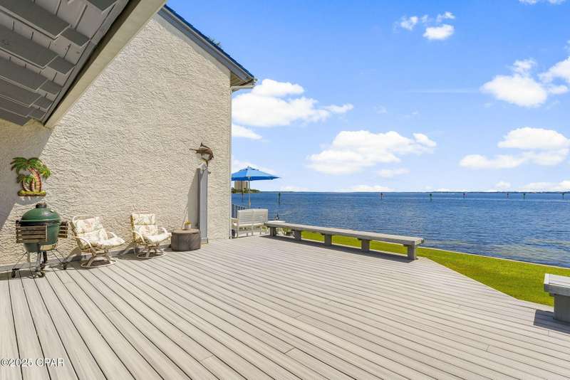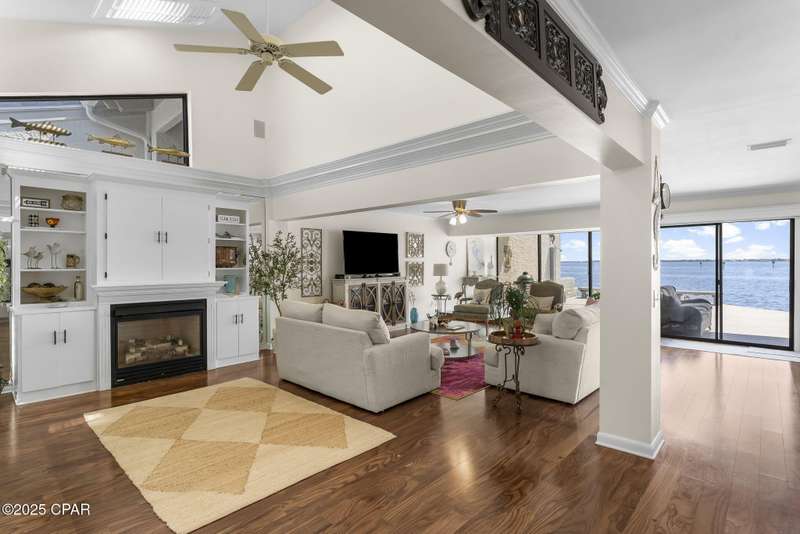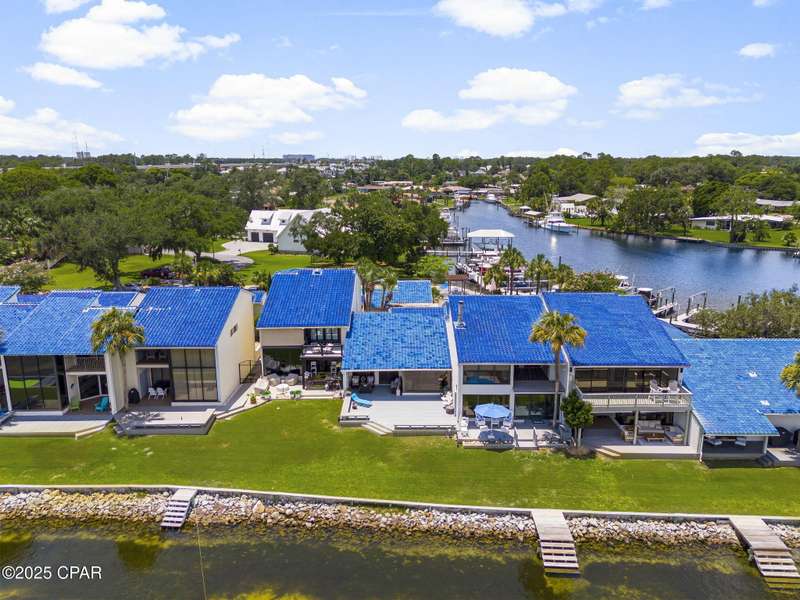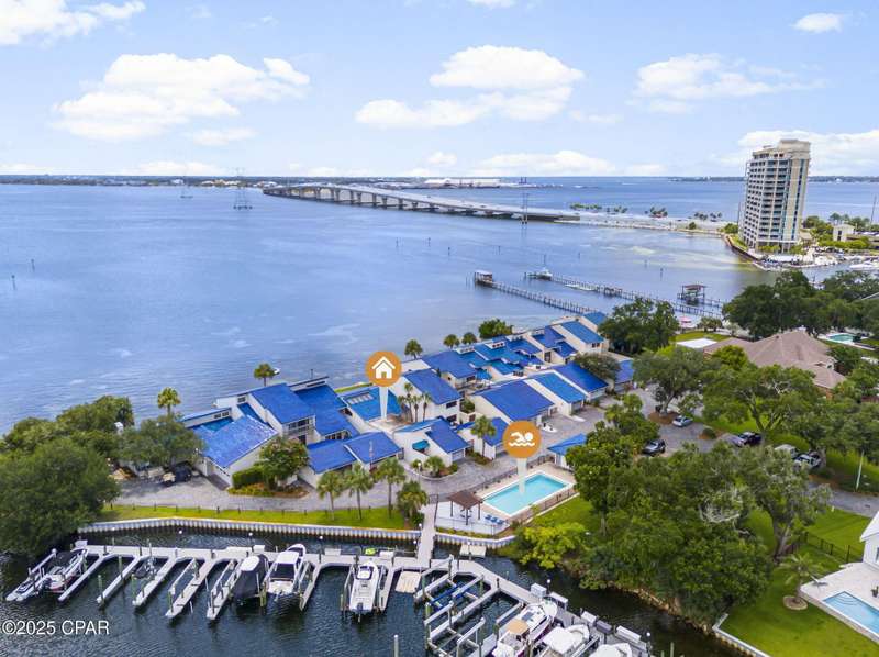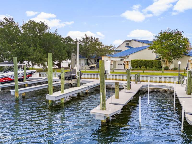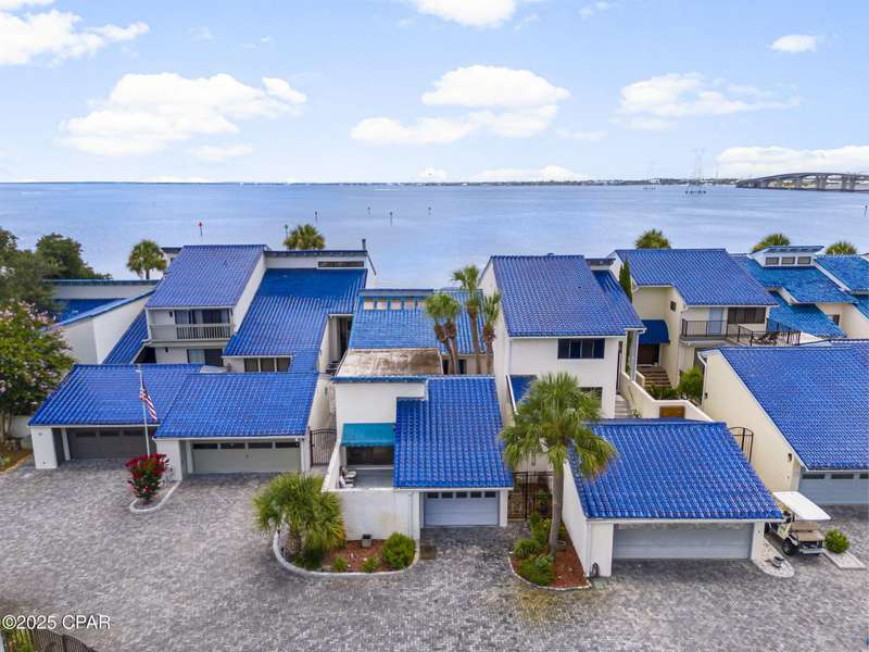 $20K Price Reduction!!! Waterfront living with luxury upgrades and unbeatable access to the Gulf! Welcome to 425 Bay Shore Drive Unit 12, where breathtaking sunrise and sunset views over St. Andrews Bay set the tone for your day--and a dedicated deep-water boat slip with a 12,000 lb lift makes getting on the water effortless.This updated 2-bedroom, 2-bath townhome features a thoughtfully designed open floor plan with engineered hardwood flooring, marble flooring, and granite in the bathrooms. The chef's kitchen is equipped with quartz countertops, a gas cooktop, double ovens, stainless steel appliances, and plenty of cabinetry. A spacious dining and living area with a gas fireplace opens to a large patio with breath-taking views of the bay--ideal for watching dolphins play or just relaxing at sunset.The master bedroom offers a well appointed ensuite with a custom glassed shower, marble flooring, and granite double vanity countertop. The guest bedroom opens to a private courtyard--perfect for morning coffee or quiet reflection. Solar shades throughout enhance energy efficiency and comfort.This intimate 12-unit community features a community pool, attached garages, and dedicated boat slips. The HOA covers water and sewer, keeping monthly costs predictable. Located just minutes from historic St. Andrews, downtown Panama City, the Navy base (NSA), Tyndall Air Force Base, and Panama City Beach, the location offers the perfect blend of peace and proximity.Whether you're looking for a low-maintenance waterfront residence, a seasonal escape, or a smart investment, this one-of-a-kind property delivers. Schedule your private showing today--this is coastal living at its finest. If measurements deemed important, please verify.