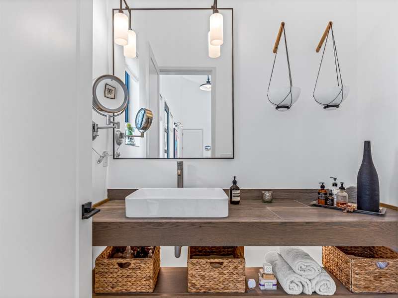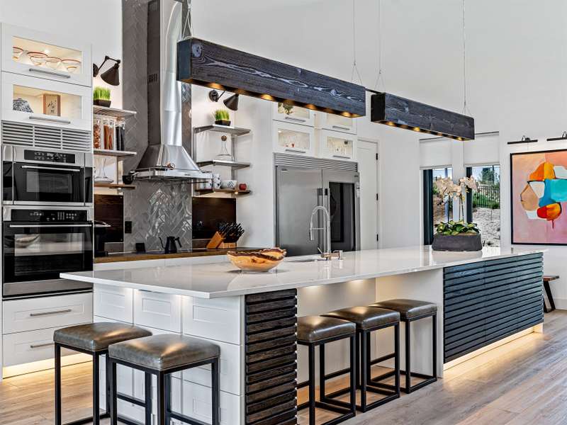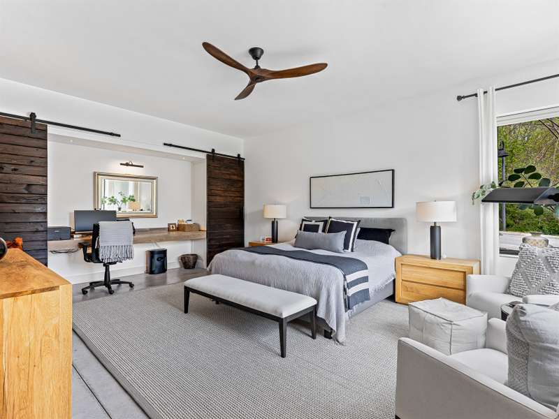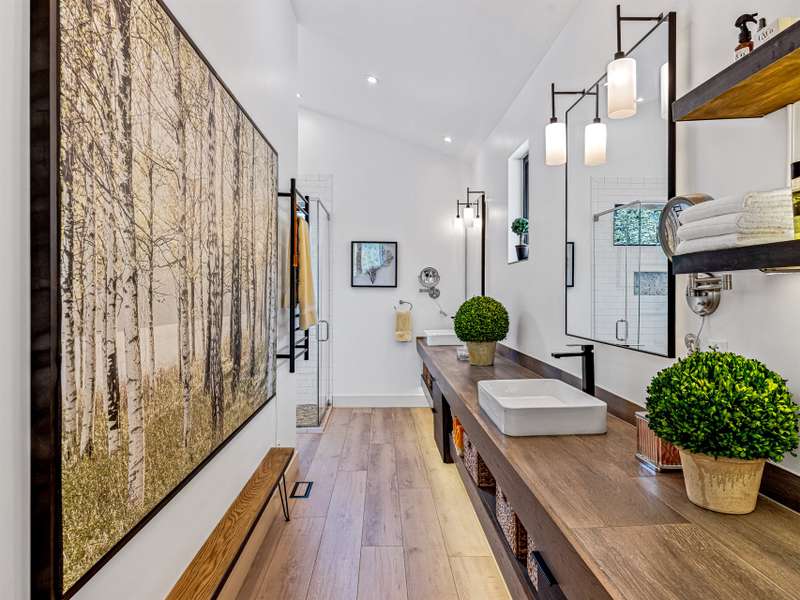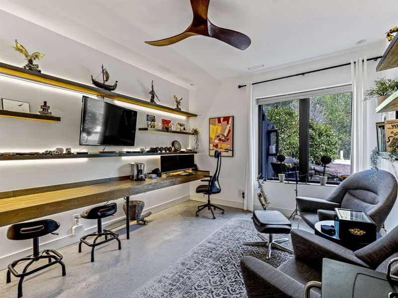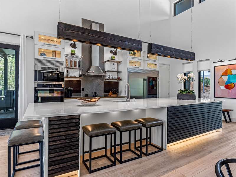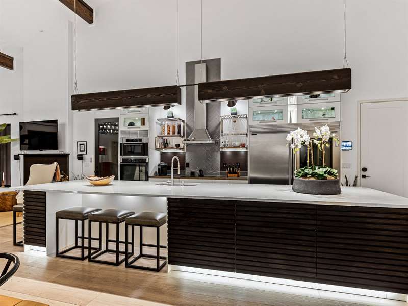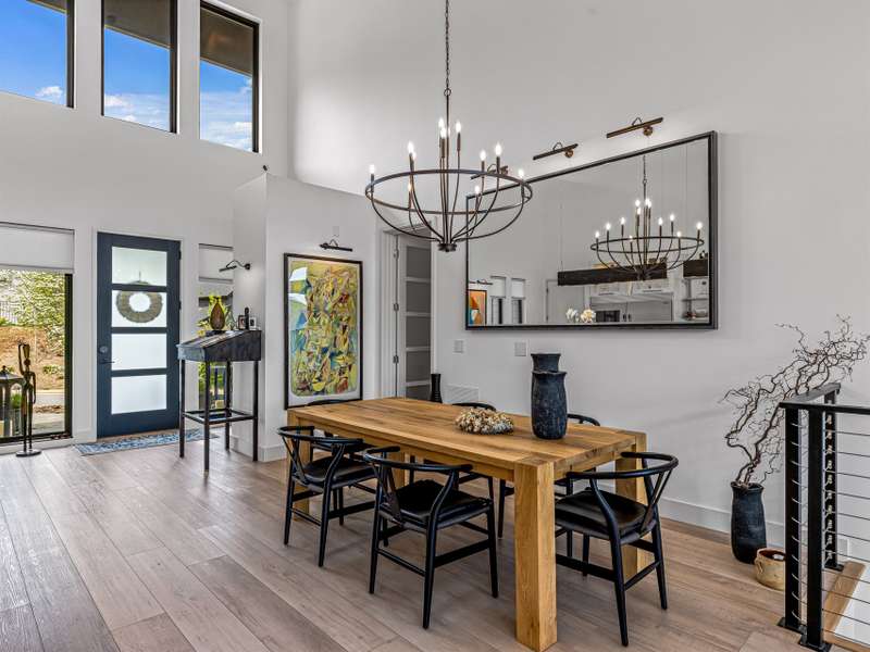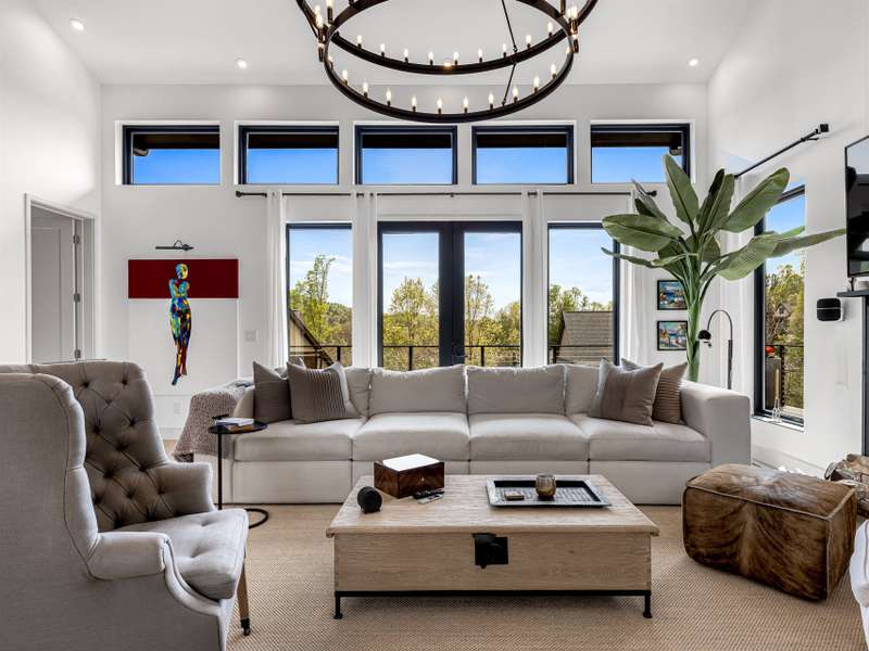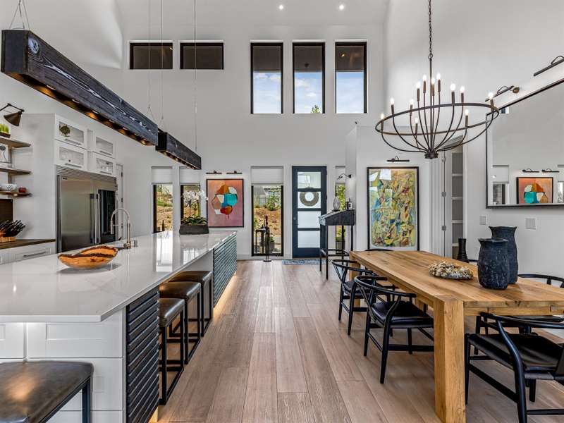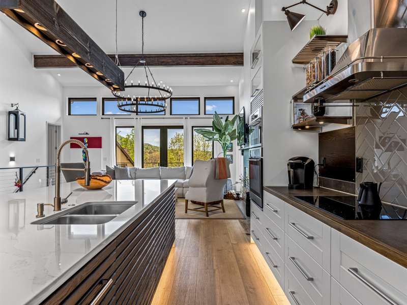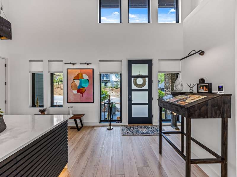 Spectacular, luxury living awaits where modern elegance combines seamlessly with the finest in lighting and technology in this custom mountain home located in gated Thoms Estate. Sleek metal surfaces, endless natural light, and earthy wood tones create a magical atmosphere curated by the movement of the sun. Relax in the living/great room with soaring ceilings or entertain on the covered and open decks surrounded by candle lanterns and raised fire boxes. Enjoy a spectacular Chef's kitchen with internally lit drawers, an LED lit Schott Ceran cooktop, and a column refrigerator and freezer. The main level primary suite entices with its privacy and delicious spa bath. The terrace level offers modern stained concrete floors, a wine gallery, fabulous home office/craft room, two guest bedrooms and a bright family room that opens to the terrace patio with concealed storage. Energy efficiency and sustainable living are maximized in this Red Tree Builders, Green Built Certified home. Come see!