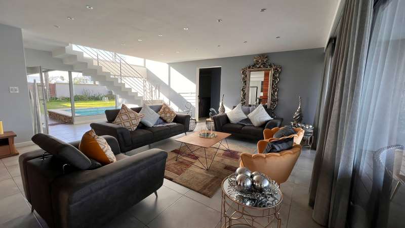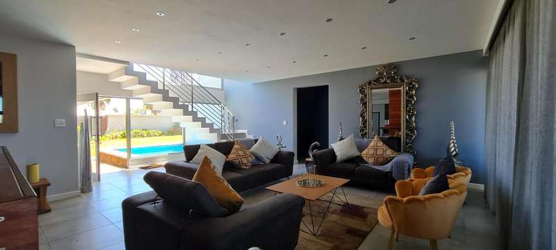 "WELCOME HOME!" says this stunning property the moment you step through the front gate. From the very first glance, it’s clear—this is no ordinary home. What a privilege it is to hold the mandate for such a warm, elegant, and luxurious residence! Fit for a king and queen, this exquisite Marina Martinique property offers everything your heart could desire: Ground Floor Expansive open-plan living areas—a generous lounge, dining space, and designer kitchen with ample cupboards, a built-in braai, and built-in gas heater for comfort and style. Stacker doors lead to a large entertainment deck with a sparkling swimming pool, perfect for family fun or sophisticated entertaining. A separate scullery/laundry/pantry adds practicality, and there's direct access to the double garage. A well-appointed guest bedroom with a full en-suite bathroom also opens onto the deck and pool area. A guest toilet and a pajama lounge/study complete the thoughtfully designed lower level. A charming kiddies’ splash pool is nestled in the front garden (or it could double as a tranquil fish pond!). First Floor Three spacious bedrooms, each with their own en-suite bathrooms. A cozy pajama lounge (or optional 5th bedroom) provides added comfort and flexibility. The master suite is a true retreat—featuring a luxurious en-suite bathroom, generous cupboards, and a walk-in linen room. Every room opens onto a balcony with breathtaking views—only the Marina Martinique can offer such beauty and serenity. Additional Features The property is fully walled, offering privacy and peace of mind. It is located on one of the wider canals, perfect for enjoying the Marina lifestyle. Why Marina Martinique? This exclusive estate boasts: 24-hour security Over 5.5 km of navigable seawater canals A lifestyle that seamlessly blends luxury and nature Whether you're sailing, kayaking, enjoying a quiet morning of fly fishing, or strolling along 8 kilometers of pristine beaches, life here feels like a permanent vacation. With a mild, sunny climate almost year-round and nearby restaurants for socializing over sunset cocktails, Marina Martinique is more than just a destination—it’s a way of life. Come walk with us through the Marina and discover what it means to truly live. Here, time slows down. Adventure awaits. And every day feels like a holiday.