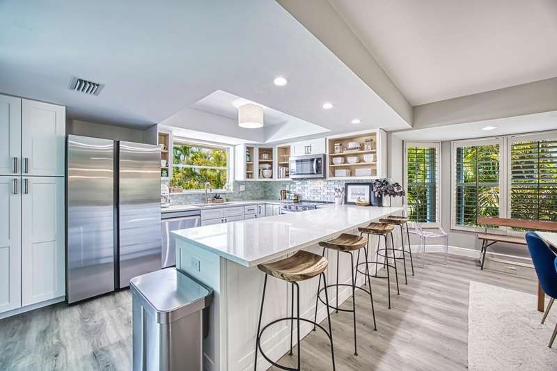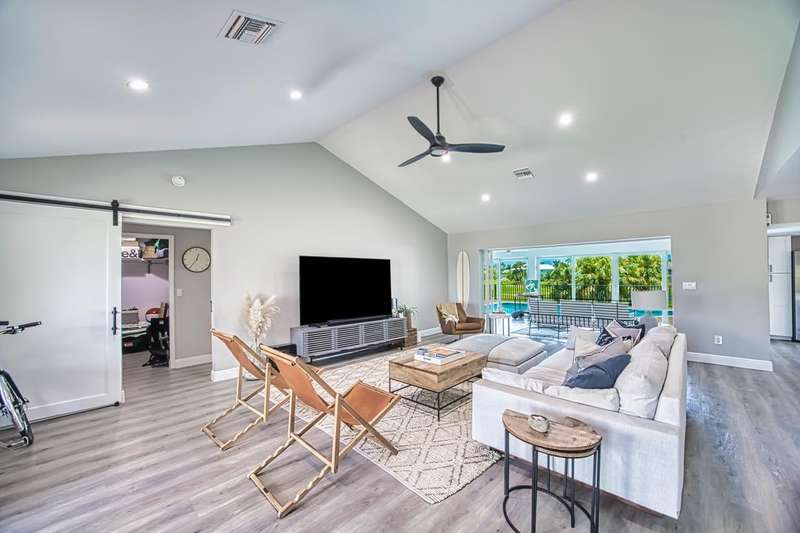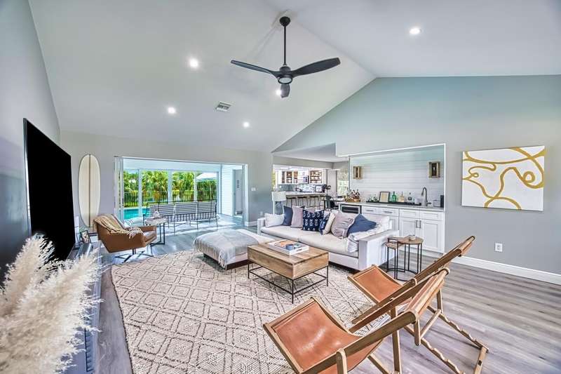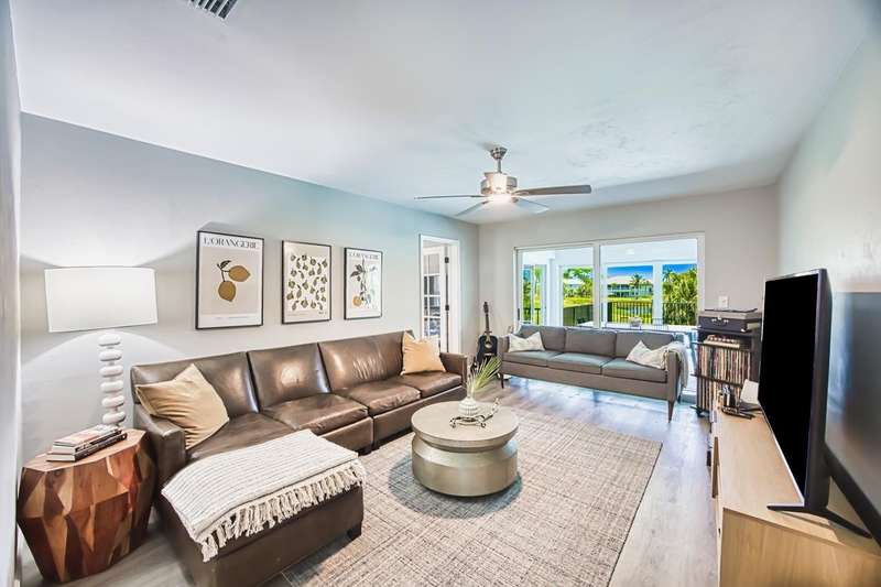 Bring your beach towel and start living the Paradise Dream!! Fully furnished and turnkey, this beautifully maintained island home offers peace of mind and effortless living with a host of recent updates, including a durable metal roof (re-screwed in 2024), hurricane-rated front door and porch windows (2021), rear sliders (2023), and new hurricane shutters installed on all sides (2021–2024). Gorgeous flooring runs throughout the home, which boasts an open floor plan ideal for entertaining. Large sliders create seamless indoor/outdoor living and showcase scenic views of the fairways. Enjoy all-day sun with desirable southern exposure. The pool area has been beautifully refreshed within the past 3 years, featuring updated decking, new coping, and a stylish outdoor shower added in 2023. The kitchen is equipped with modern appliances (2020–2025), and the home includes a new AC system (2021) and condenser (2023). Located on the east end of the island for quick access on and off Sanibel, and just moments from the beach. Optional membership to The Dunes Golf & Tennis Club includes access to an 18-hole championship course set in a protected Audubon wildlife preserve, six Har-Tru tennis courts, four pickleball courts, reduced greens and court fees, plus generous dining and retail discounts. Experience the best of the Sanibel lifestyle at The Dunes!