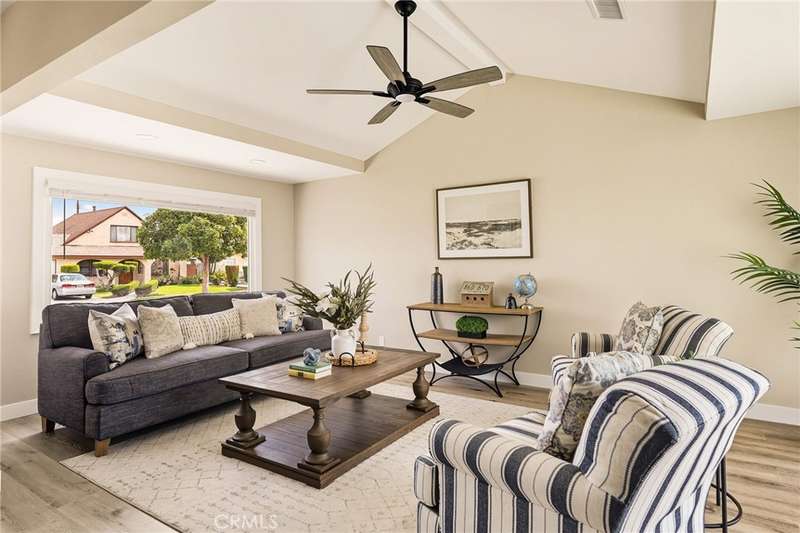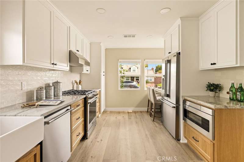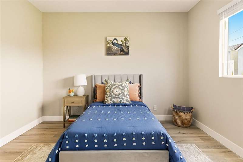 Stunning UPDATED 3 bed 2 bath home in a prime Torrance neighborhood. Downstairs you will find the kitchen, dining room, living room, 2 bedrooms and full bathroom. This home has been beautifully renovated and offers a spacious open floorplan. The kitchen features custom new cabinets, sleek counter tops, full tile backsplash, stylish fixtures, and new stainless-steel appliances. The downstairs bathroom has a new double sink vanity, fixtures, and custom tile work. Upstairs is the primary bedroom suite. There is a walk in closet with custom built-ins and an attached ensuite bathroom, with tile flooring and shower surround, new double sink vanity and fixtures, Other features include interior/exterior paint, luxury flooring in the living room, dining room, bedrooms, and kitchen, central HVAC, updated plumbing and light fixtures, newly landscaped front and backyard, dual pane vinyl windows, indoor laundry and new fencing. There is a two-car garage detached garage and long driveway offering additional off-street parking. Detached two car garage and spacious yard offers possible ADU potential. Buyer to verify all building codes and ADU guidelines with the city. The enclosed backyard has a cement patio are outside the living room and spacious lawn area with new sod perfect for fun and entertainment. Tax roll shows different bedroom count.